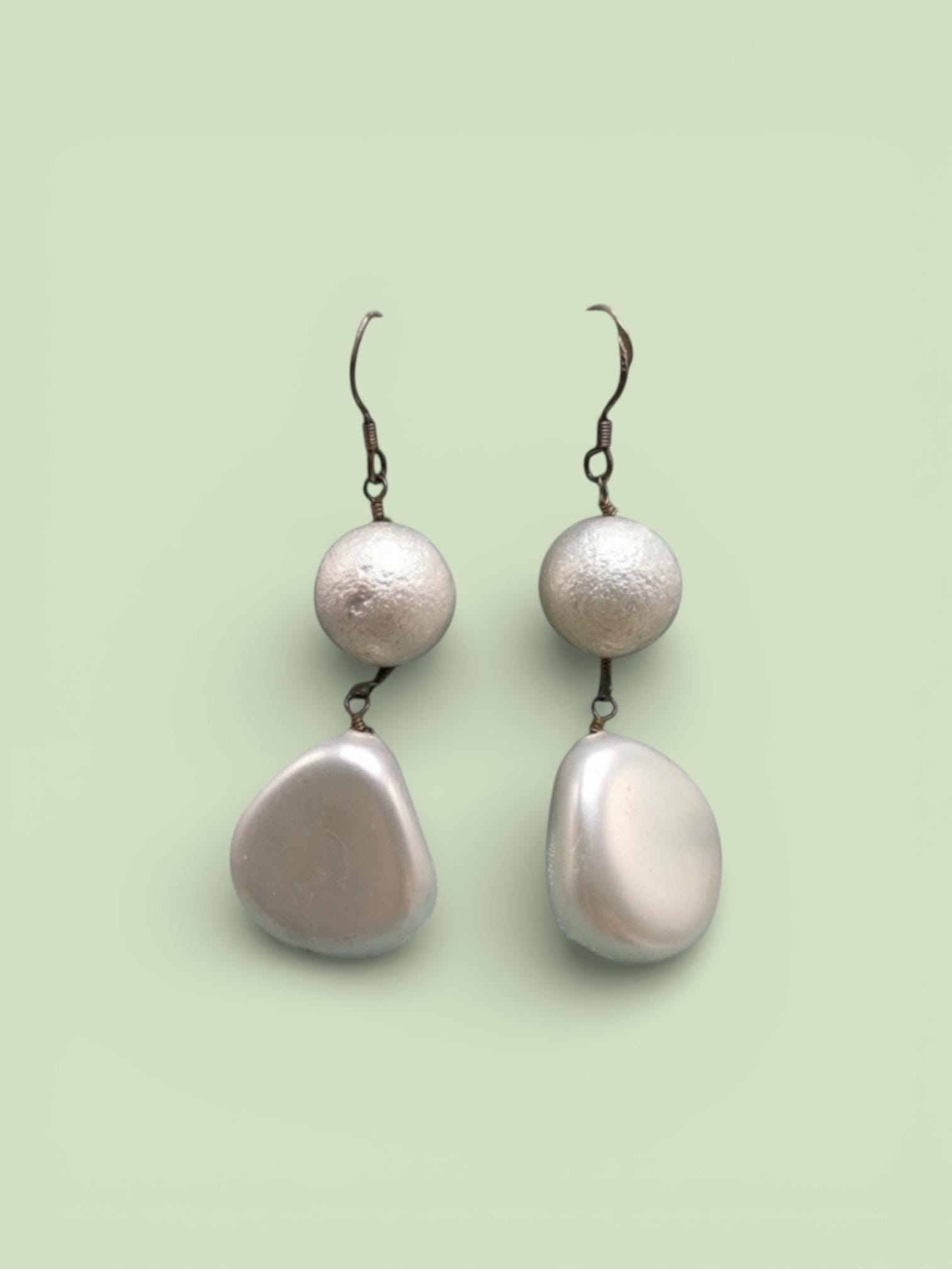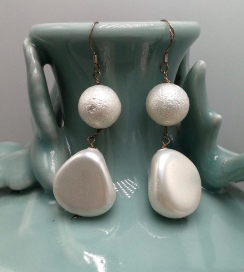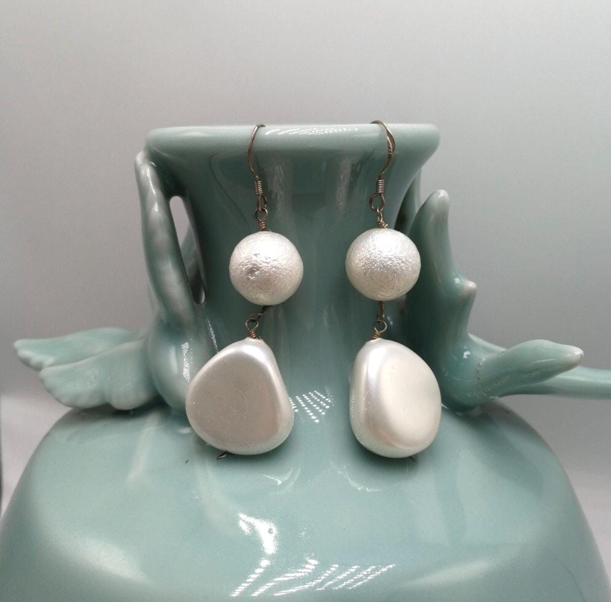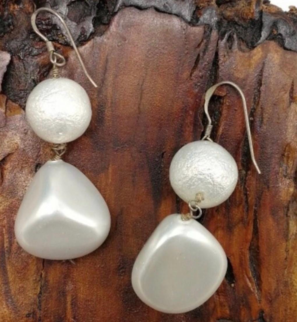 Big Chunky Baroque Pearl & 925 Silver Dangle Earrings