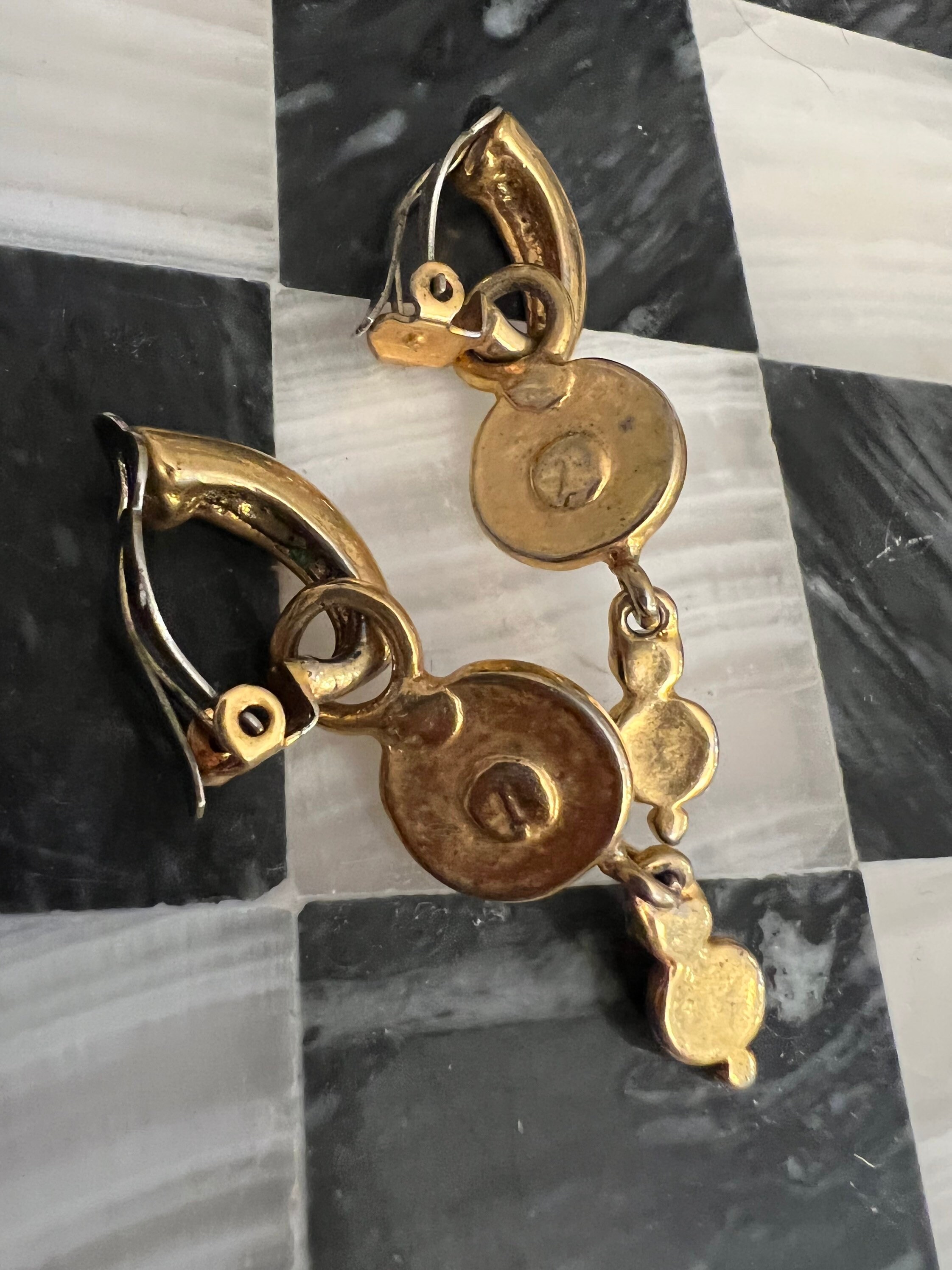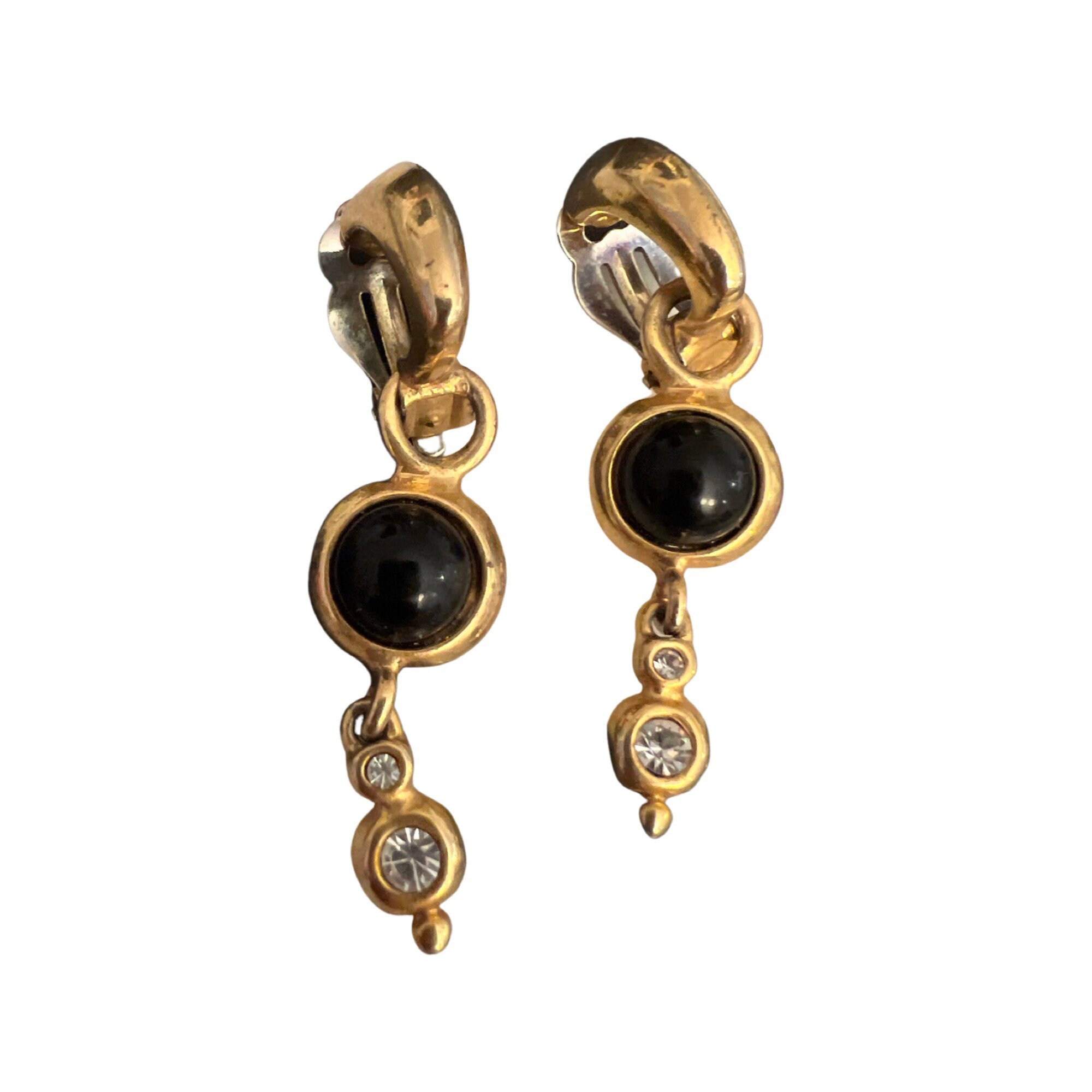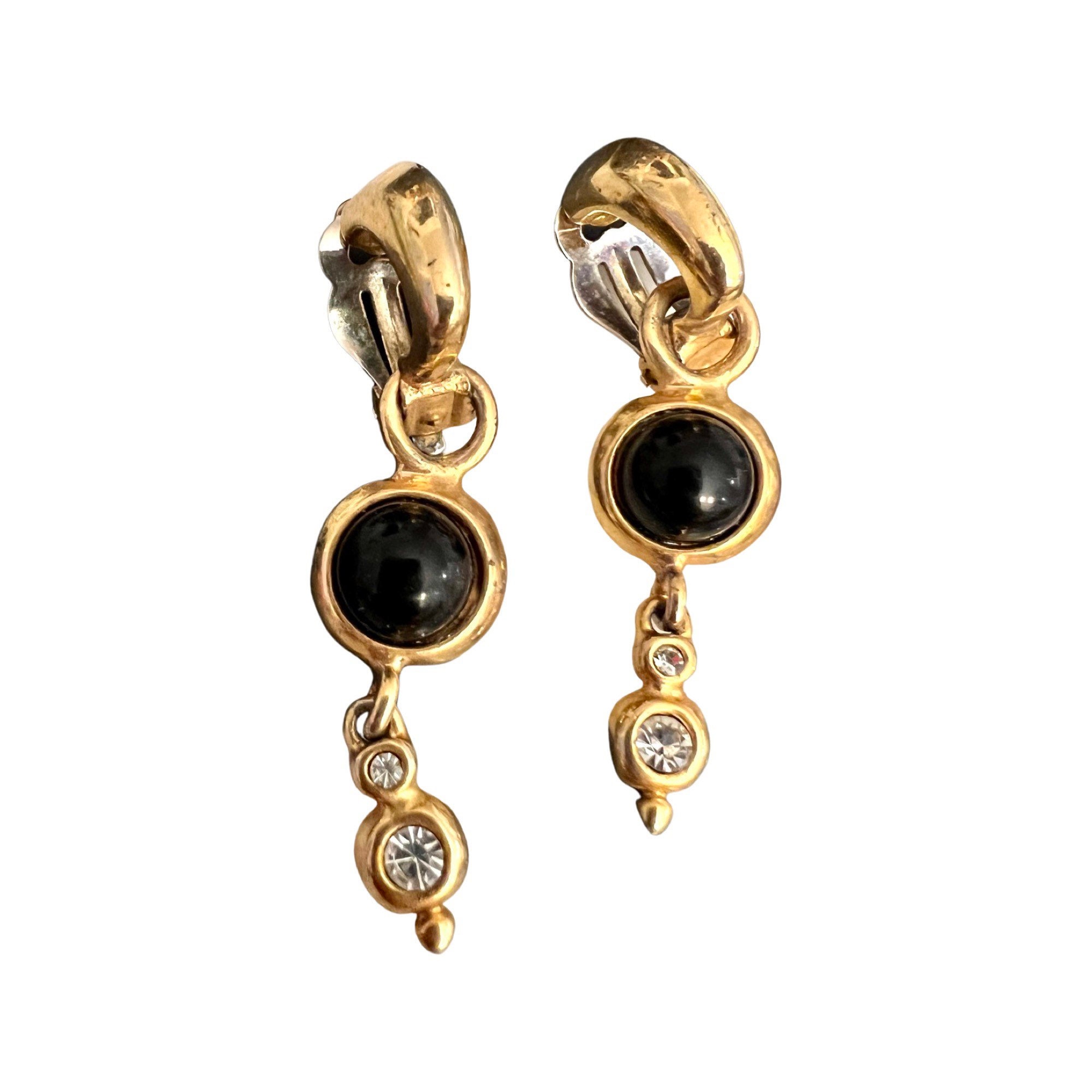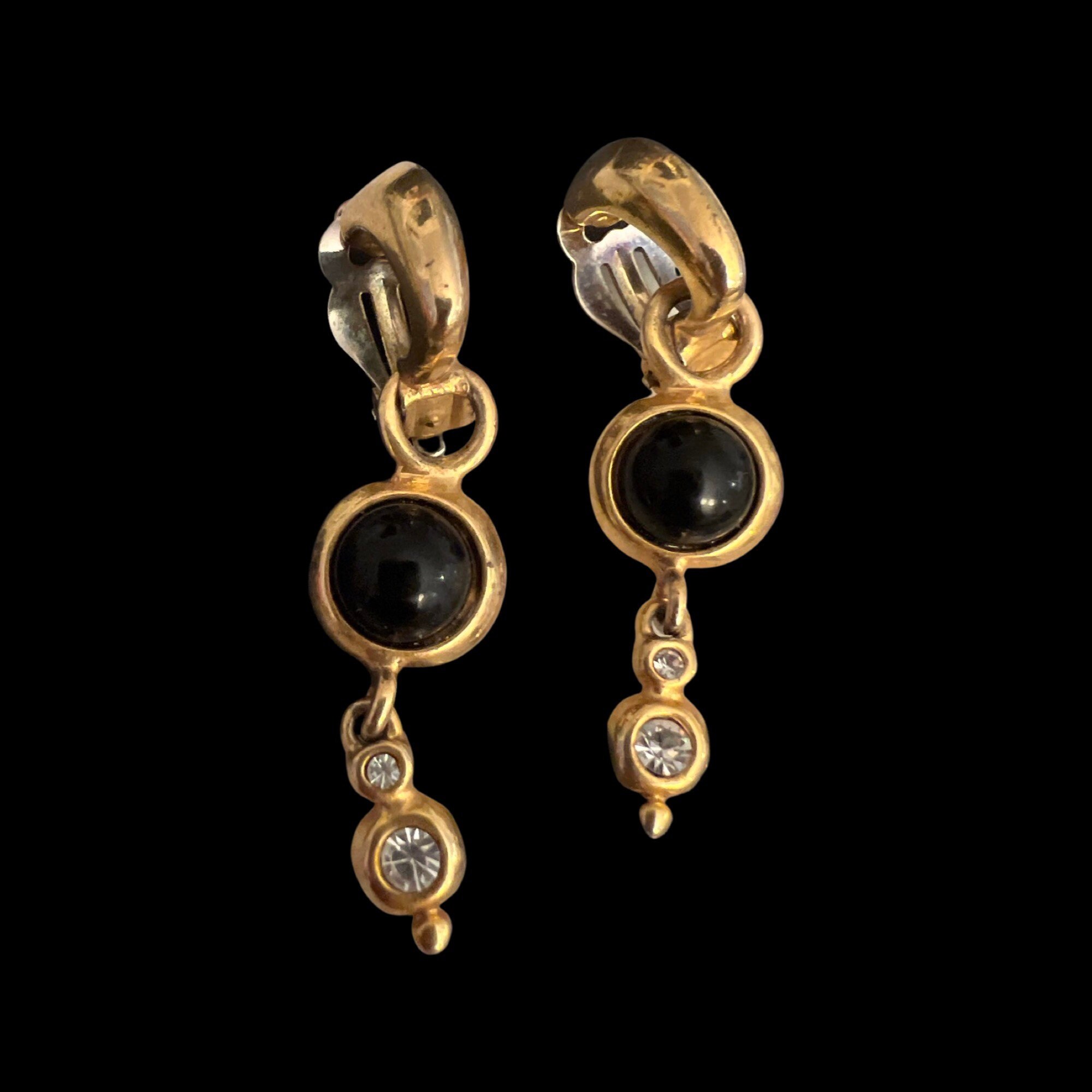 90s Glam black and gold dangles with crystal rhinestones, elegant statement earrings, perfect for the holidays