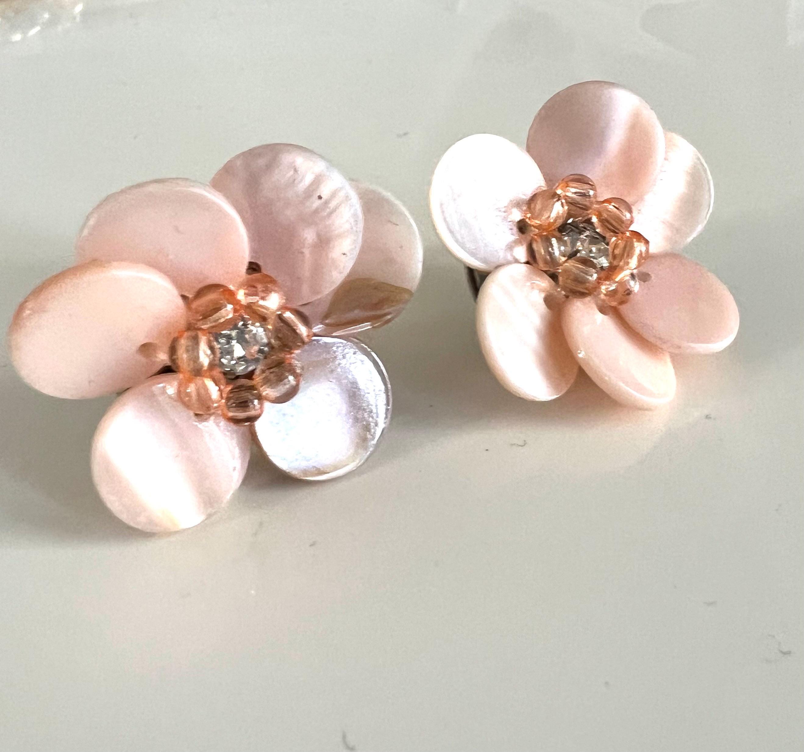 Stunning blush pink tone artisan Shell Flower Cherry Blossom Earrings!