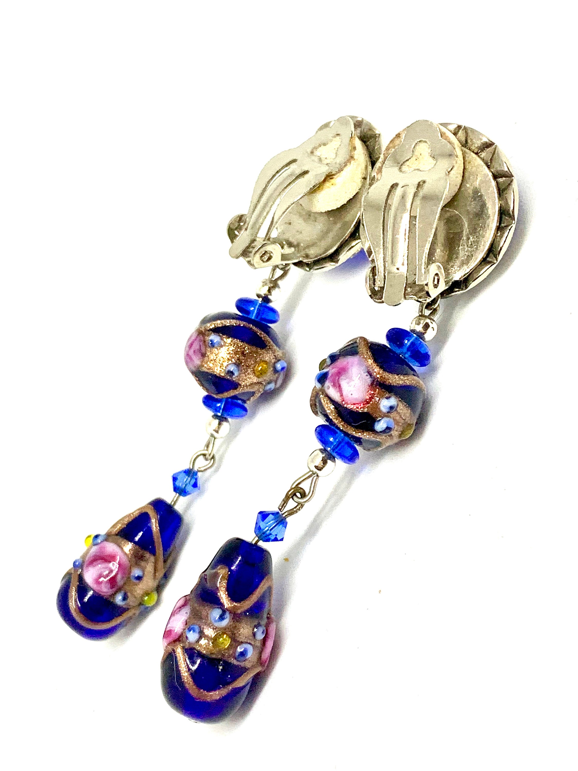 Cobalt Blue Italian Wedding Cake Statement Earring Dangles! Let’s get married! Vintage Murano glass Jewelry