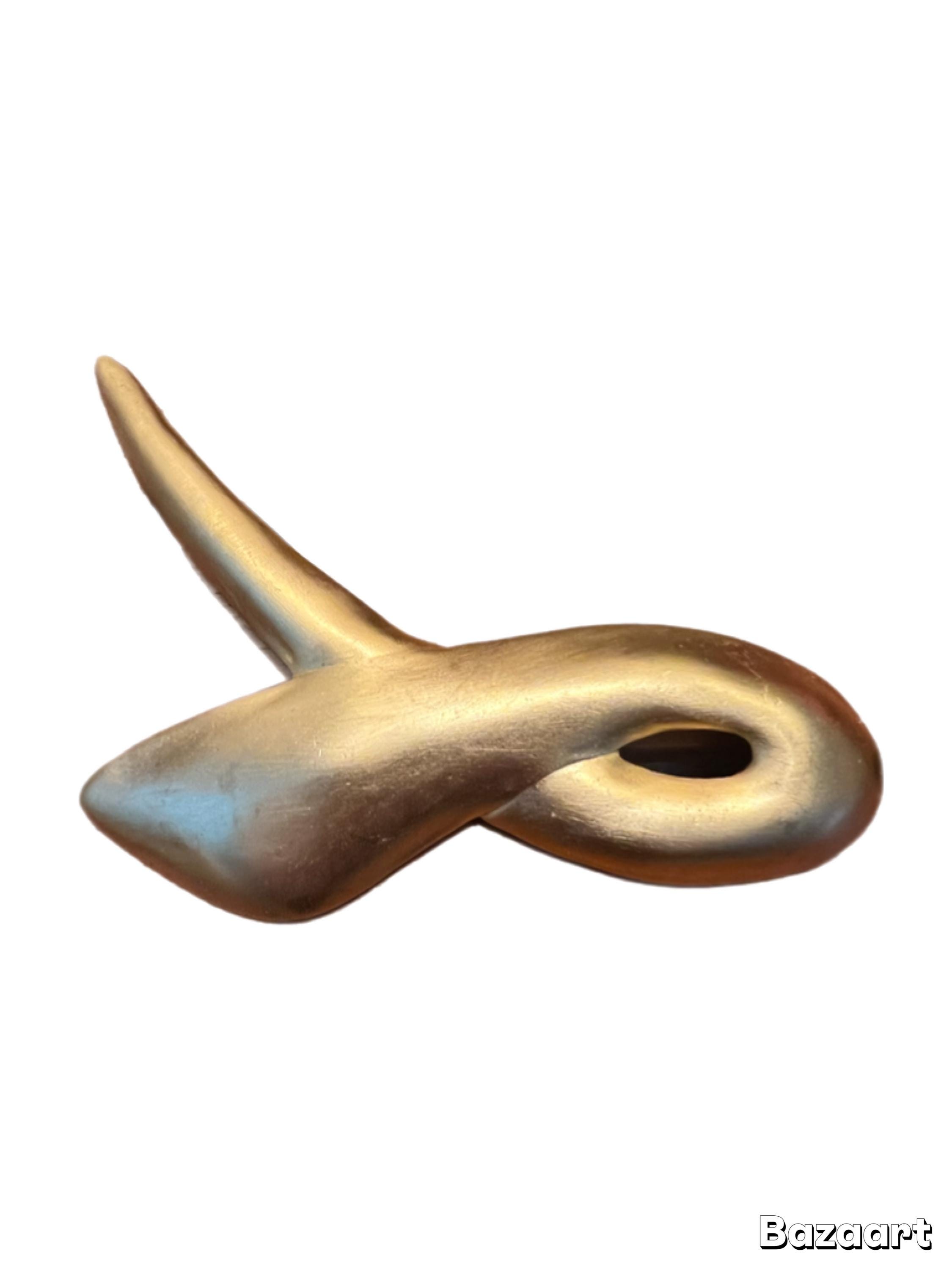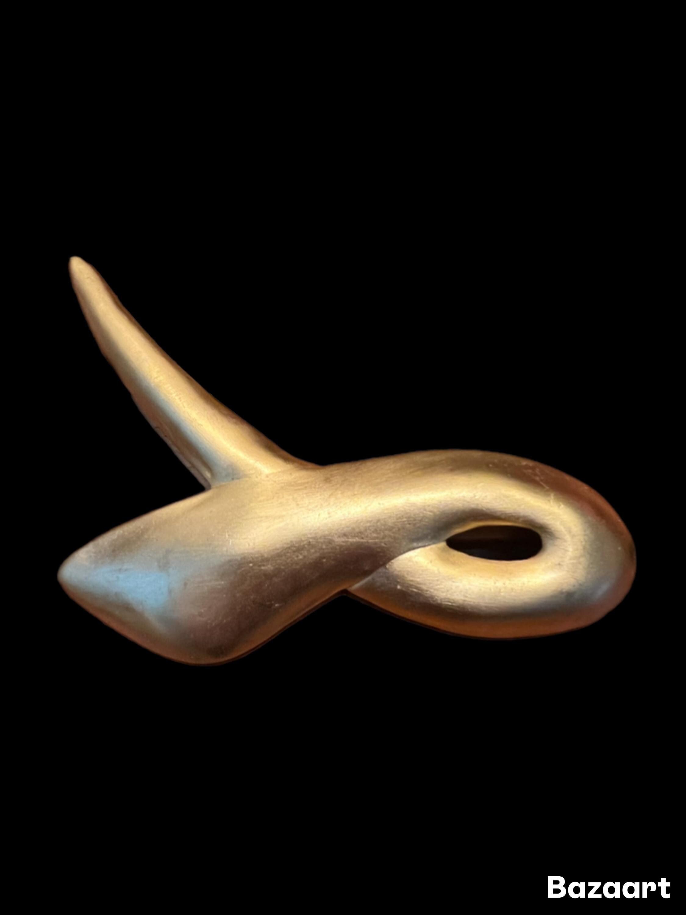 High Fashion Lapel Pin, Vintage 80s Matte Gold one High End modernist Statement Brooch: swoosh, puffy ribbon, abstract snake?