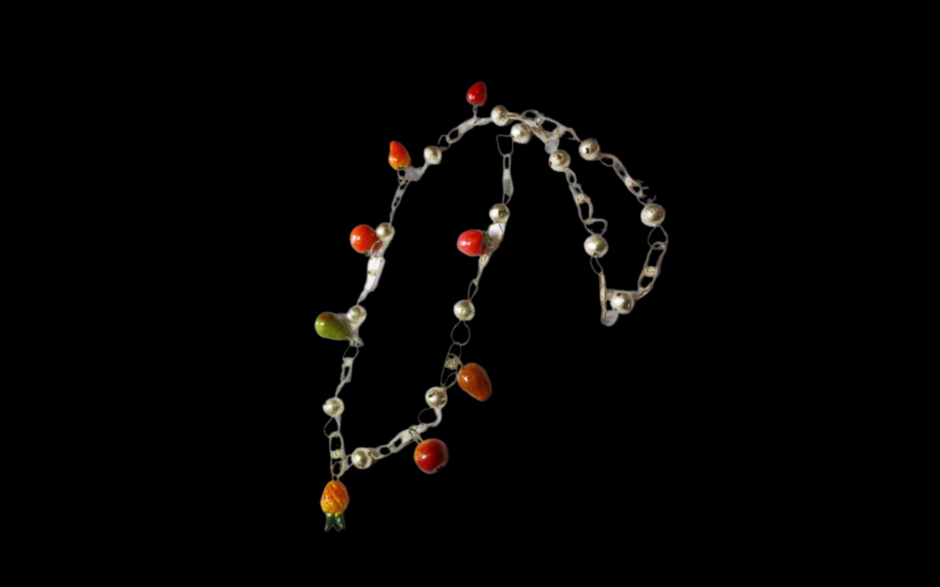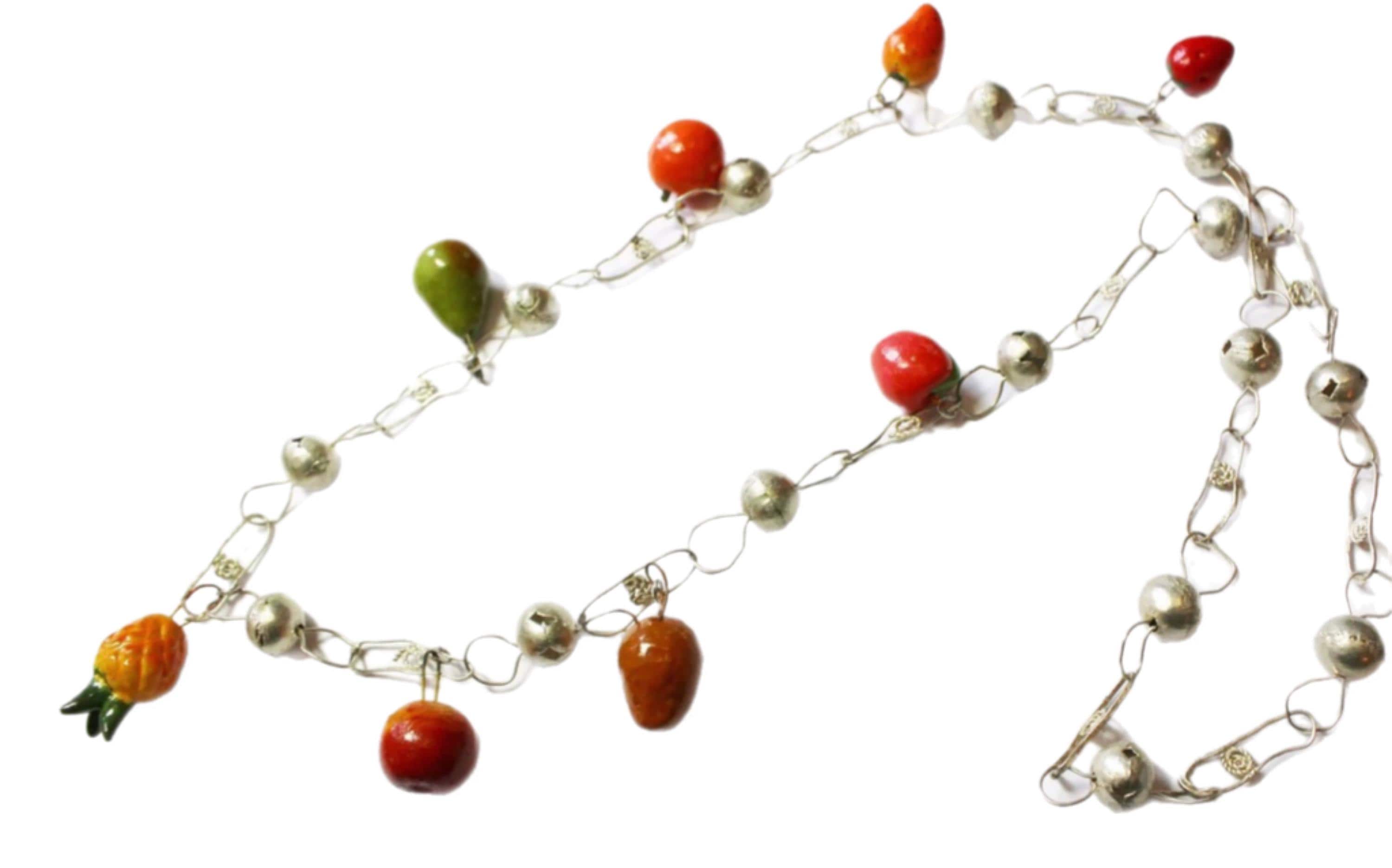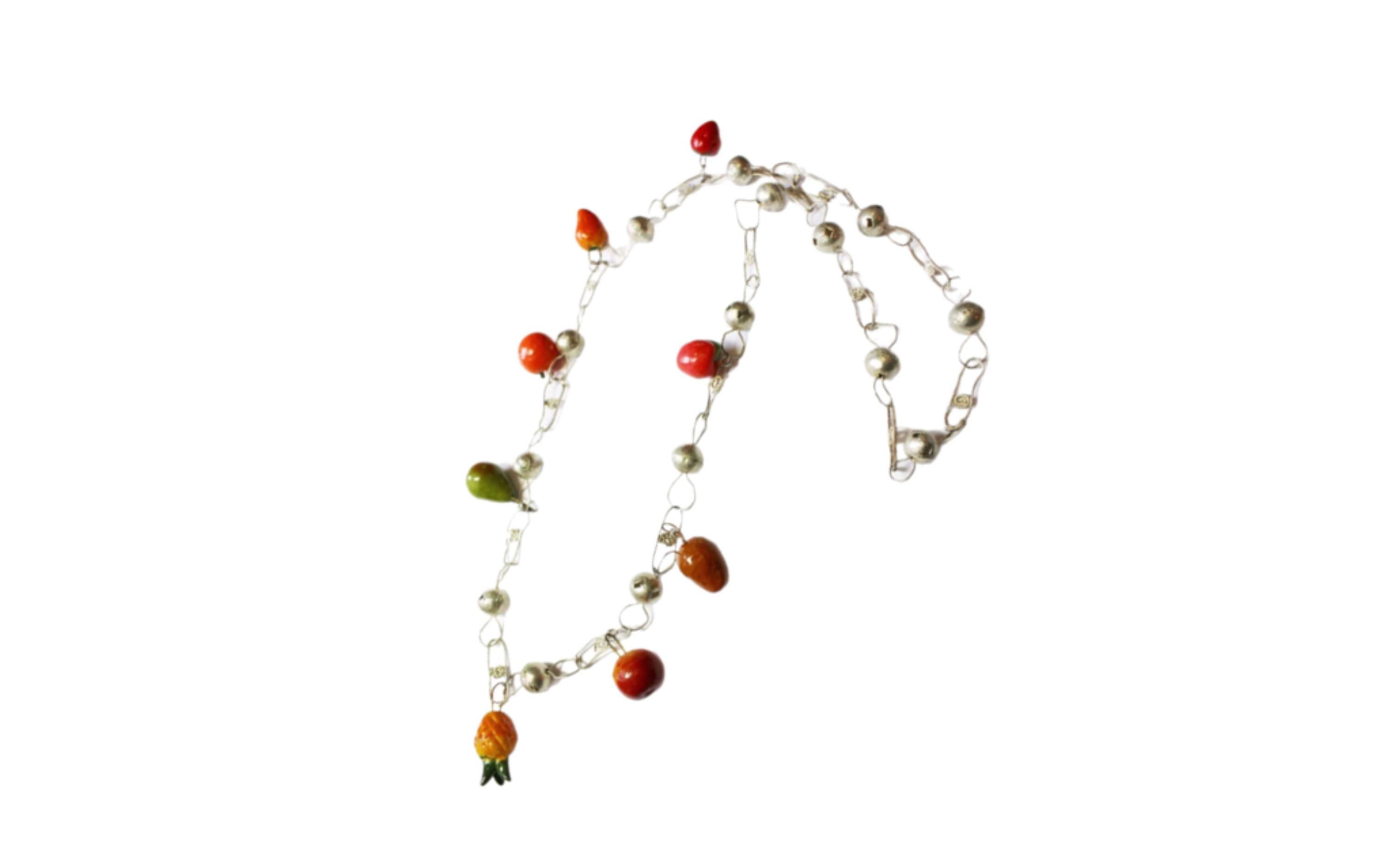 Miniature Fruit Necklace: Silver Tone Chain, Viva Carmen Miranda