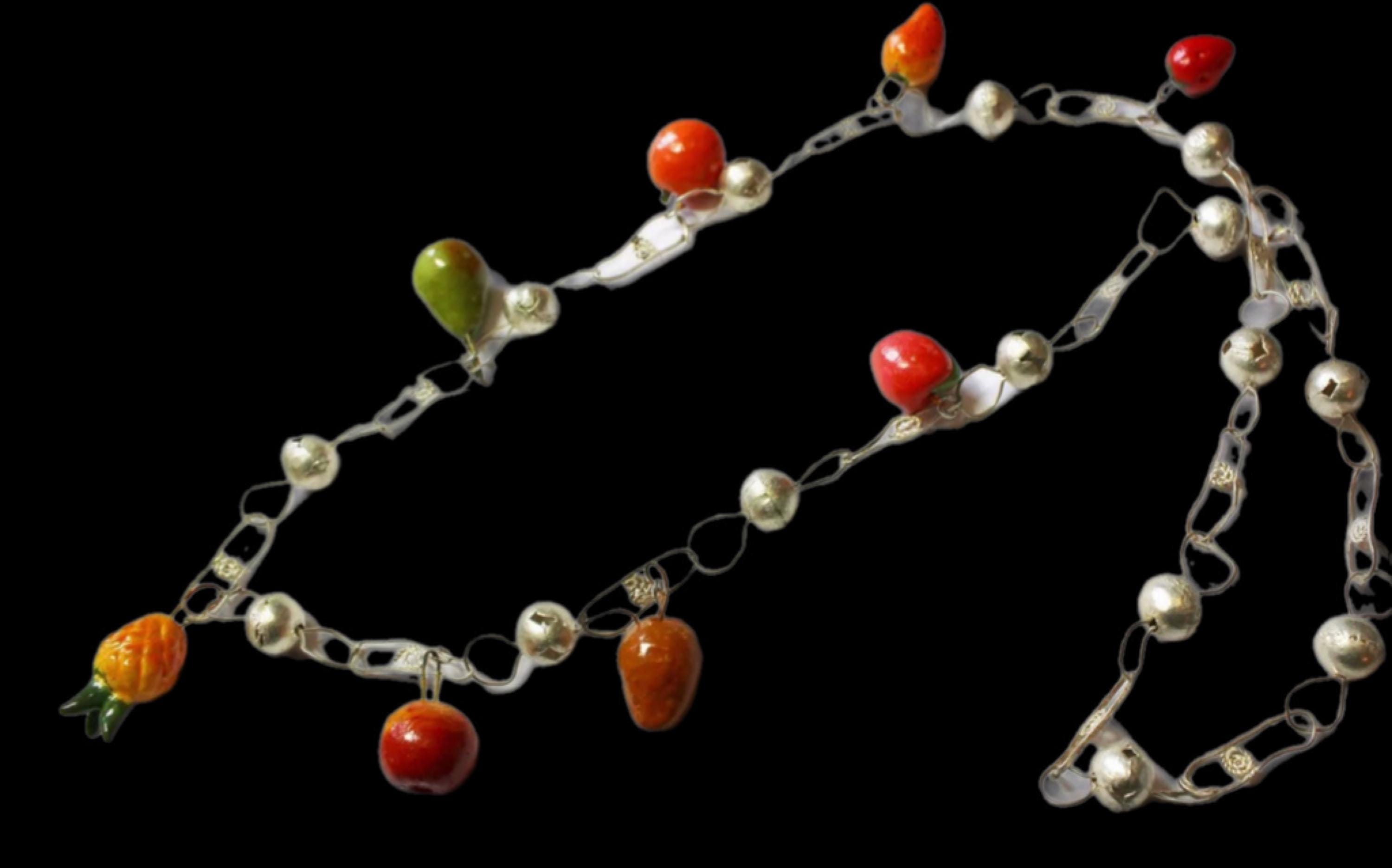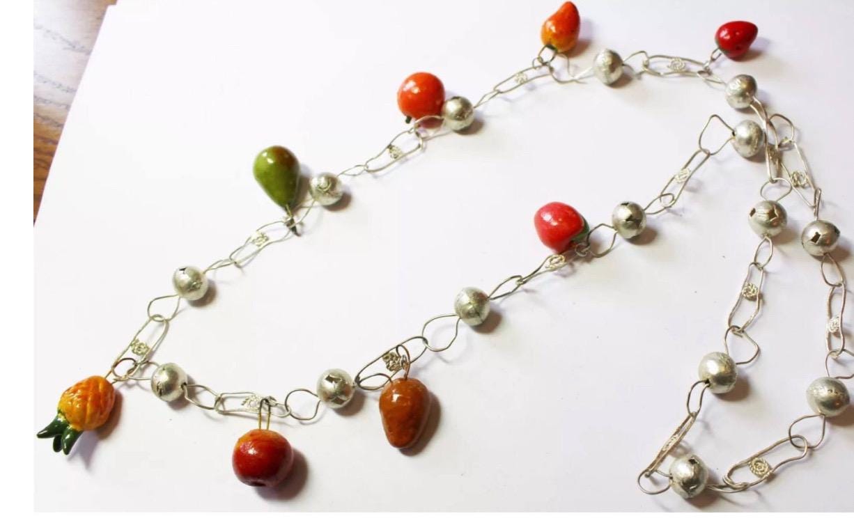 More elegant and more recently sustainable vintage version of the old plastic fruit salad necklaces - I have a nice one listed also- this is a lovely festive tropical Carmen Miranda anyway necklace ready to be enjoyed by its new owner!