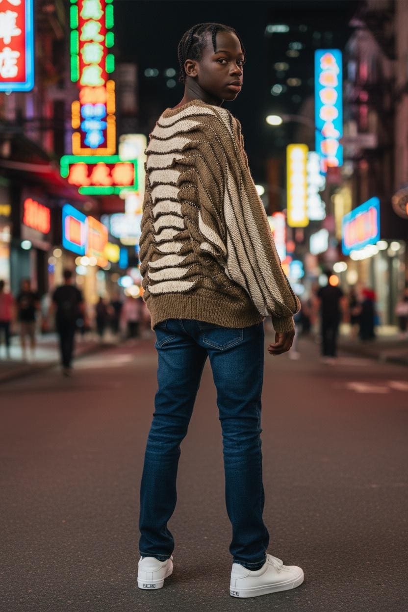 Feel free to ask questions. I have used ai to illustrate the sweater on various models in different senarios - with actual photos of the sweater. All shots of the sweater are the actual sweater and tags.