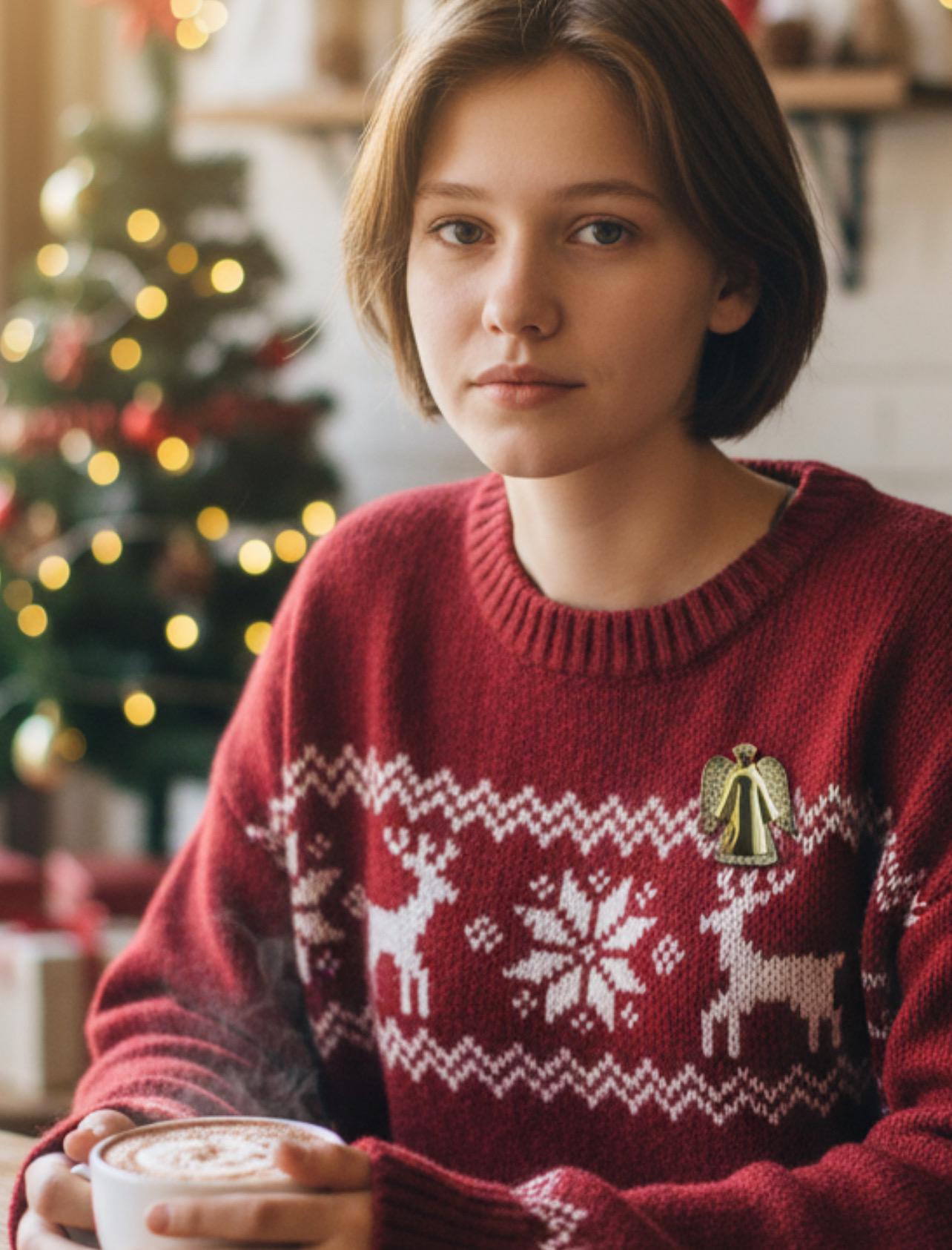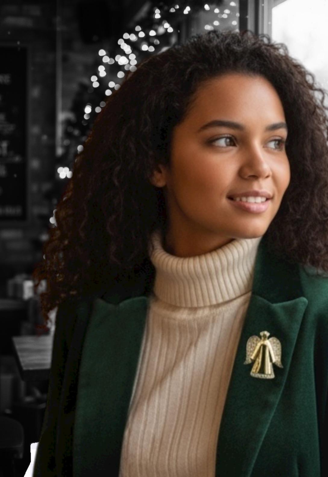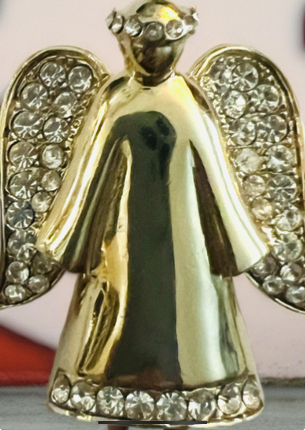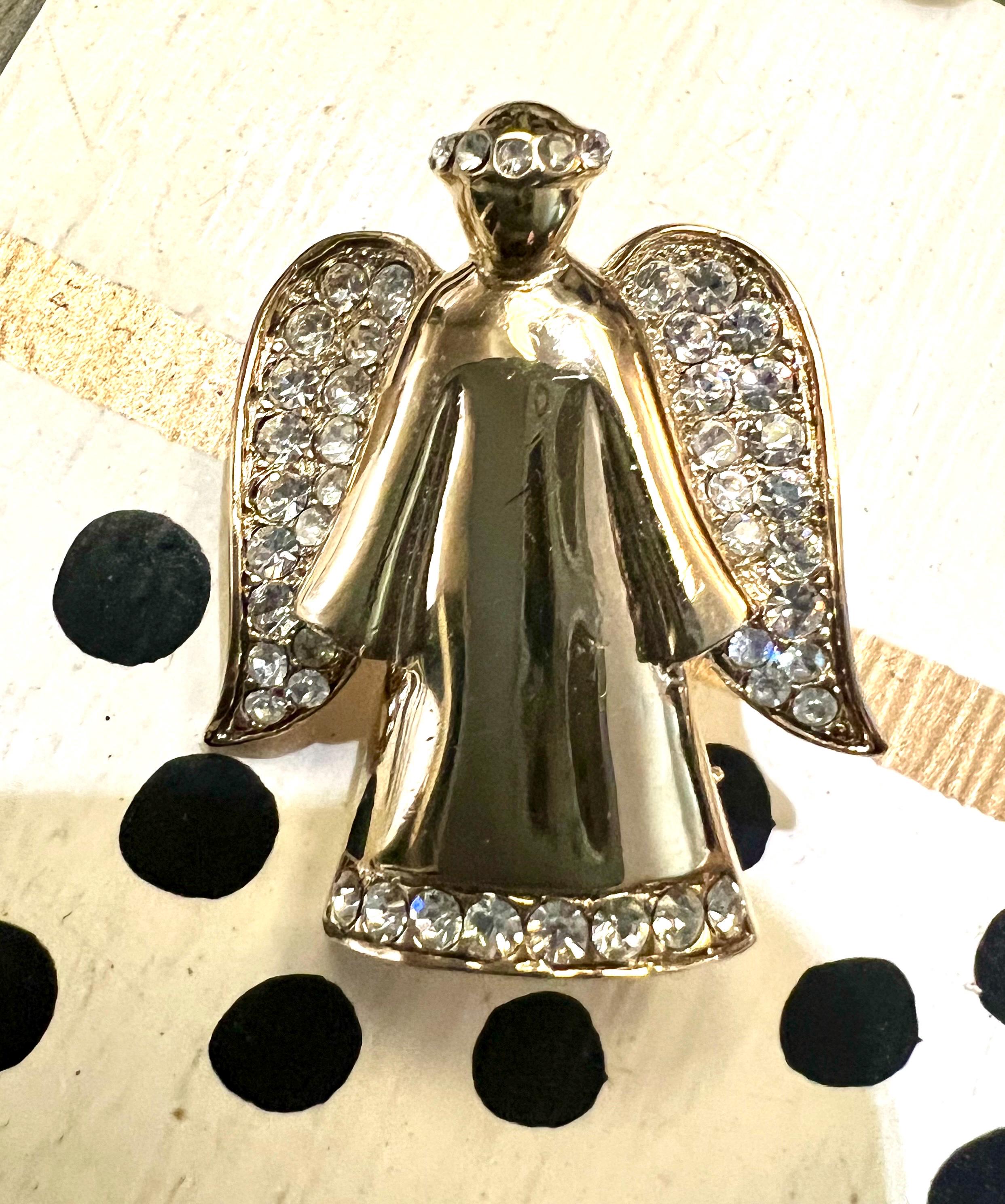 Small but stylish enough to make a statement! This 3cm x 2cm mid century signed Monet minimalist angel with a twist of rhinestone accents makes it quite unique in it’s subtle contrasting style… and it works!