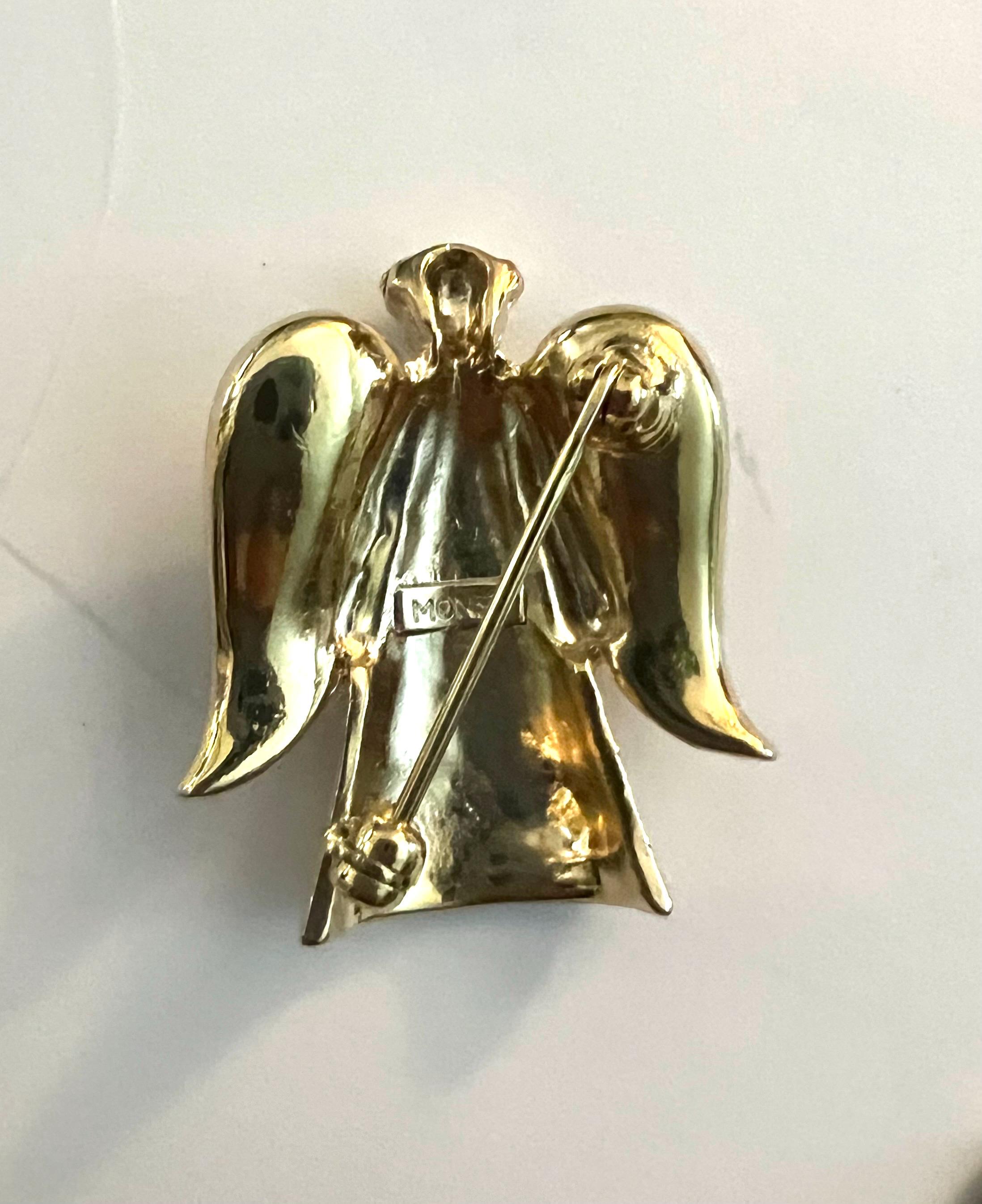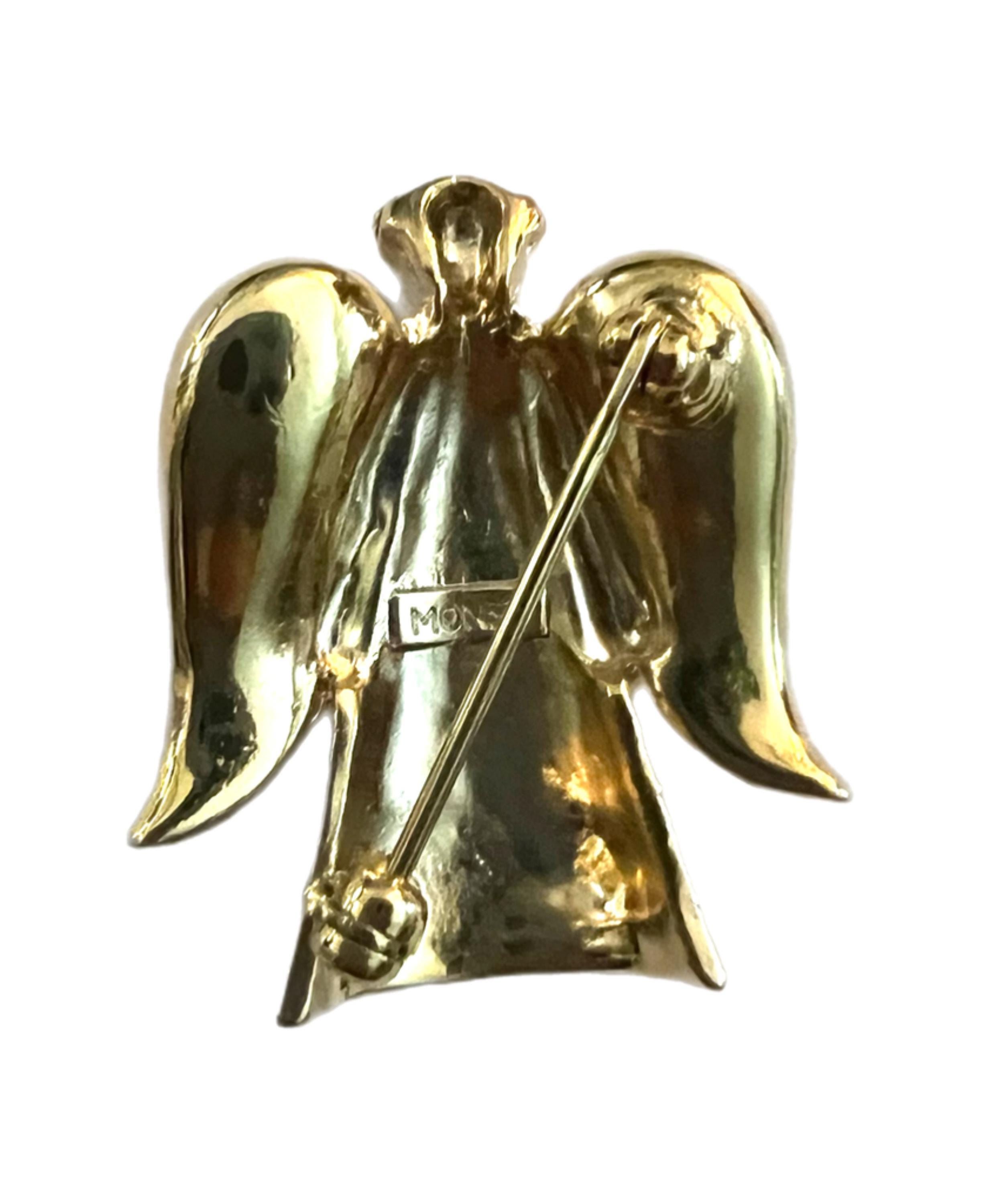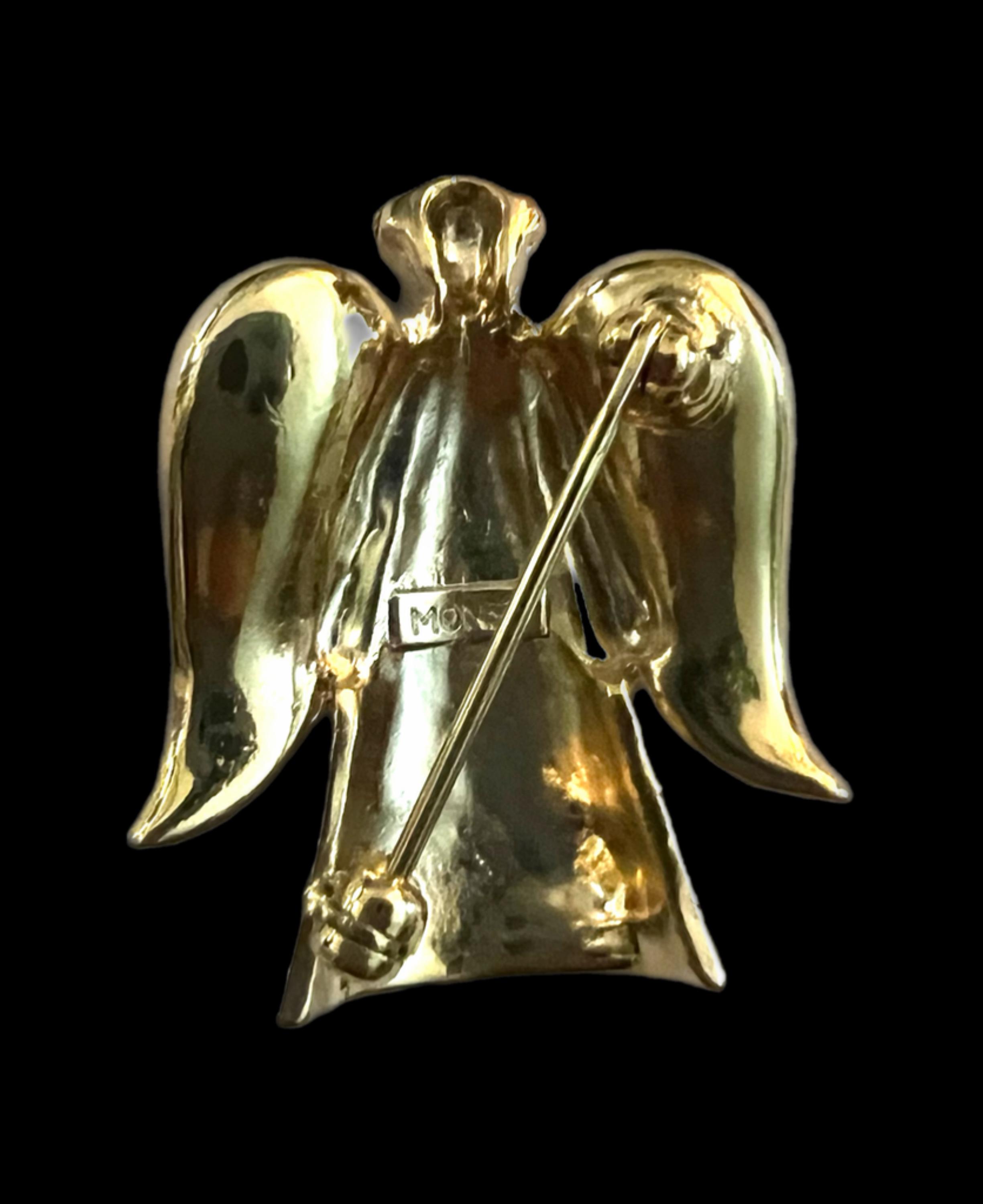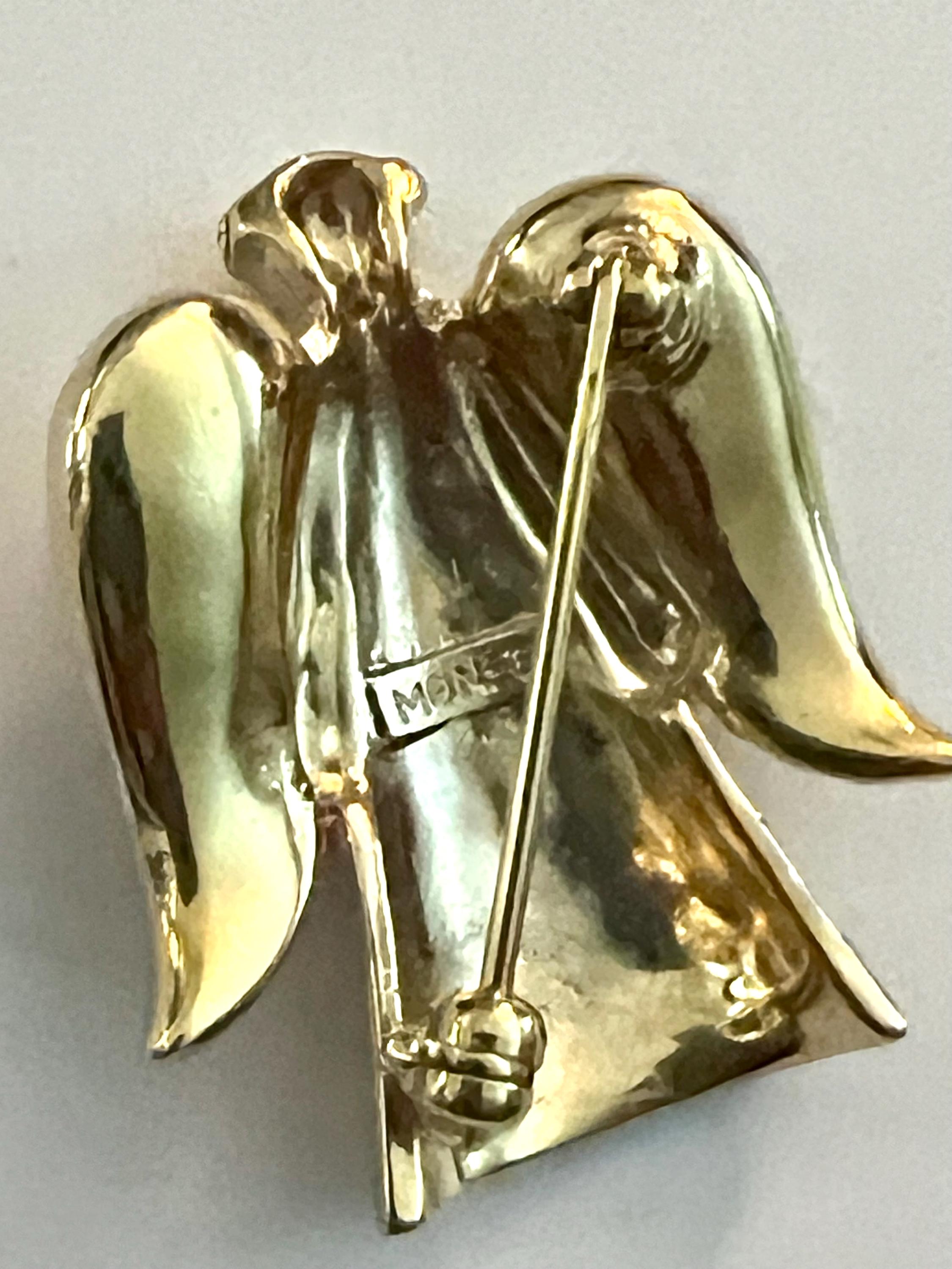 Vintage Monet Angel Brooch – Gold Tone Rhinestone Wings Lapel Pin