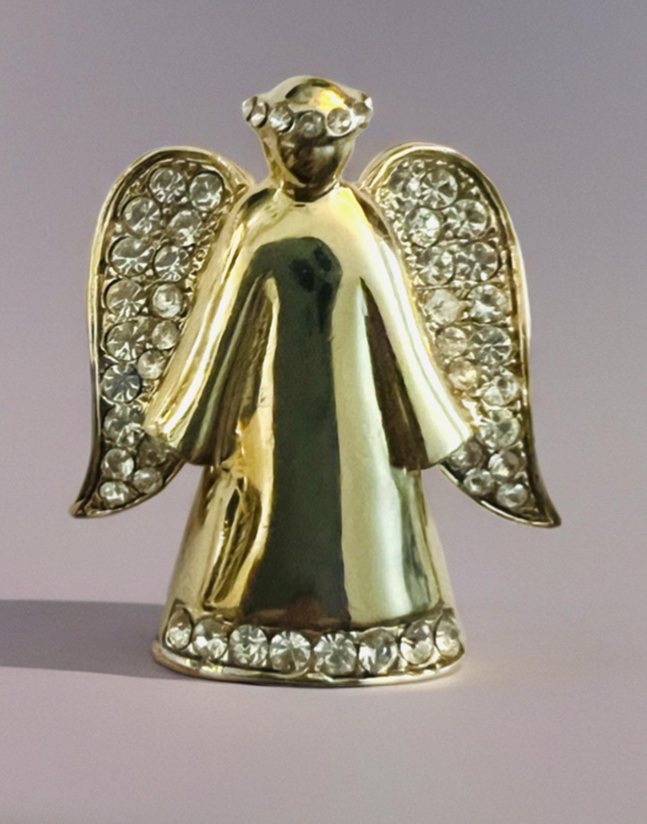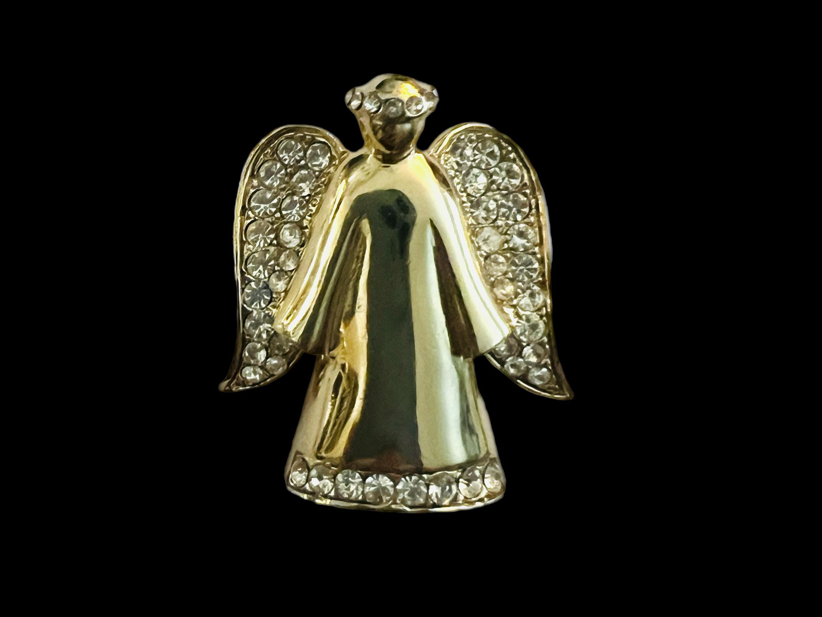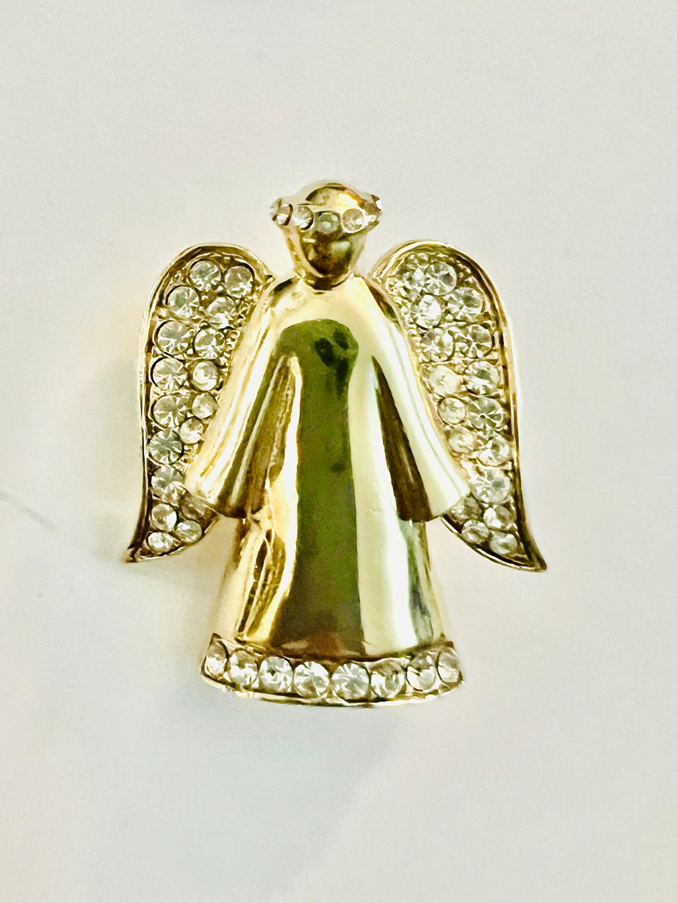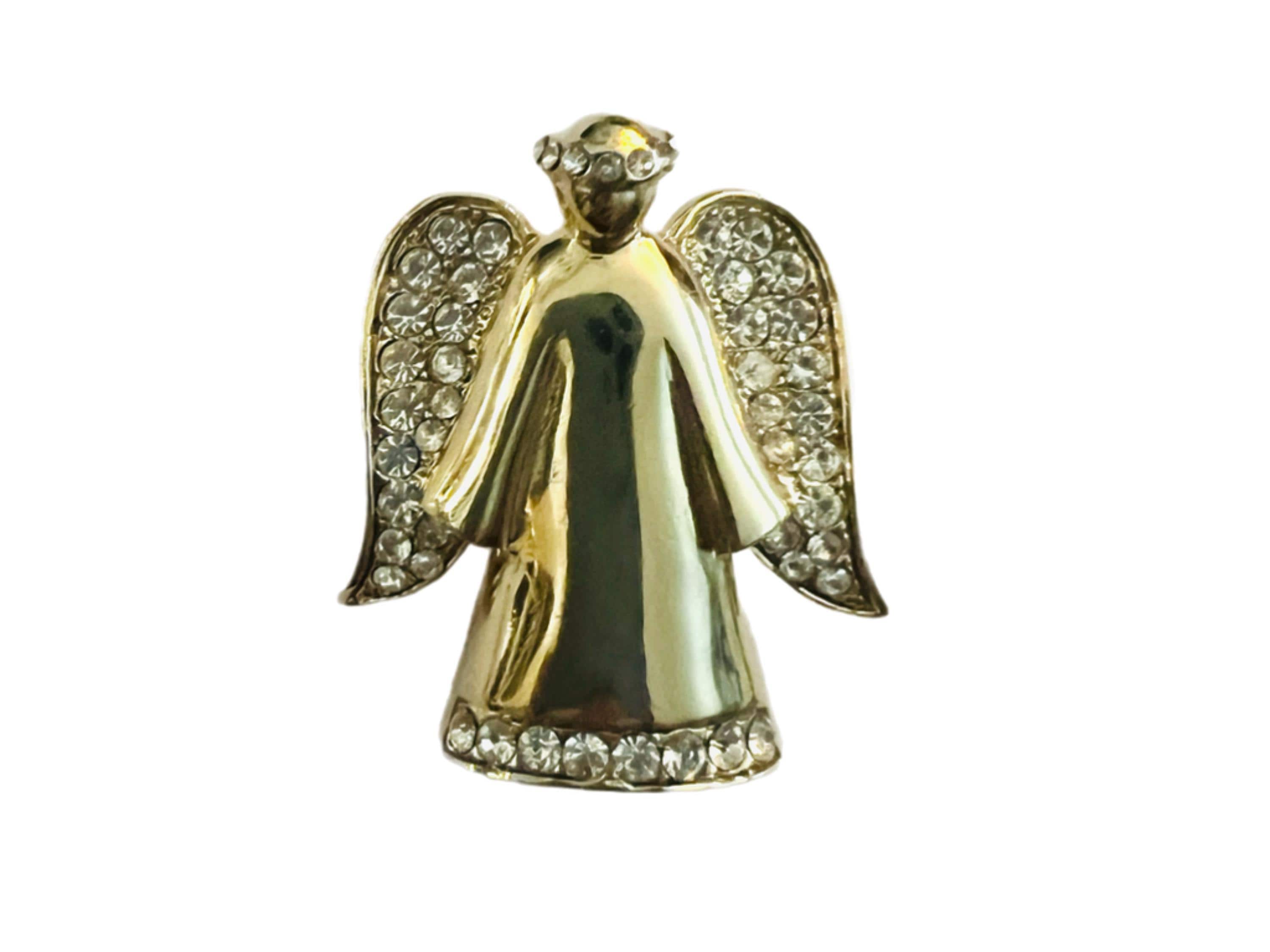 Vintage Monet Angel Brooch – Gold Tone Rhinestone Wings Lapel Pin
