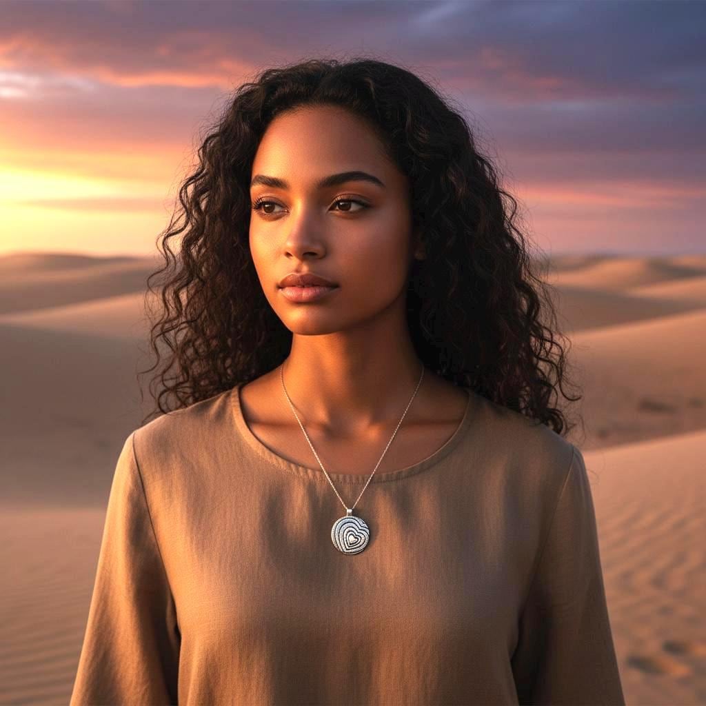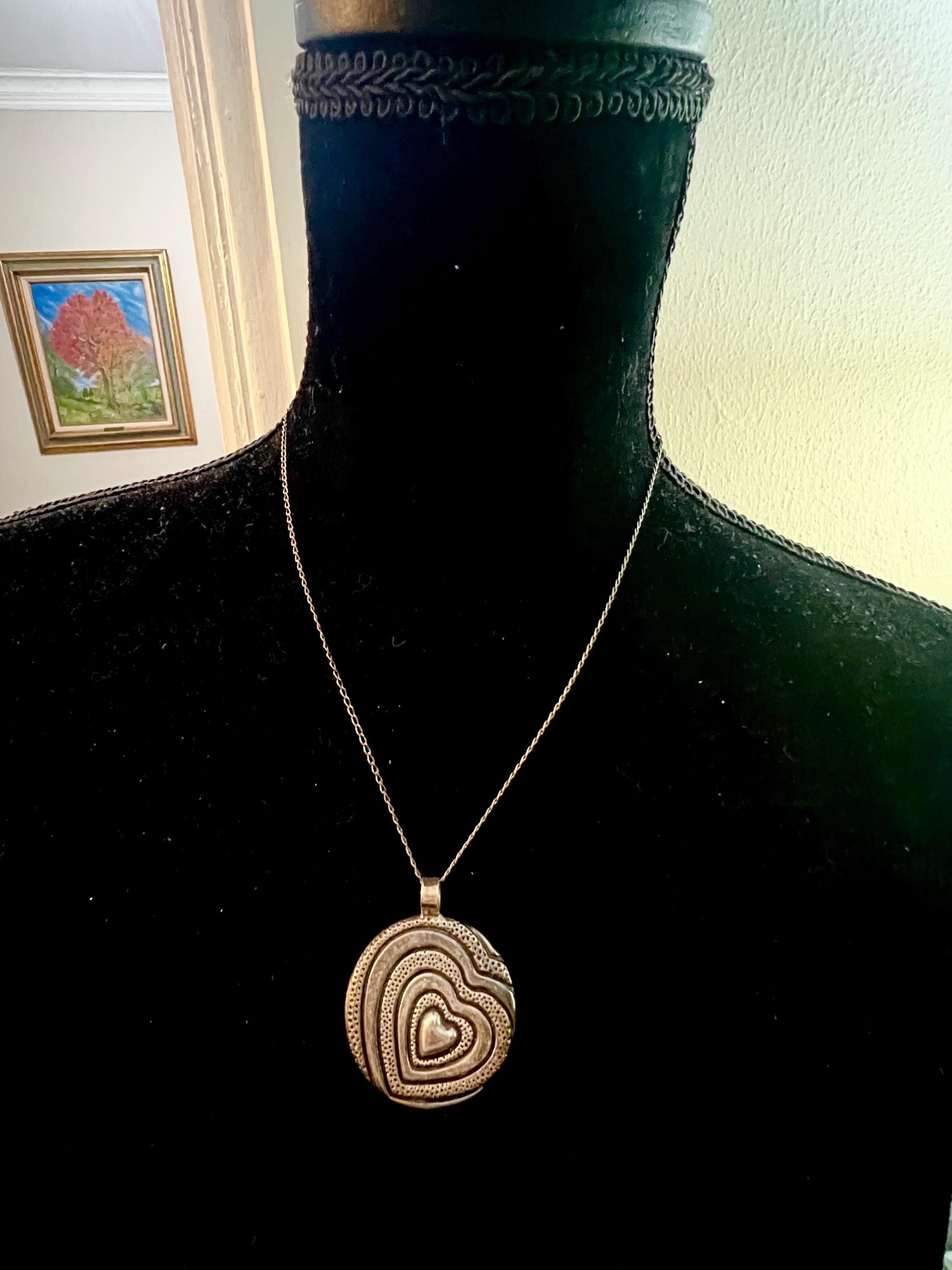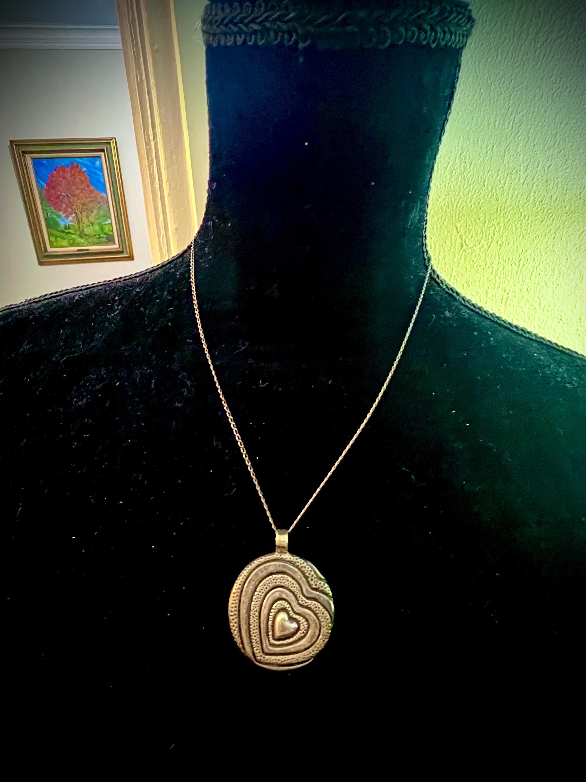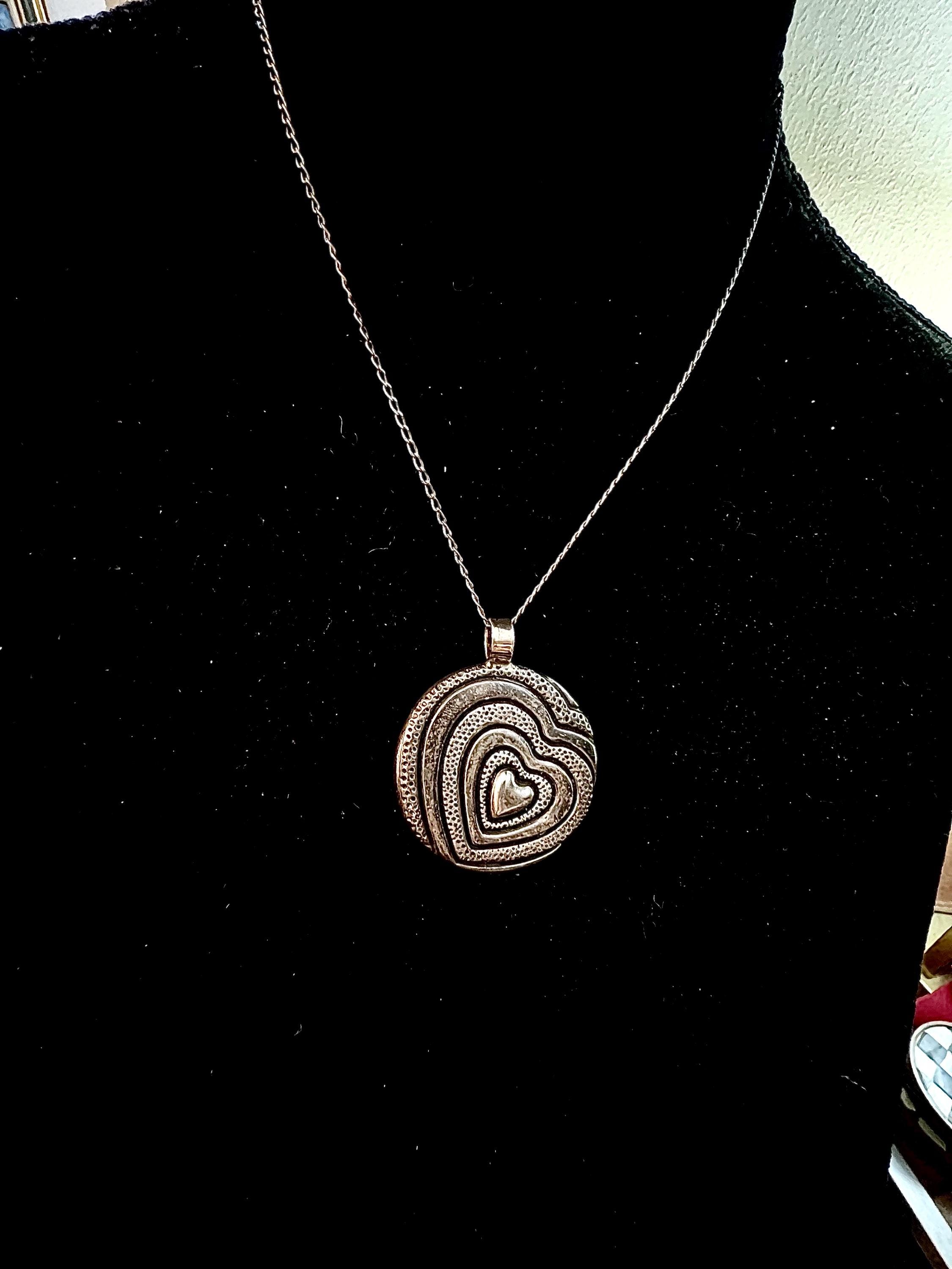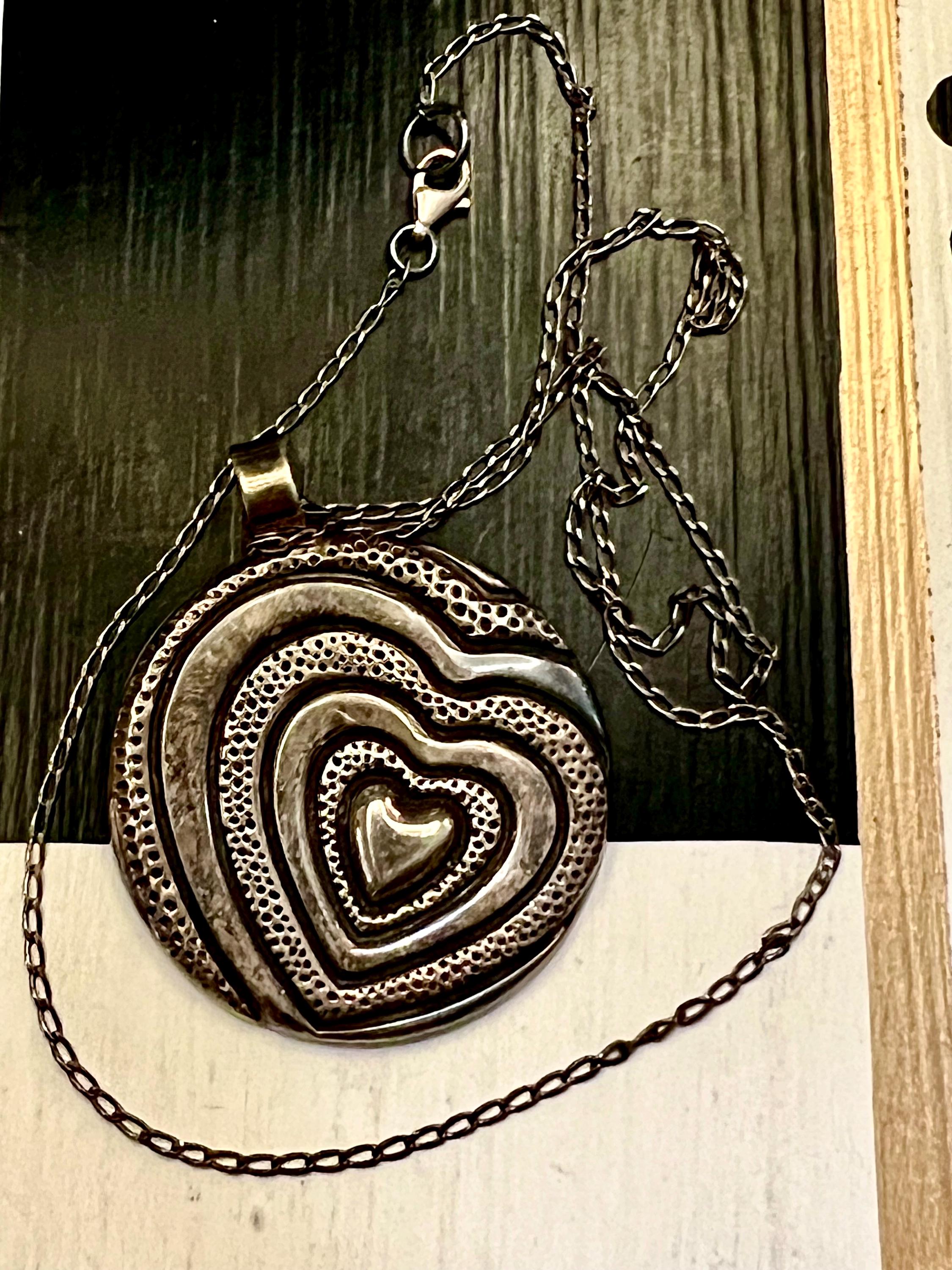 Highly Sought Trending Vintage 925 Mexico Silver Artisan Pressed Metal Groovy Modernist Heart Puffy Disk Necklace