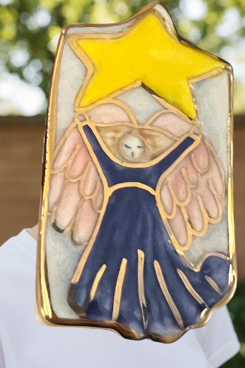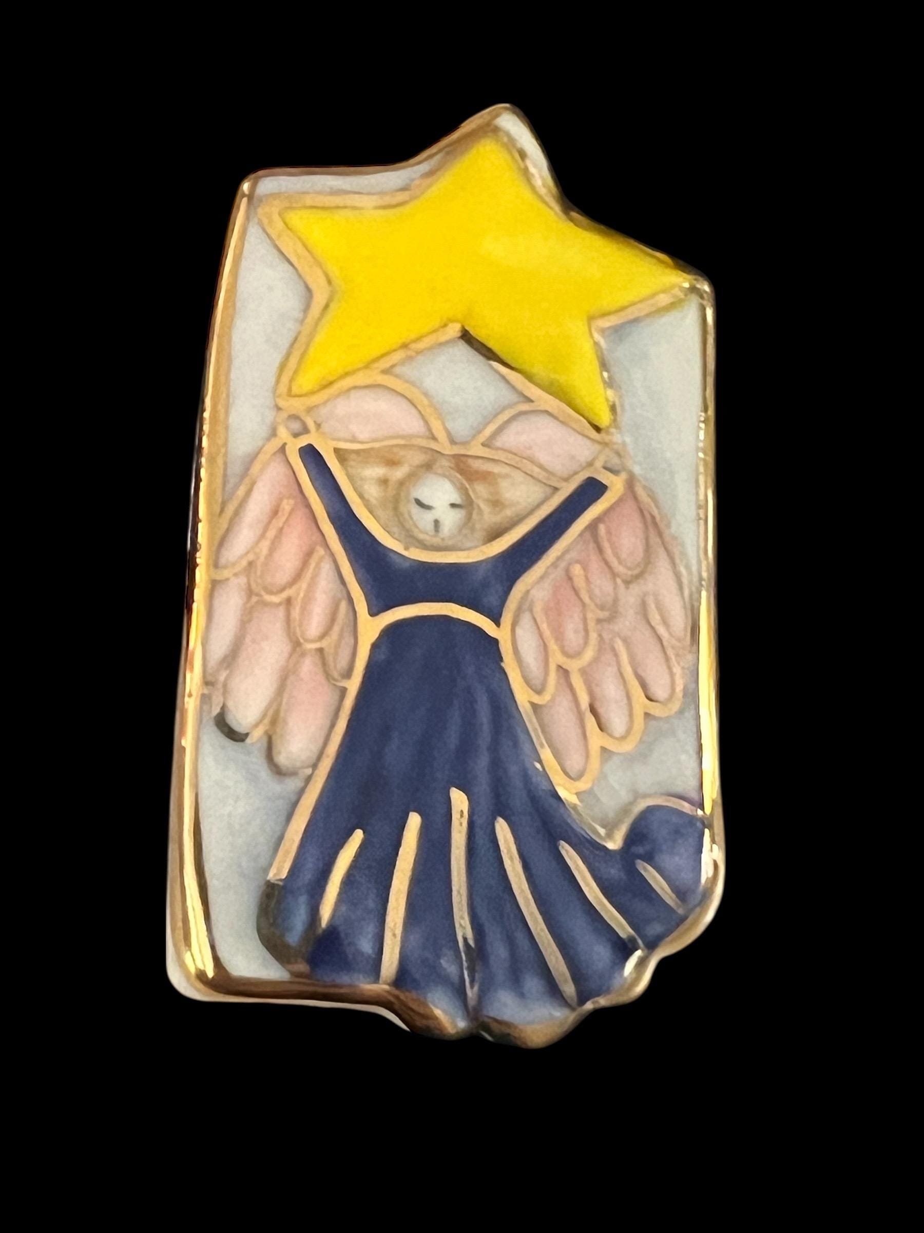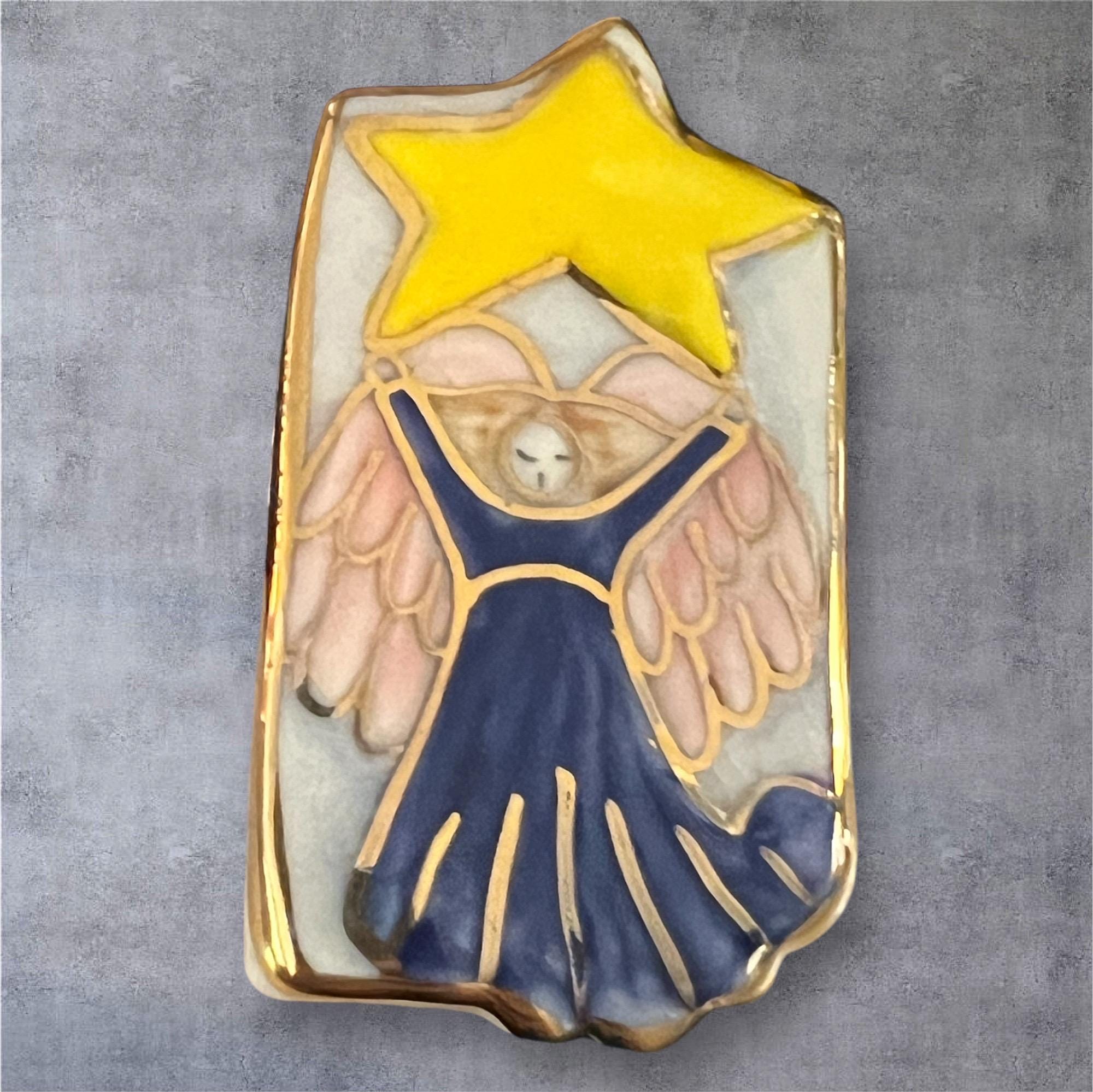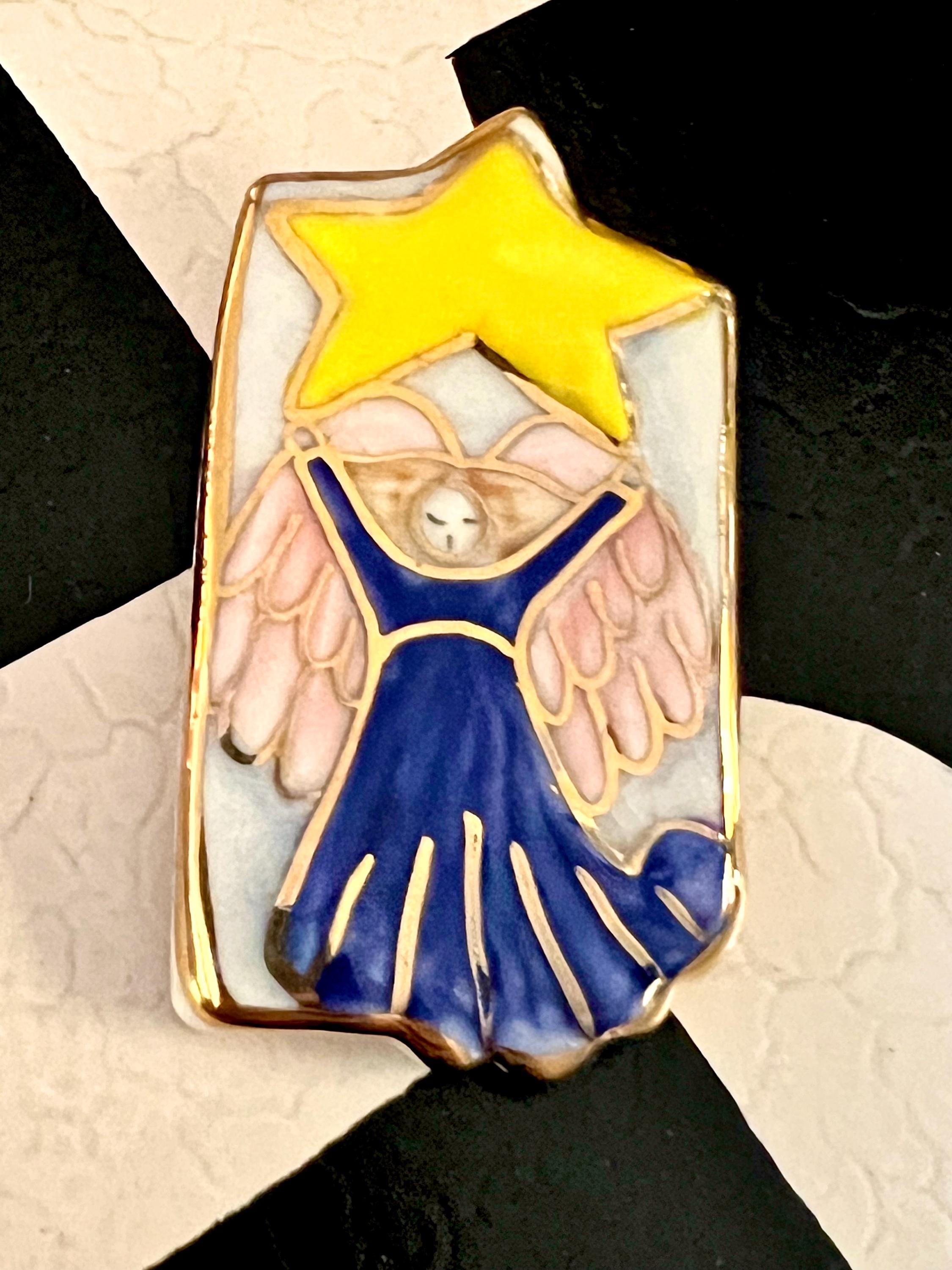 Colorful Minimslist Artisan Ceramic Angel Lapel Pin, handmade vintage holiday brooch