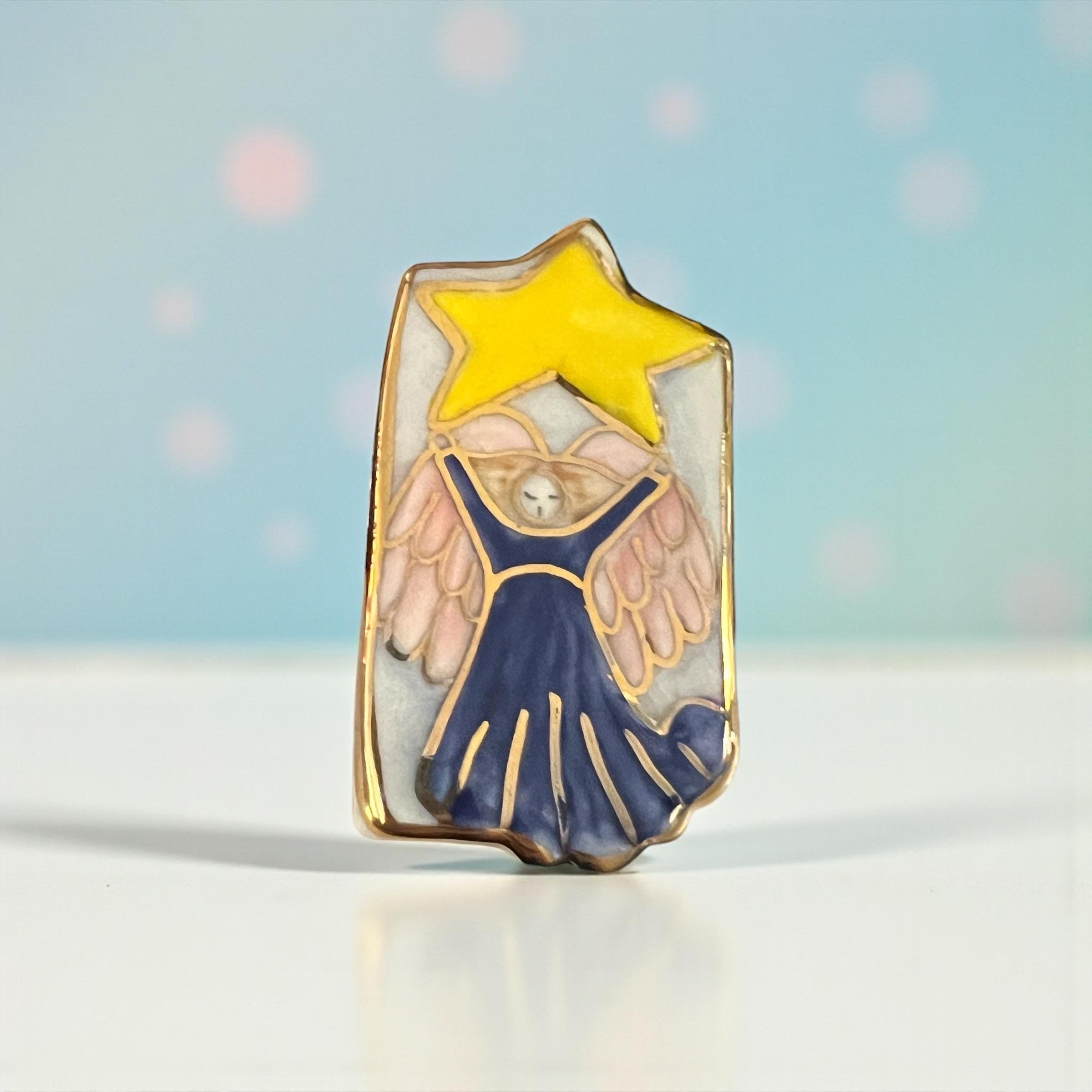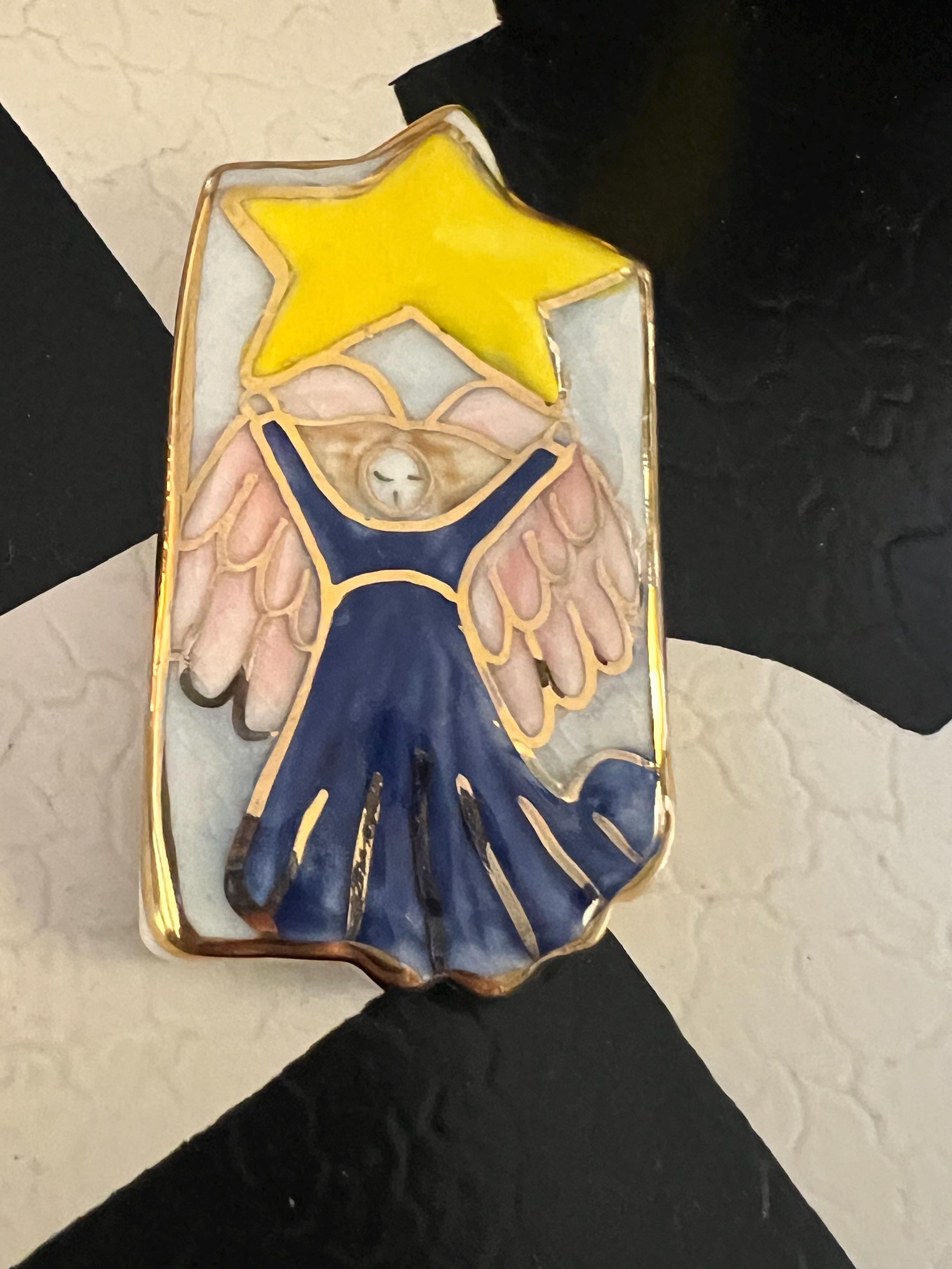 Sweet empowering angel pin! Great way to add energy cheer to your holiday vibes! Looks great on anyone too!