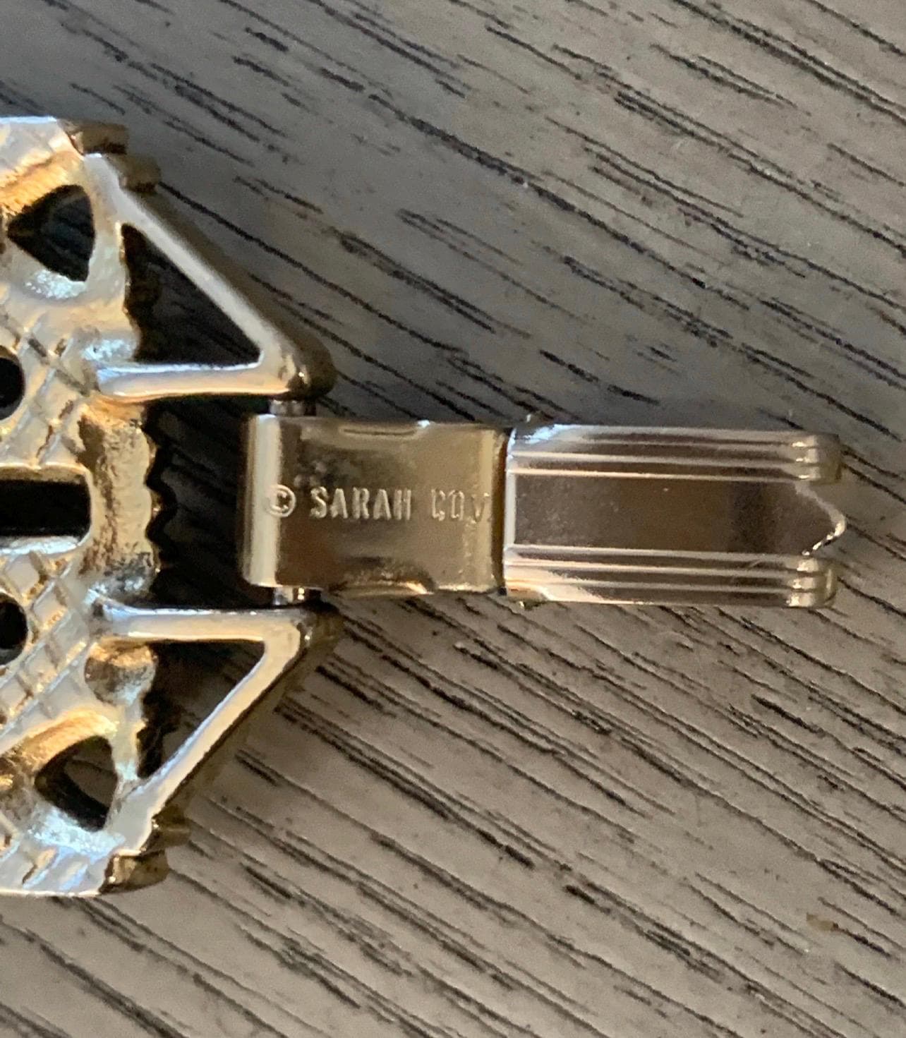 Gothic Revival Vintage Bracelet, Mid Century Sarah Cov Ornate cuff with Jewel tone Cabochons