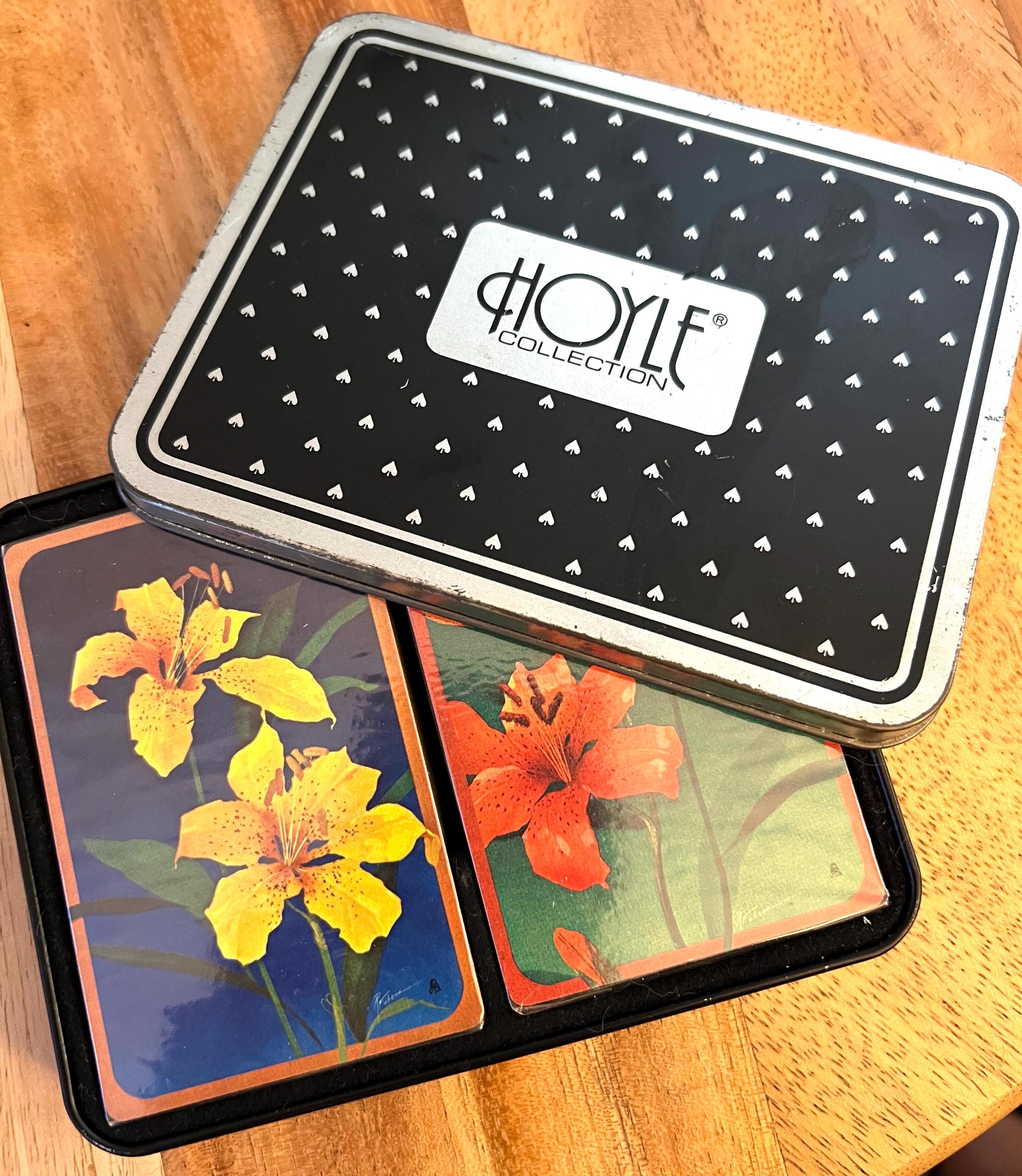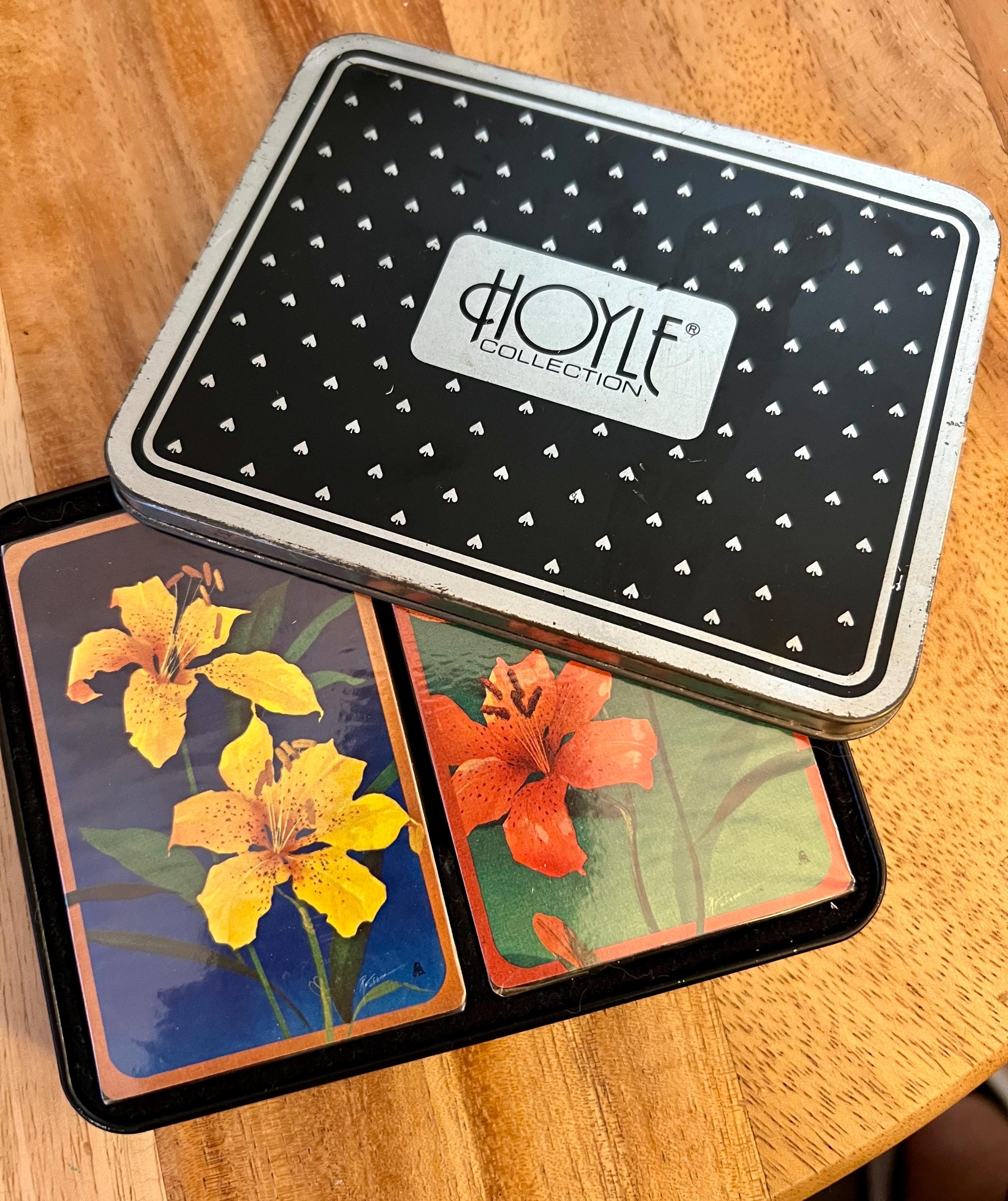 Beautiful Mid Century Tiger Lily Flowers Playing Cards in English Tin - sealed unused, excellent gift, unique house warming