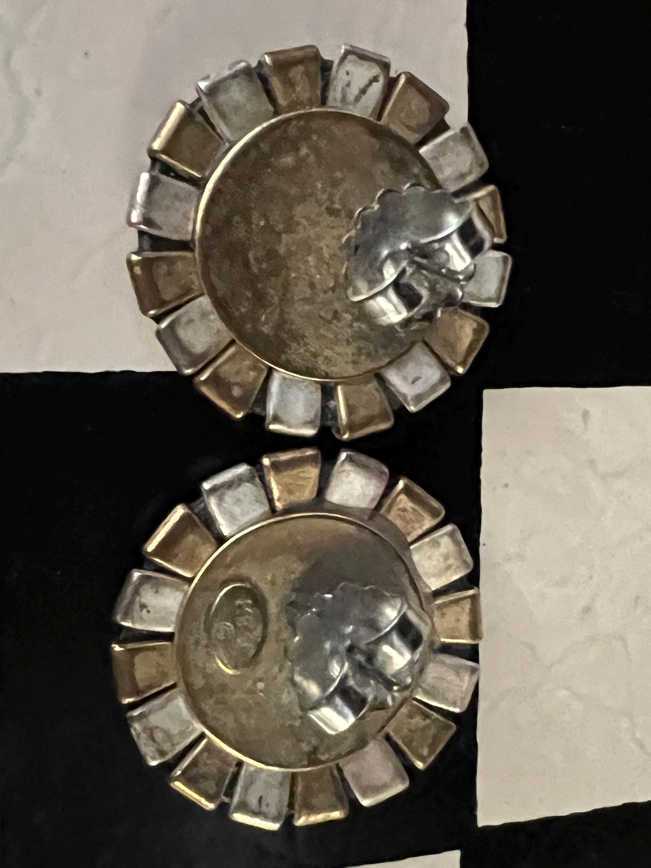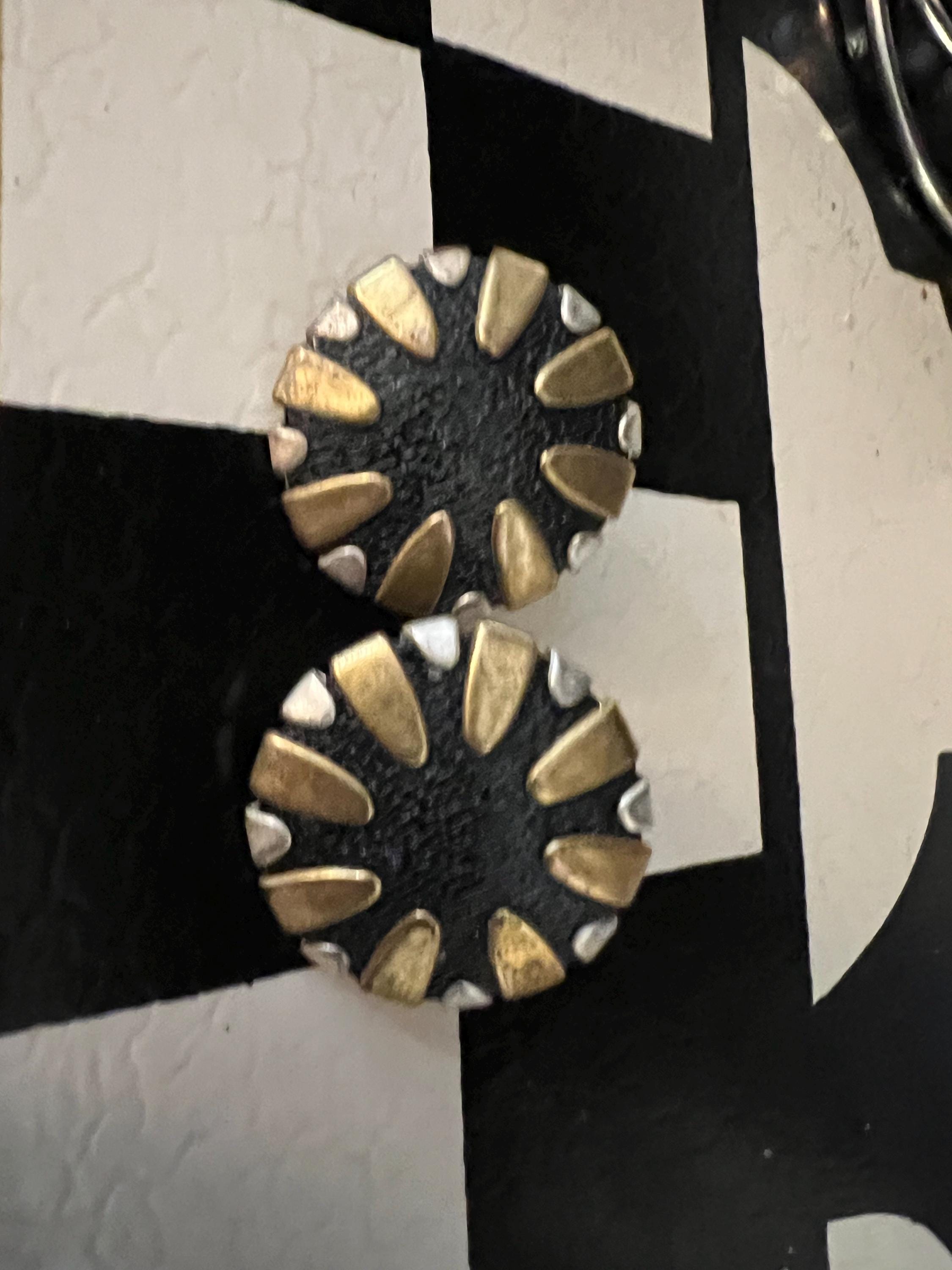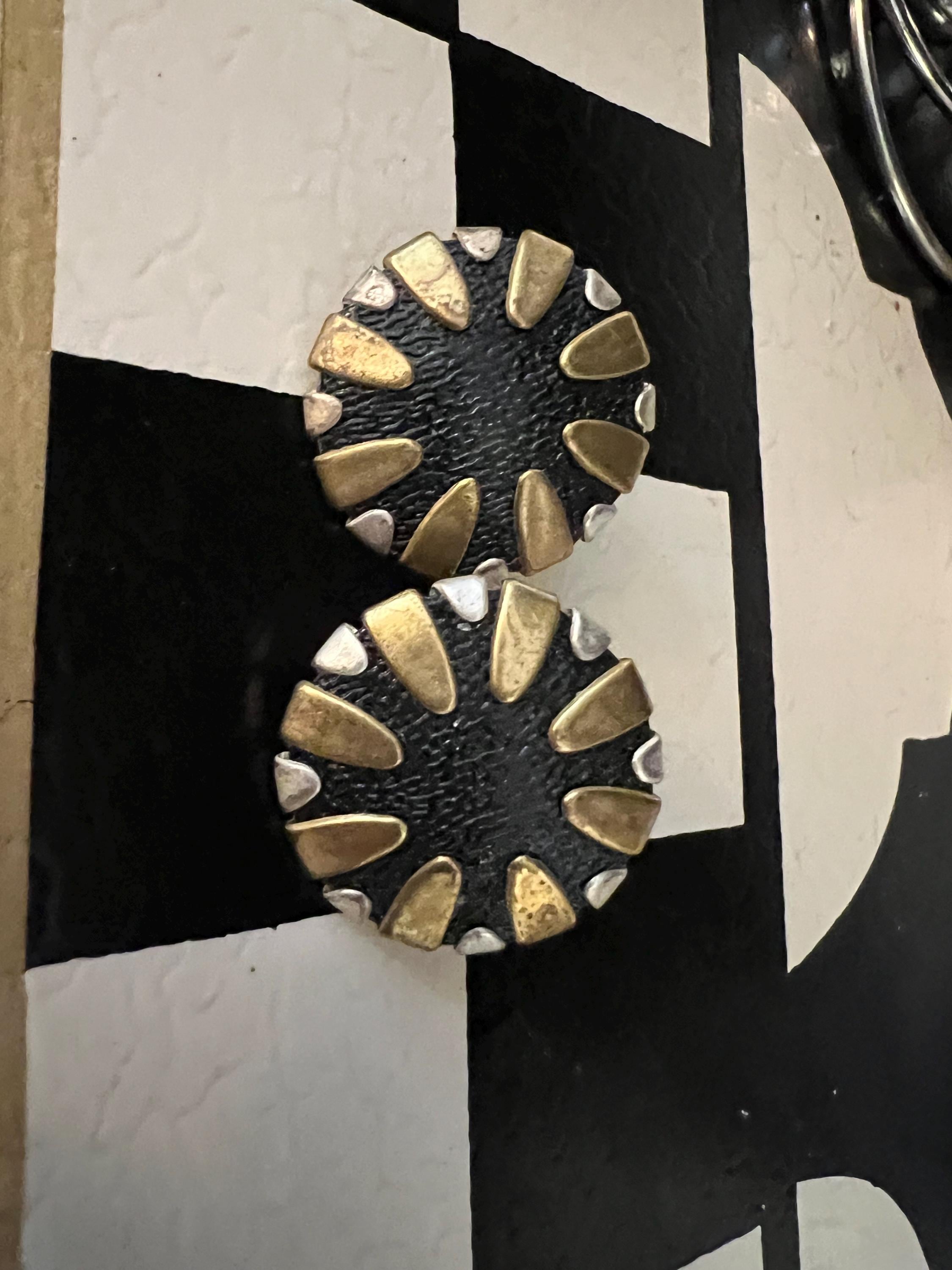 Vintage Marjorie Baer San Francisco Mixed Metals Post Modern Sunburst Earrings- handmade signed coveted collected jewelry