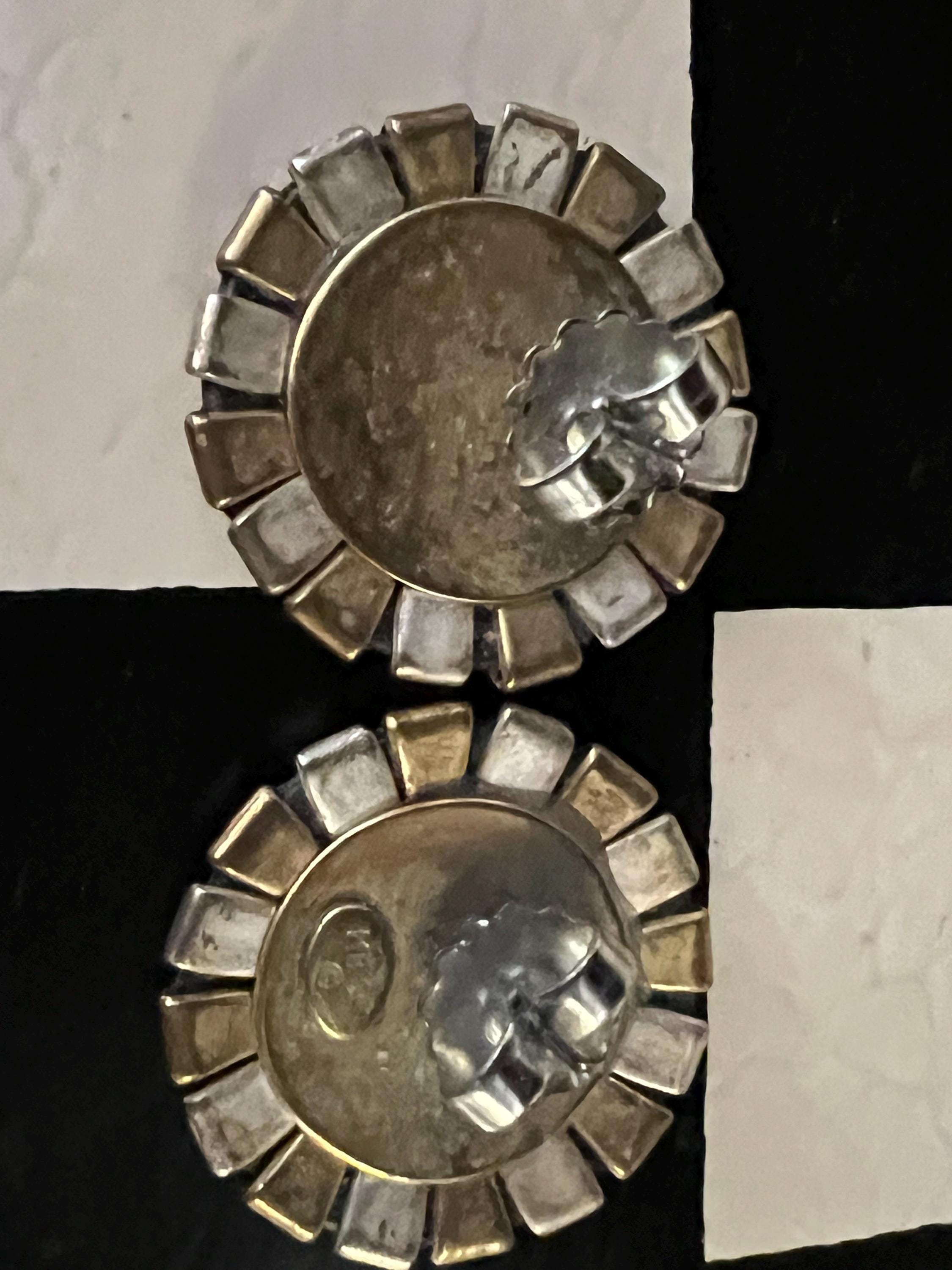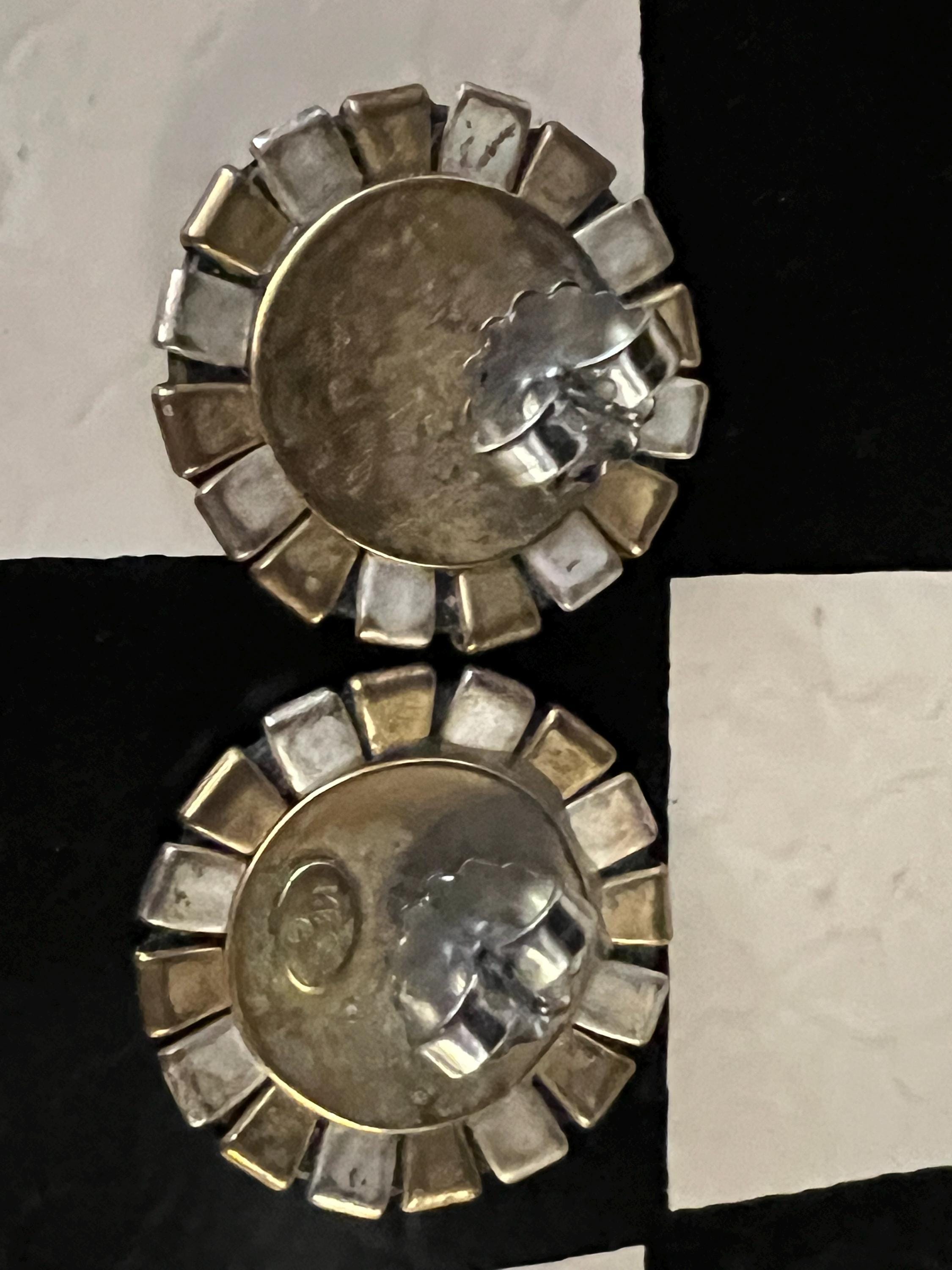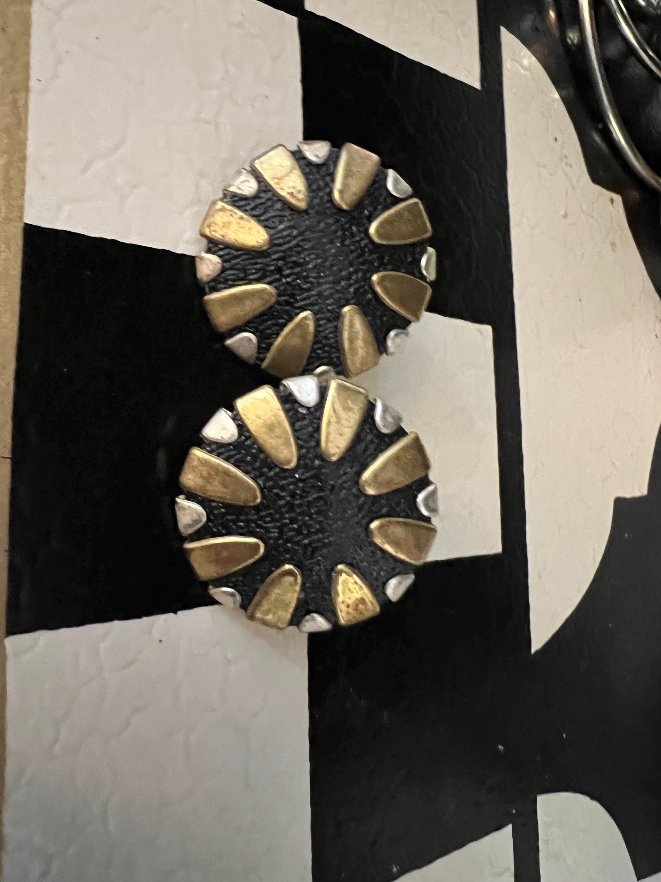 Vintage Marjorie Baer San Francisco Mixed Metals Post Modern Sunburst Earrings- handmade signed coveted collected jewelry