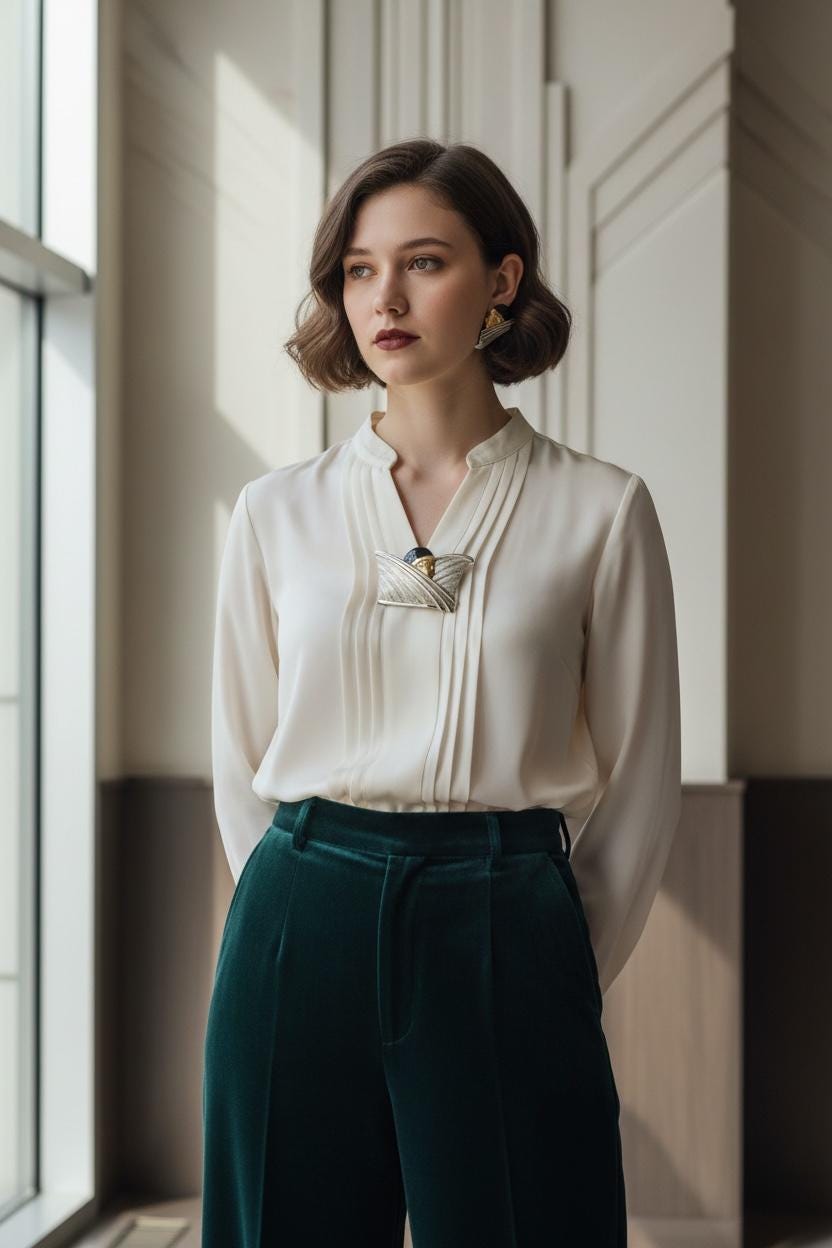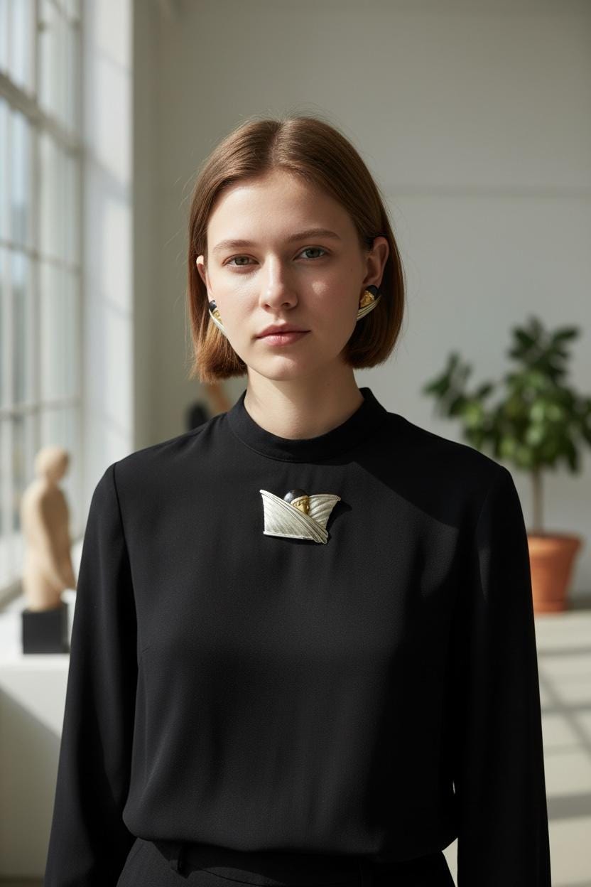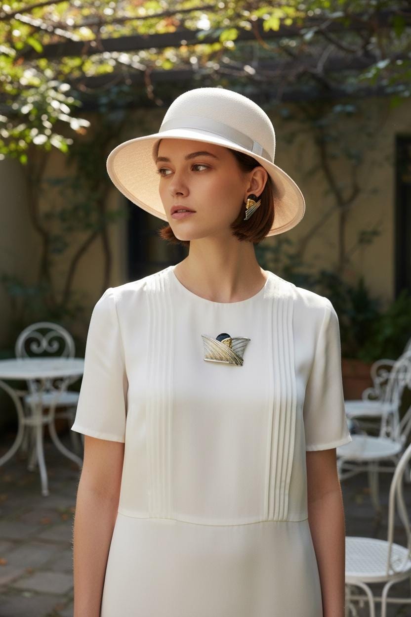 * Design: The pieces feature a stylized female profile with a black enameled cloche-style hat and a gold-toned face.