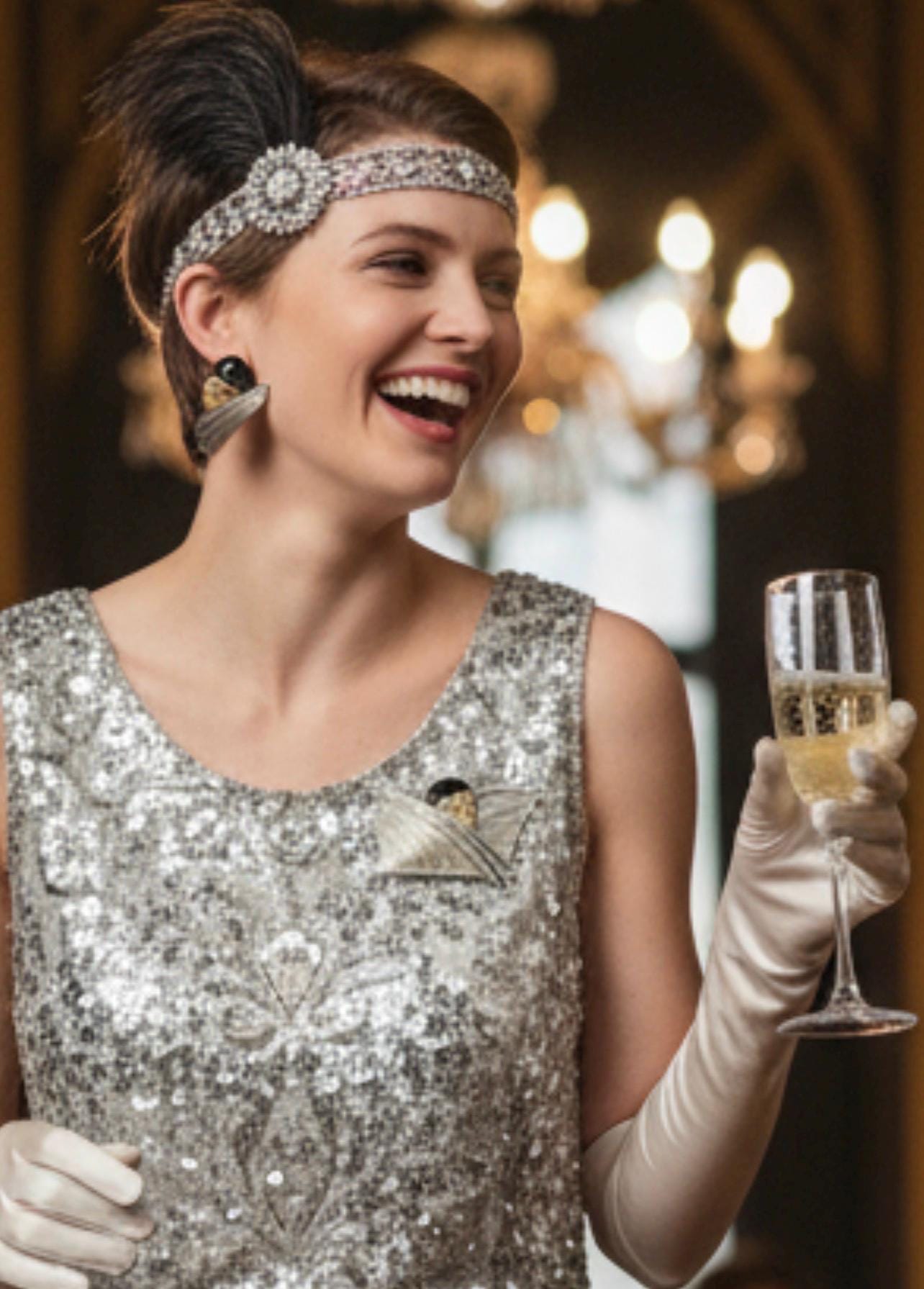 The specific design is often described as "flapper" or "futuristic" and is inspired by the artist Erté.