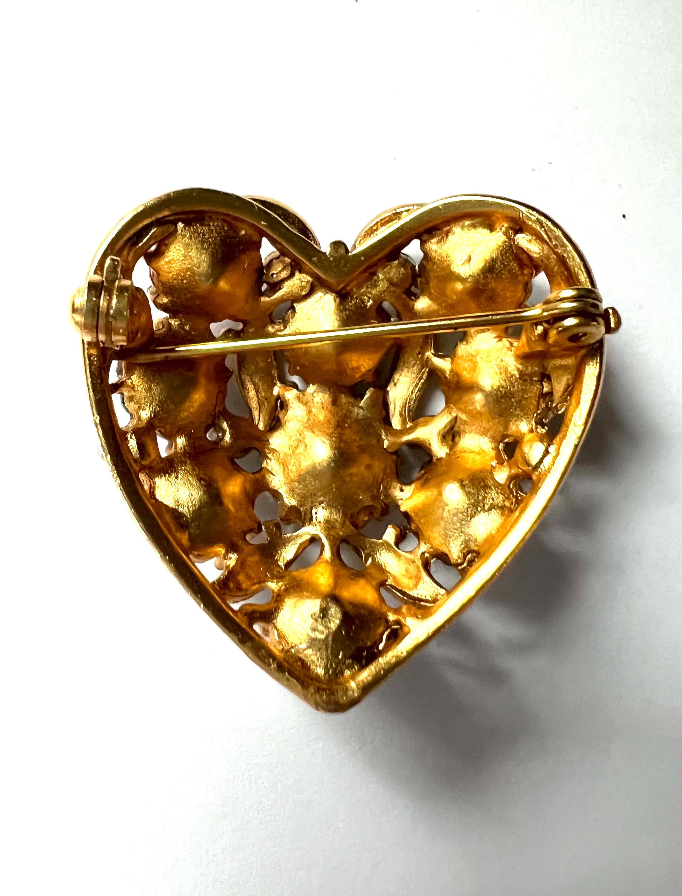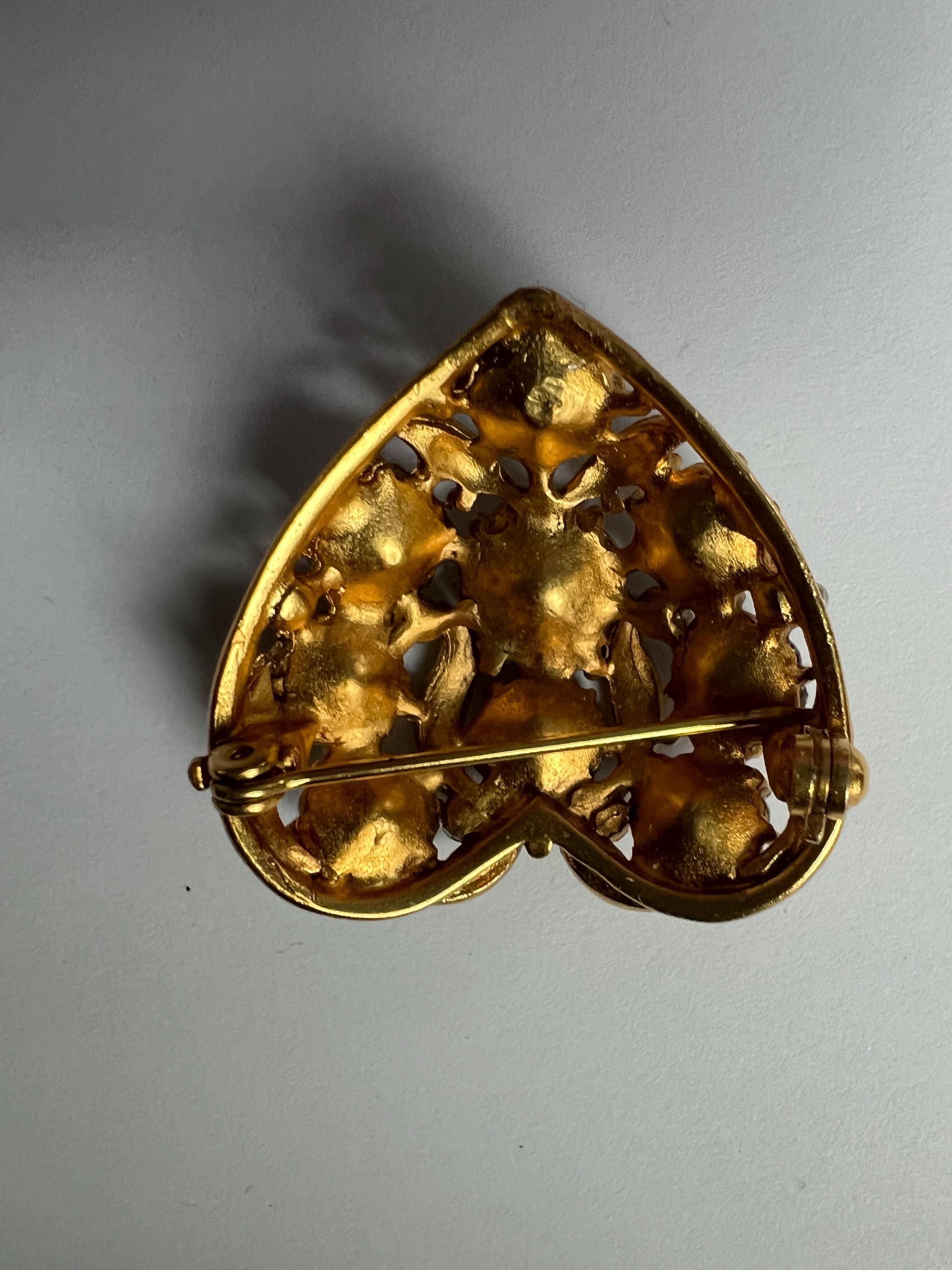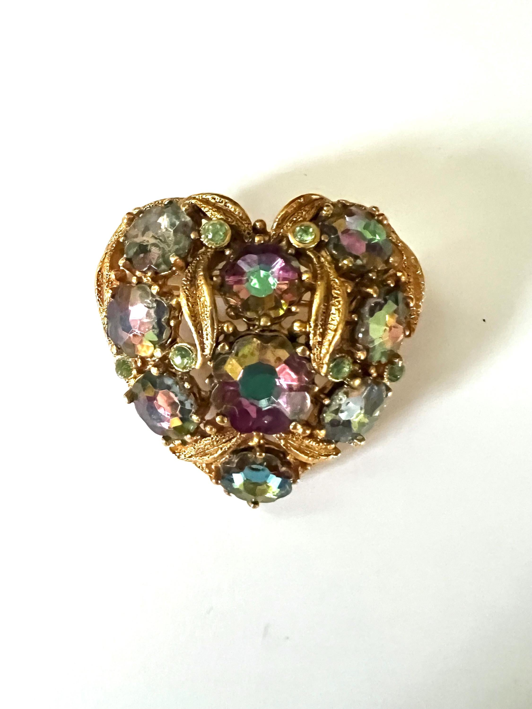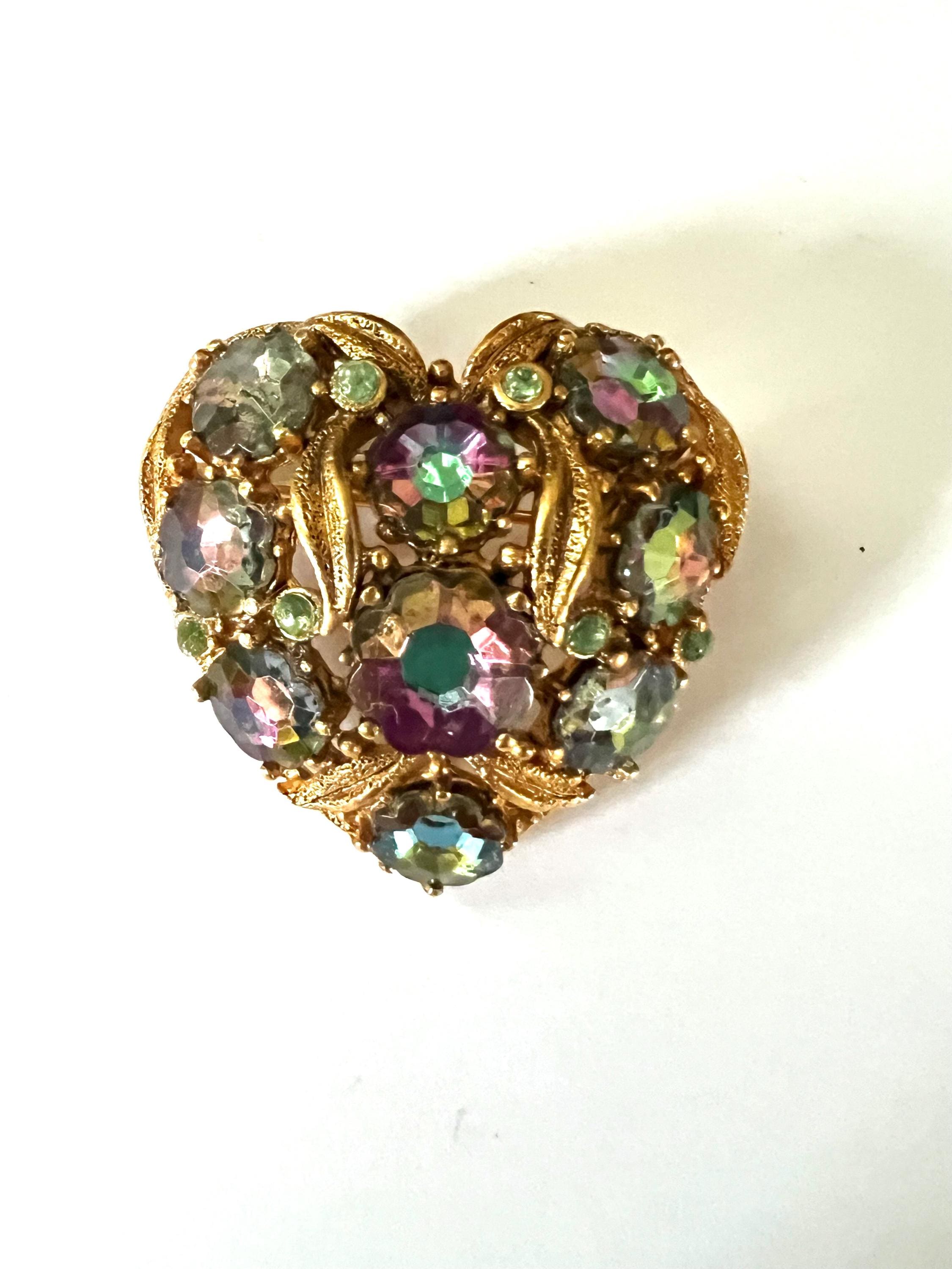 Victorian Revival Heart Brooch: Vintage AB Crystals Gold Vermeil Lapel Pin