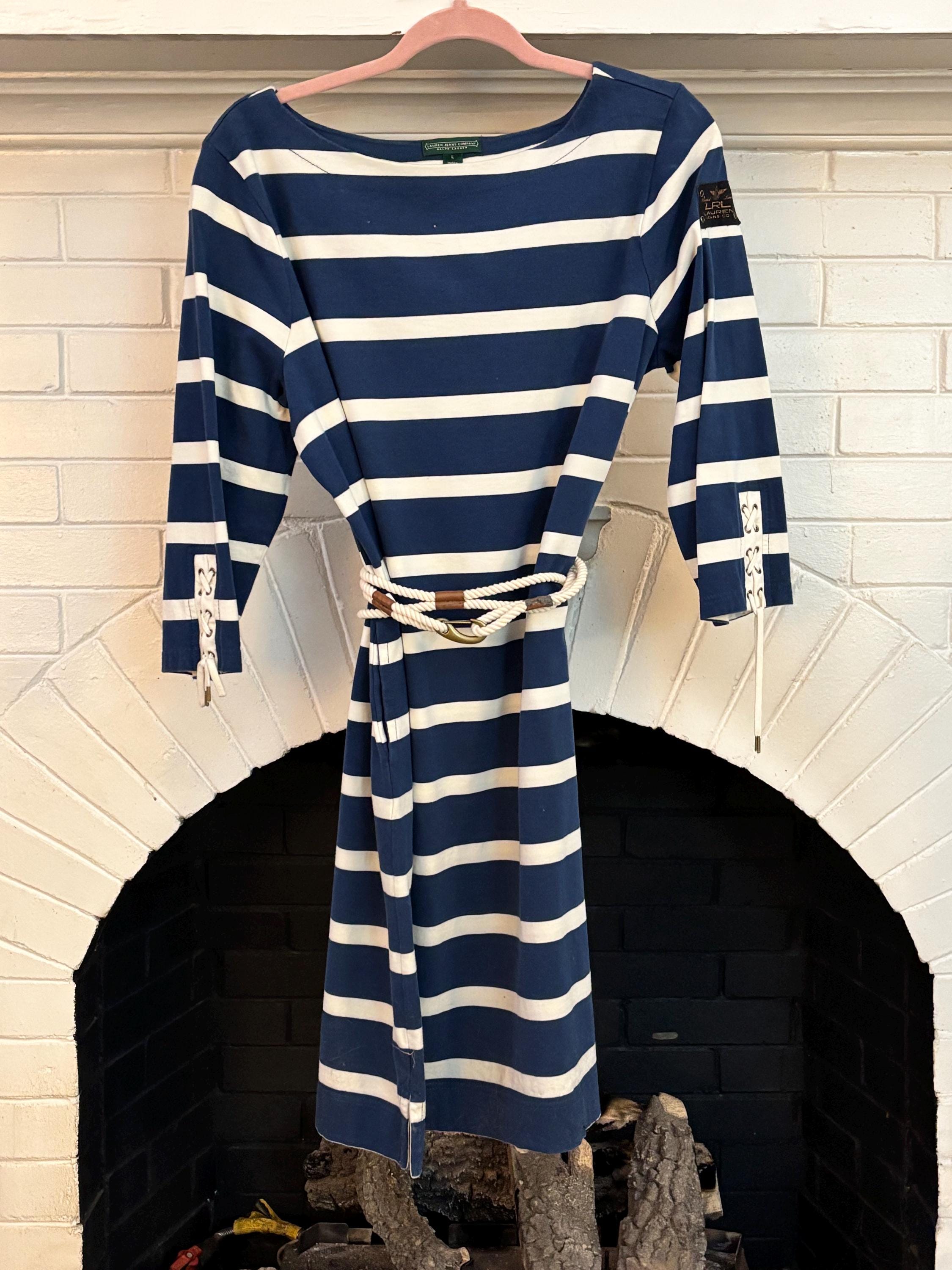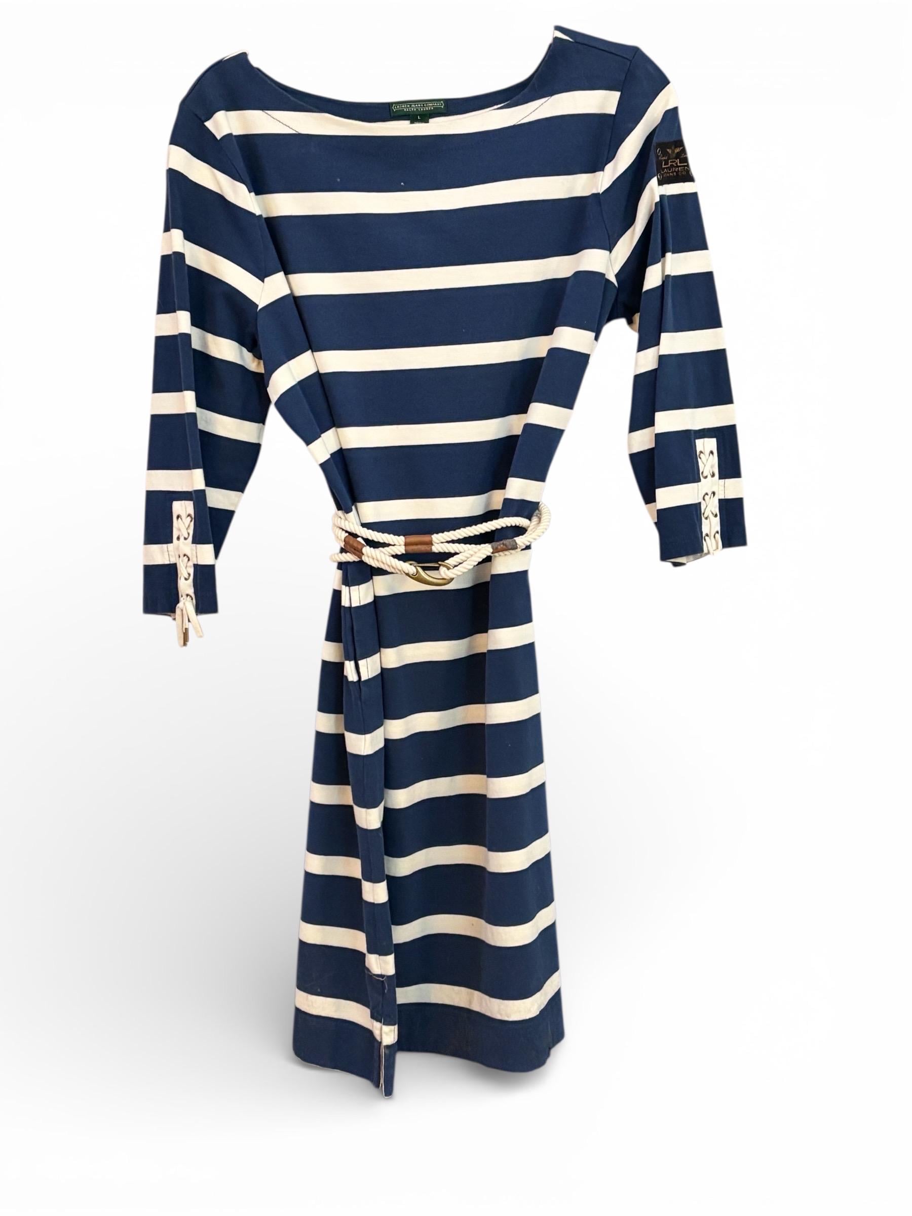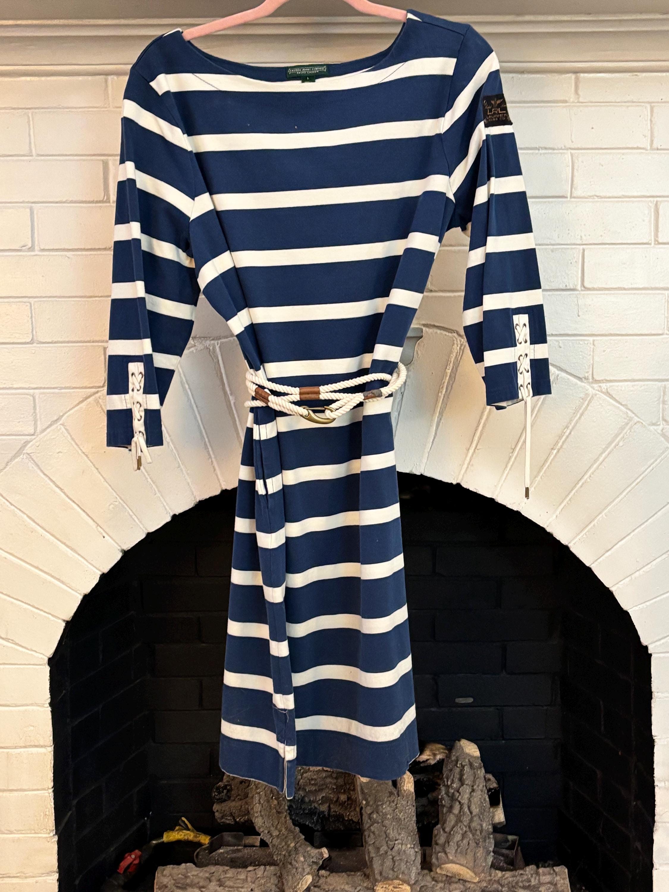Vintage Ralph Lauren Nautical Blue And White Striped Cotton Knit Dress Size Large - it’s a vintage large though so more like a full Medium ; )