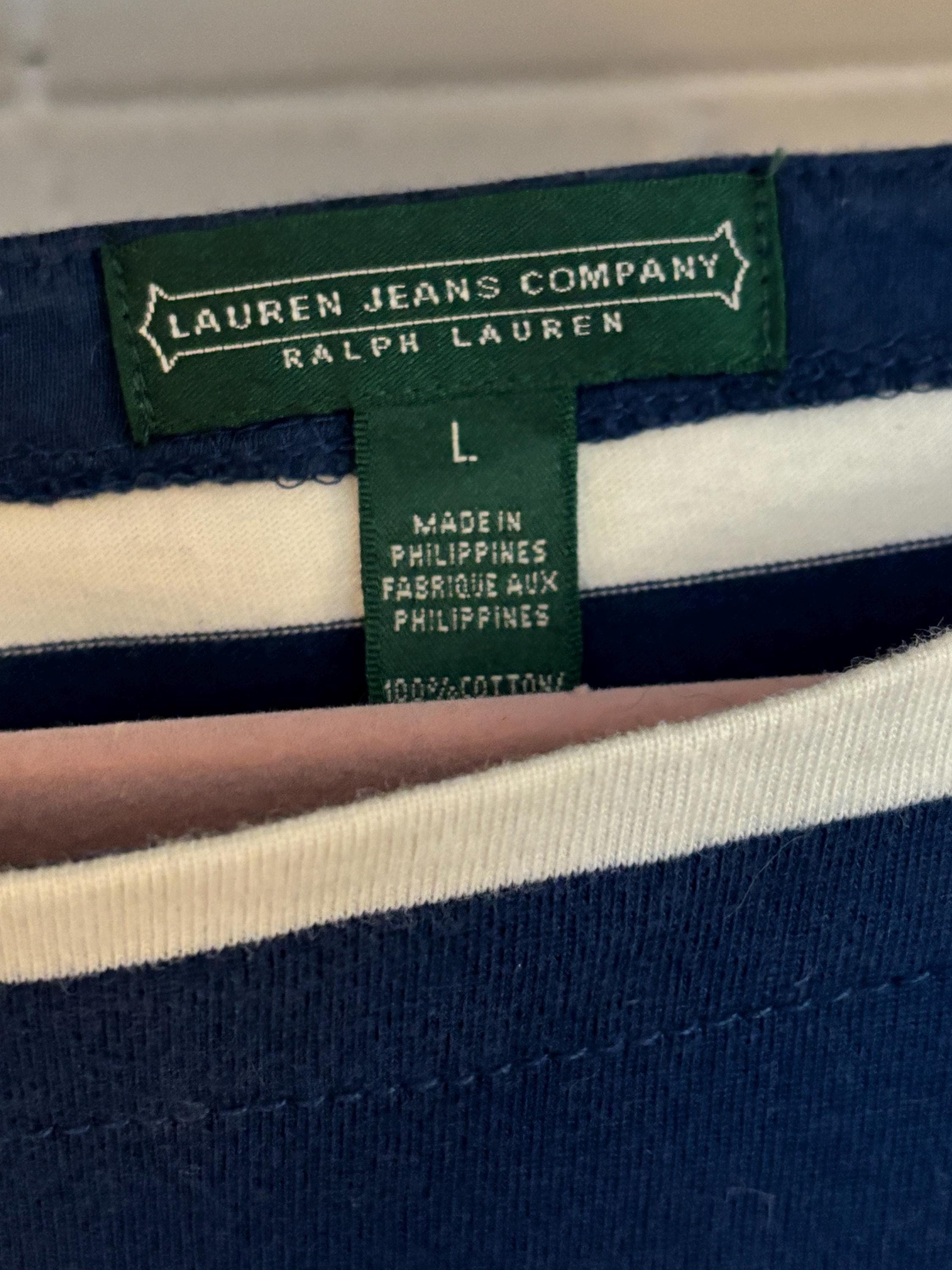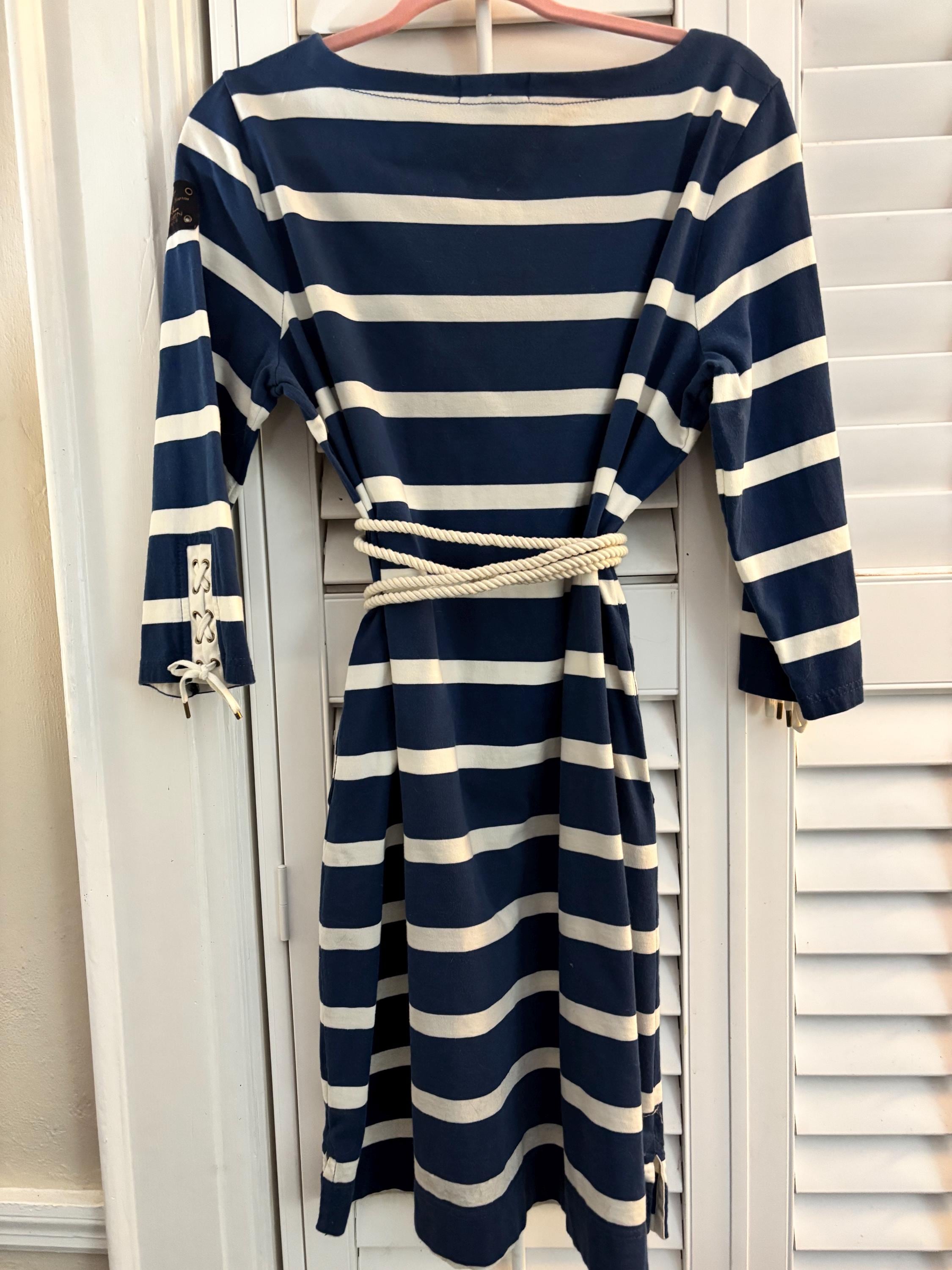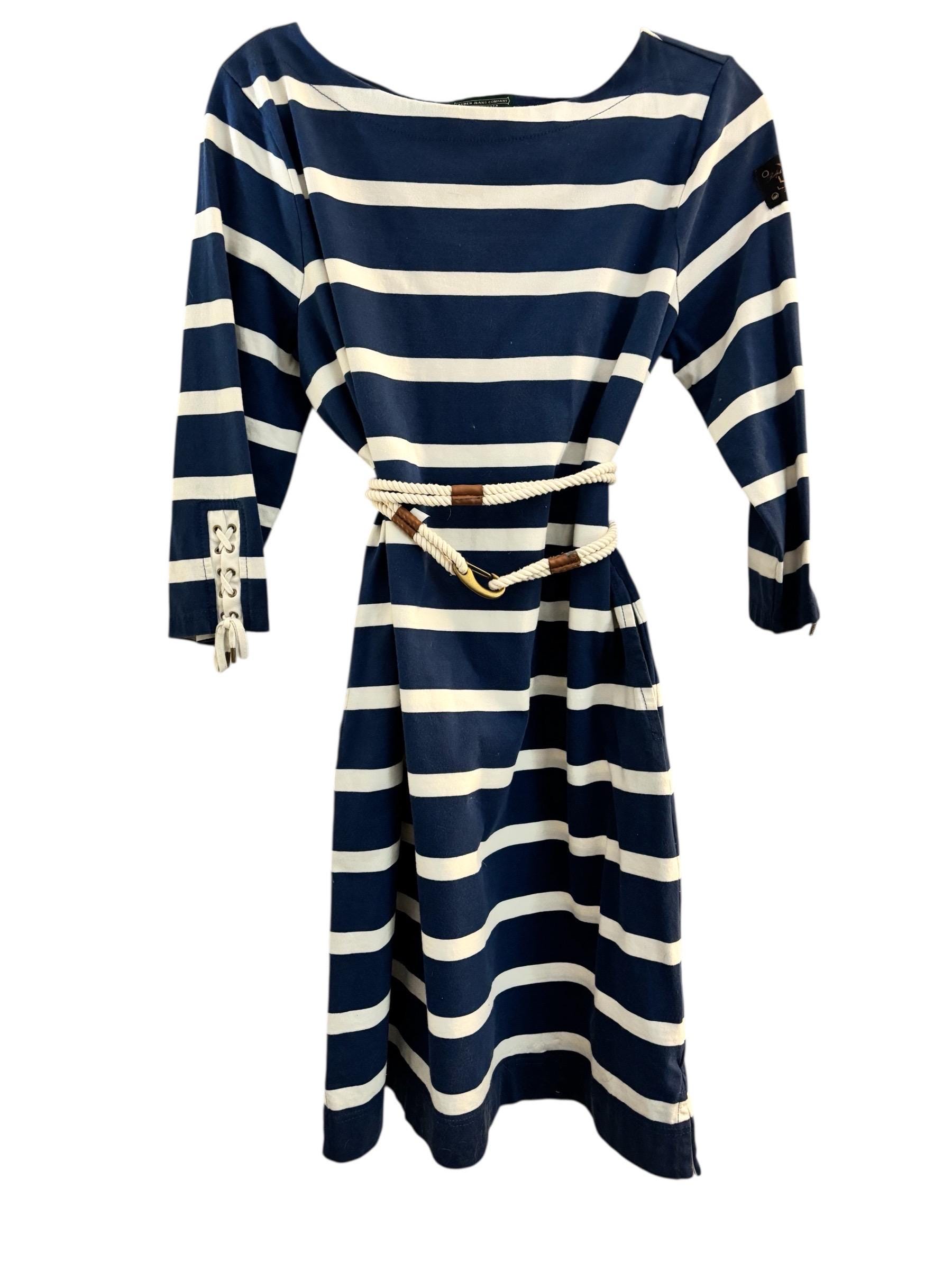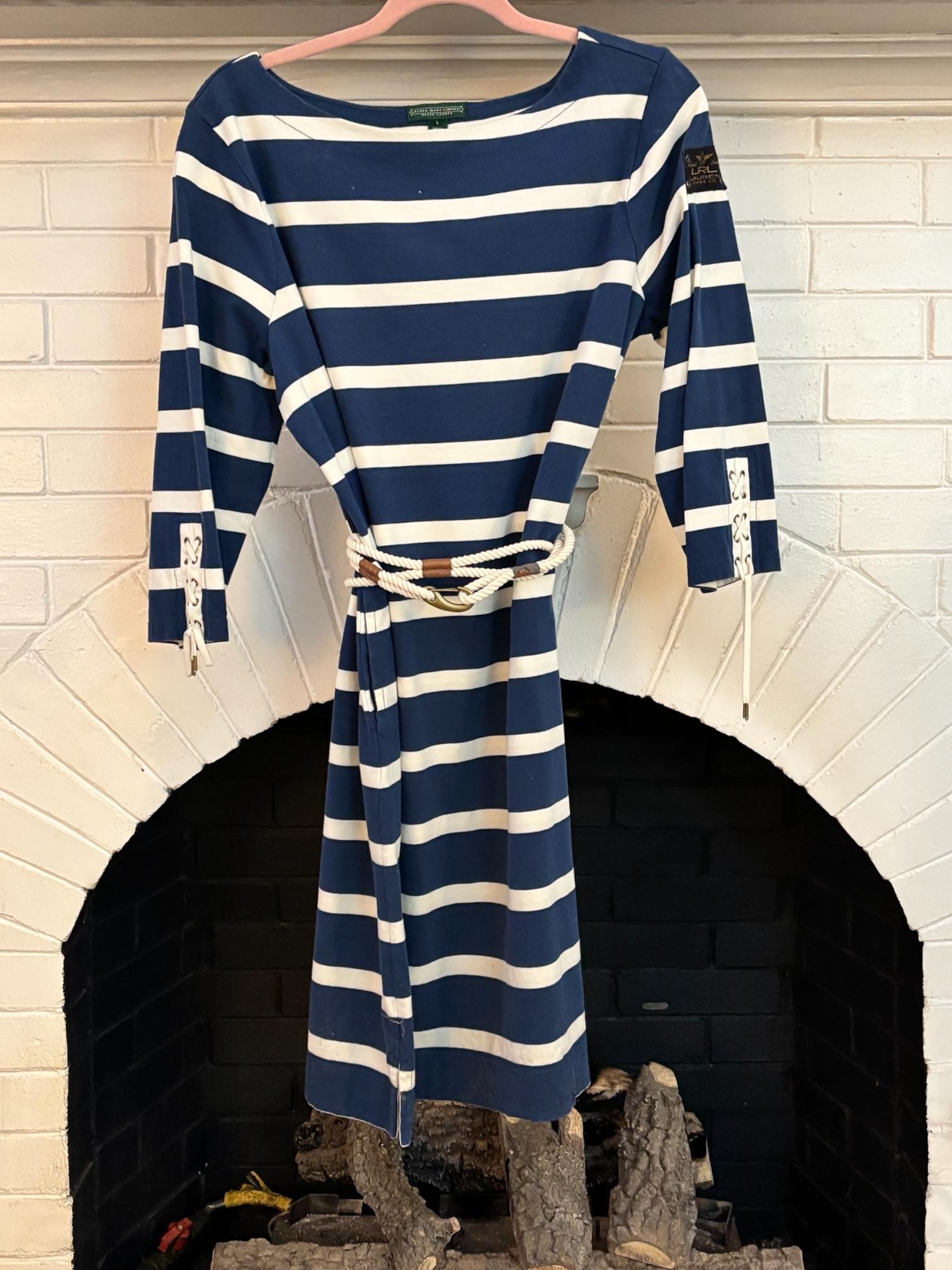 Vintage Ralph Lauren Nautical Blue And White Striped Cotton Knit Dress Size Large - it’s a vintage large though so more like a full Medium ; )
