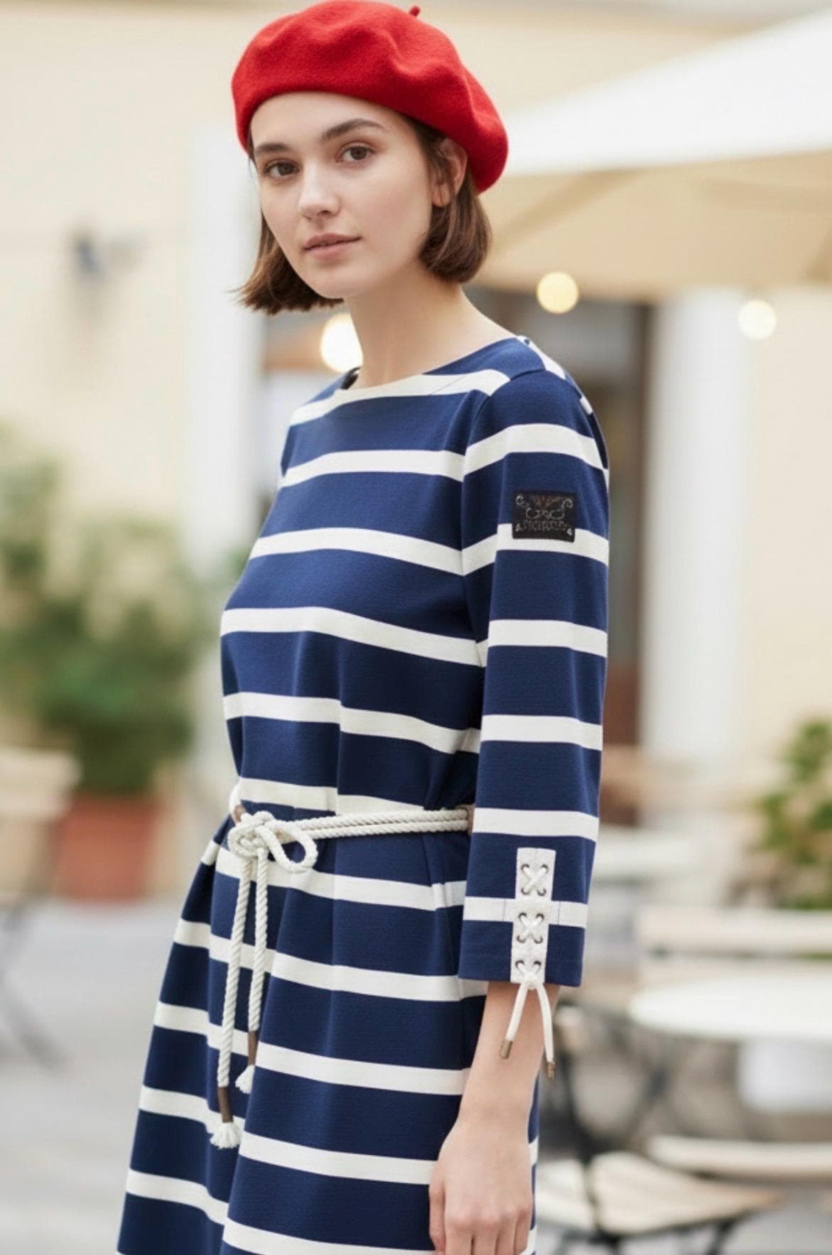 This is a great dress and the knit is heavy enough to wear spring - fall on the east coast - preppies are fruggle and like economic functional clothing! this dress could be worn to class, cute for work, darling casual date, brunch with friends, of course the easy one- vacation! but it’s really just a fun dress- add a beret and suddenly it’s French - lol actually super cute with a red beret!
