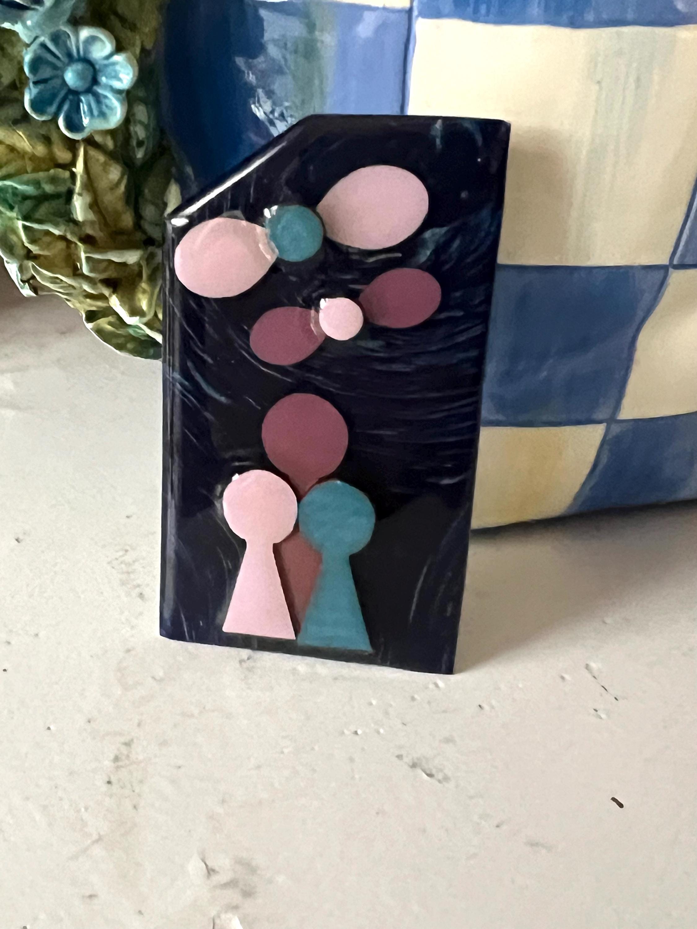 Vintage Lucinda’s People Pin, Like Lucinda’s Houses, Cool 80s Post Modernist Pin Made in Maine