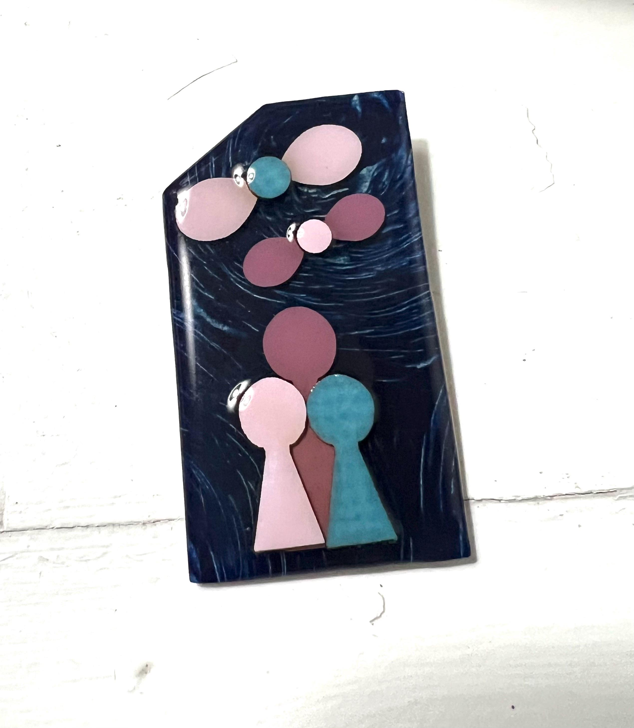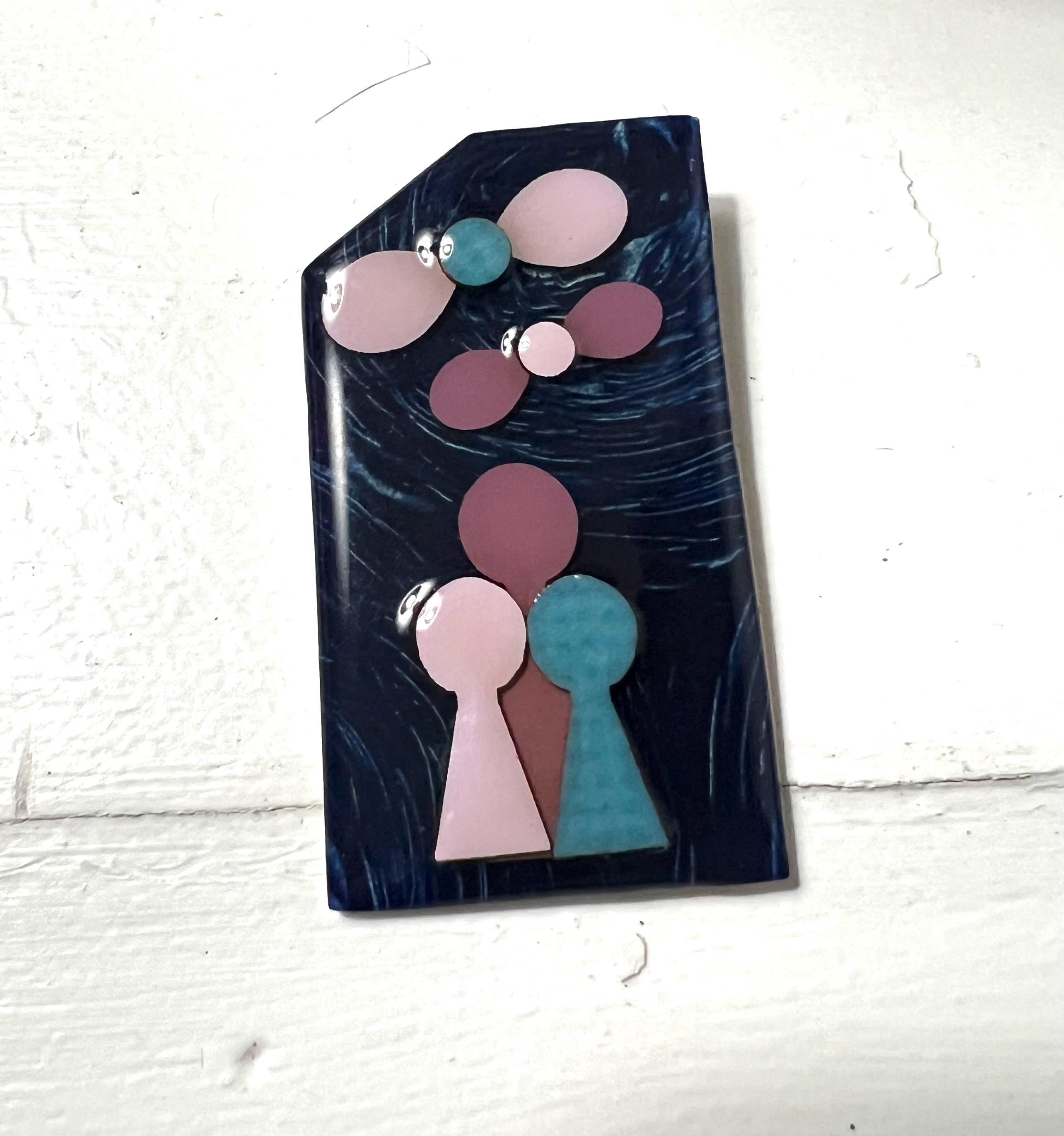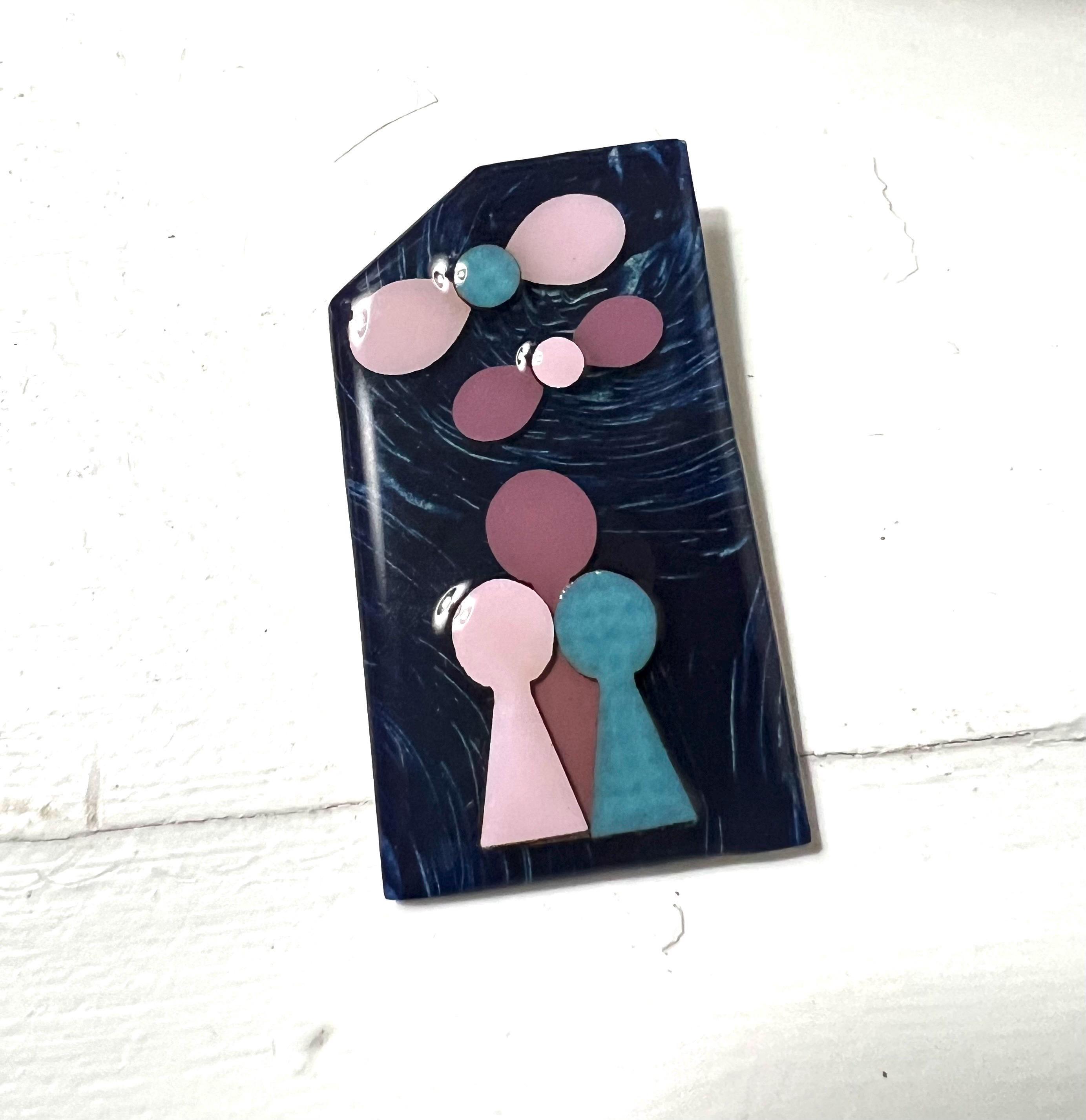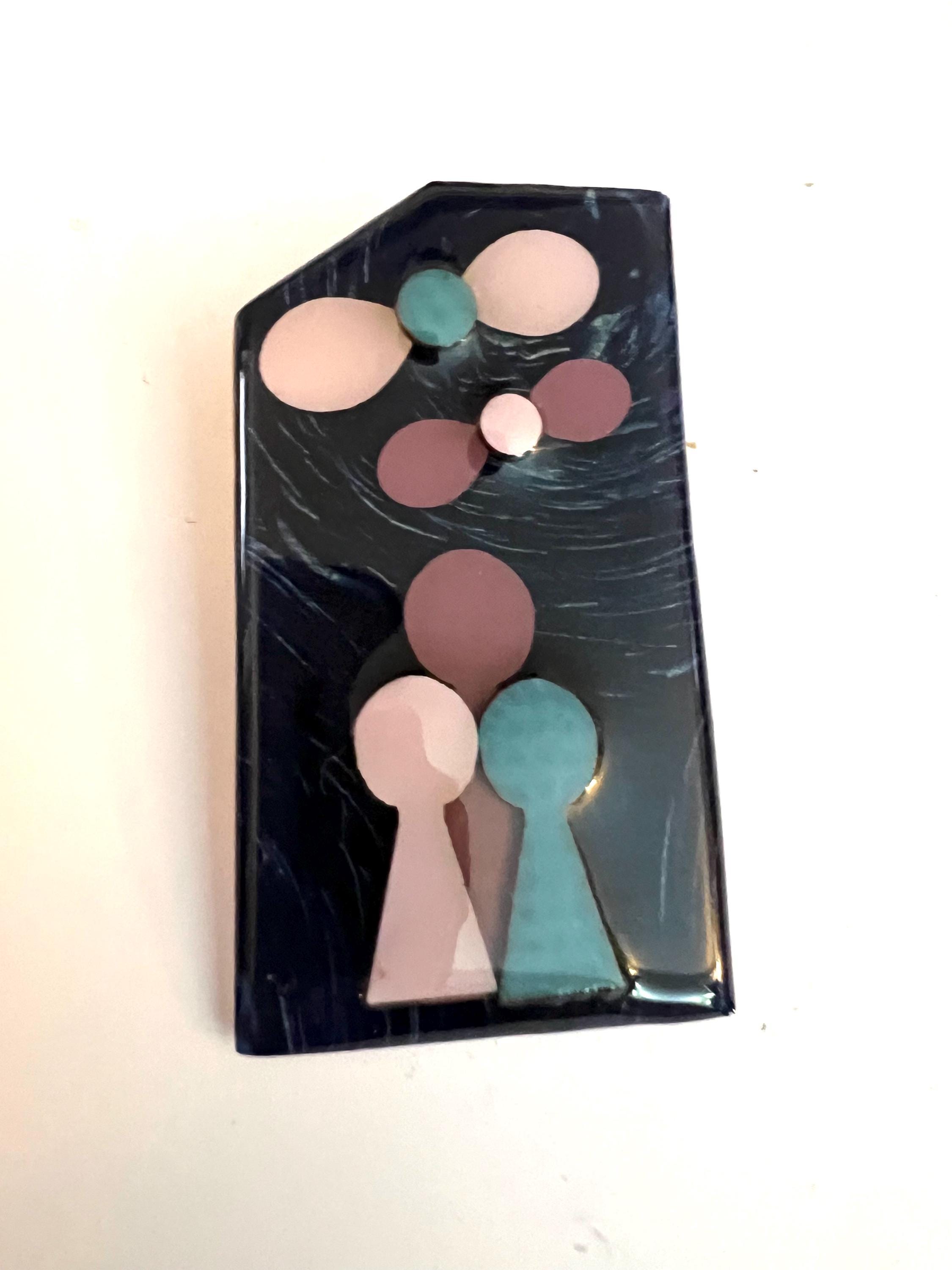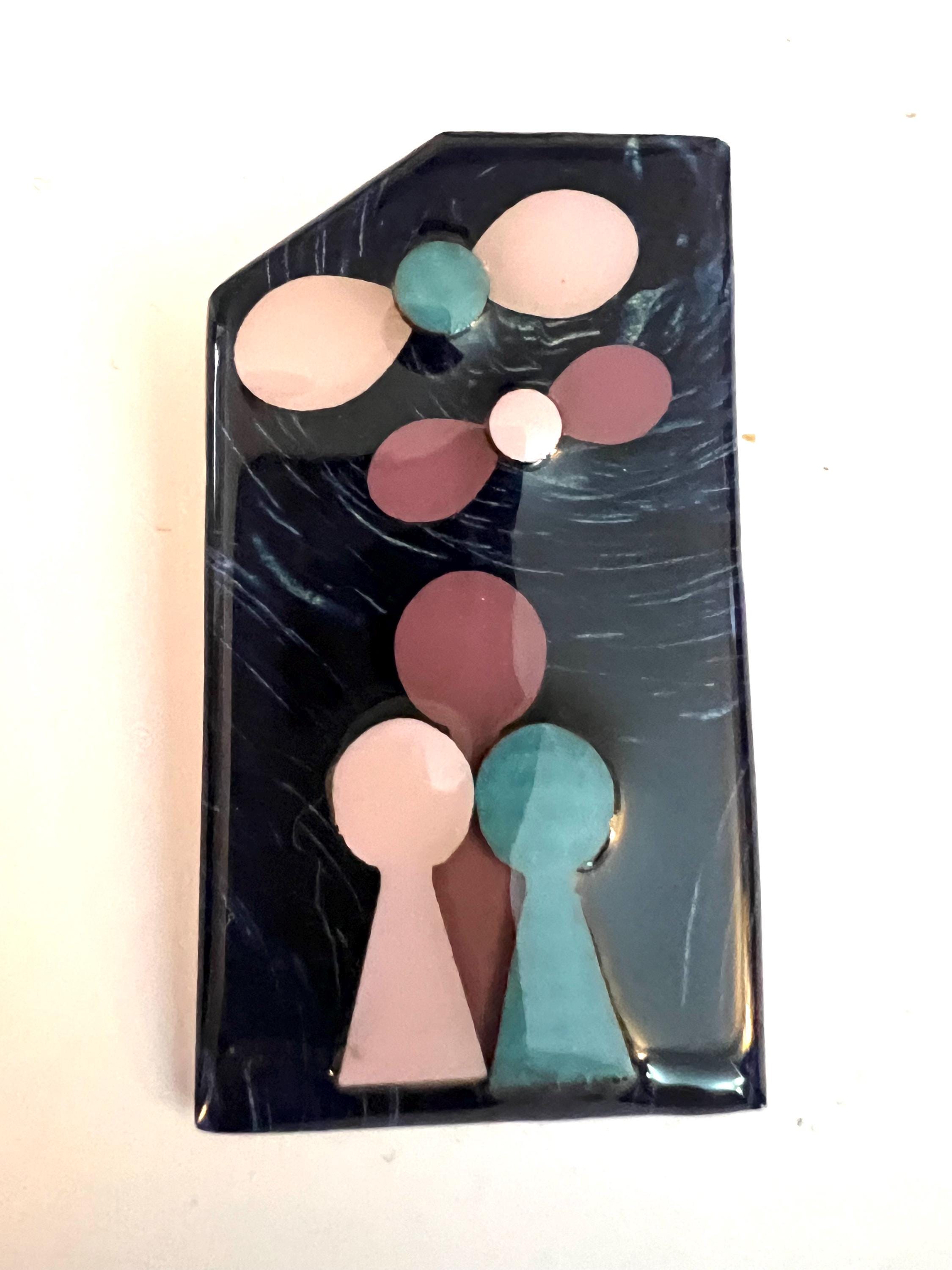 Vintage Lucindas People Pin, 80s Post Modernist Brooch, Made in Maine