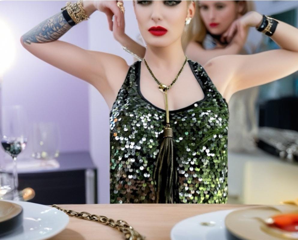 Sexy Golden Ball & Chain Sexy Leather like Tassel Necklace, Bladerunner Flapper Bachelorette Party