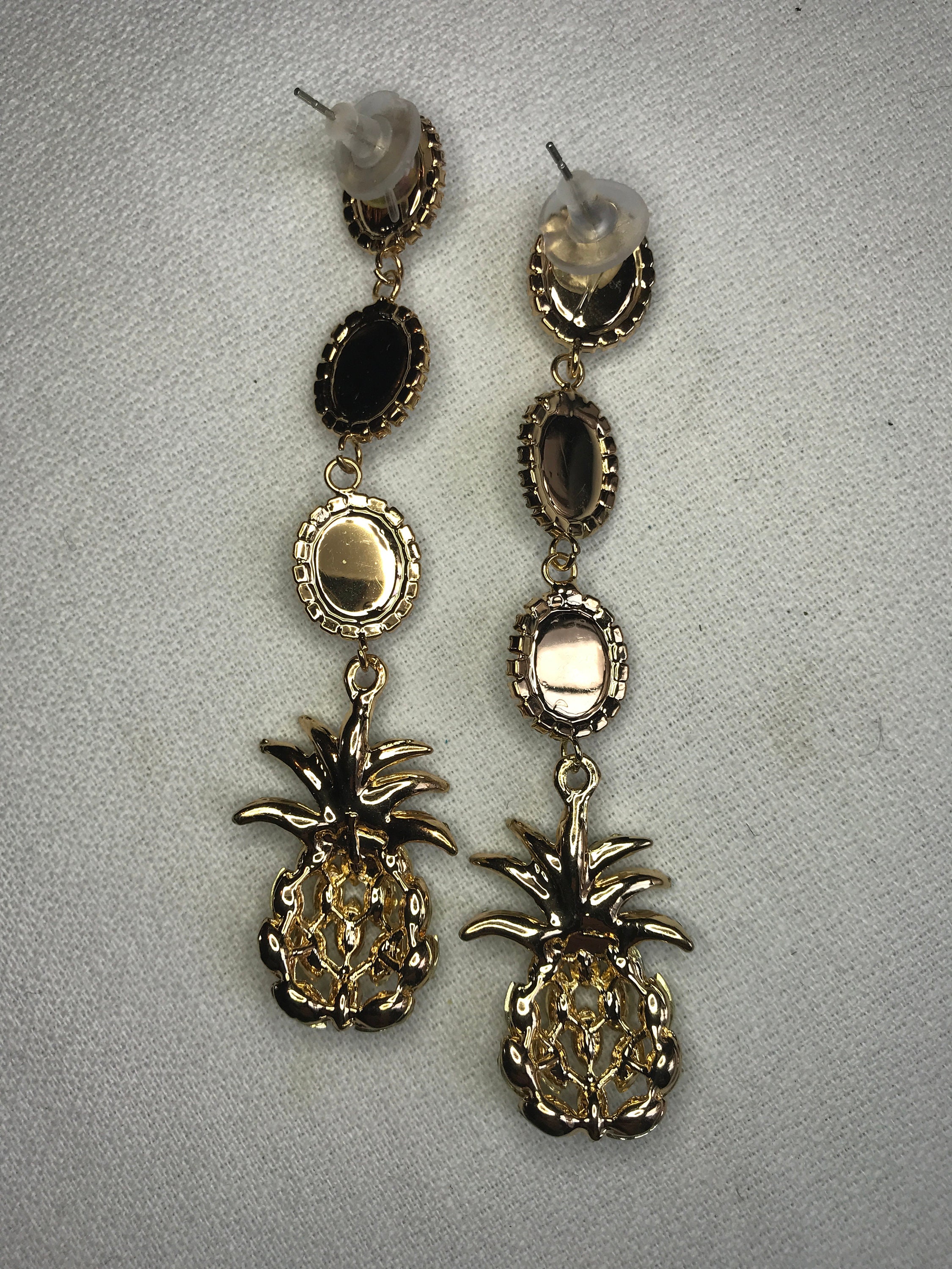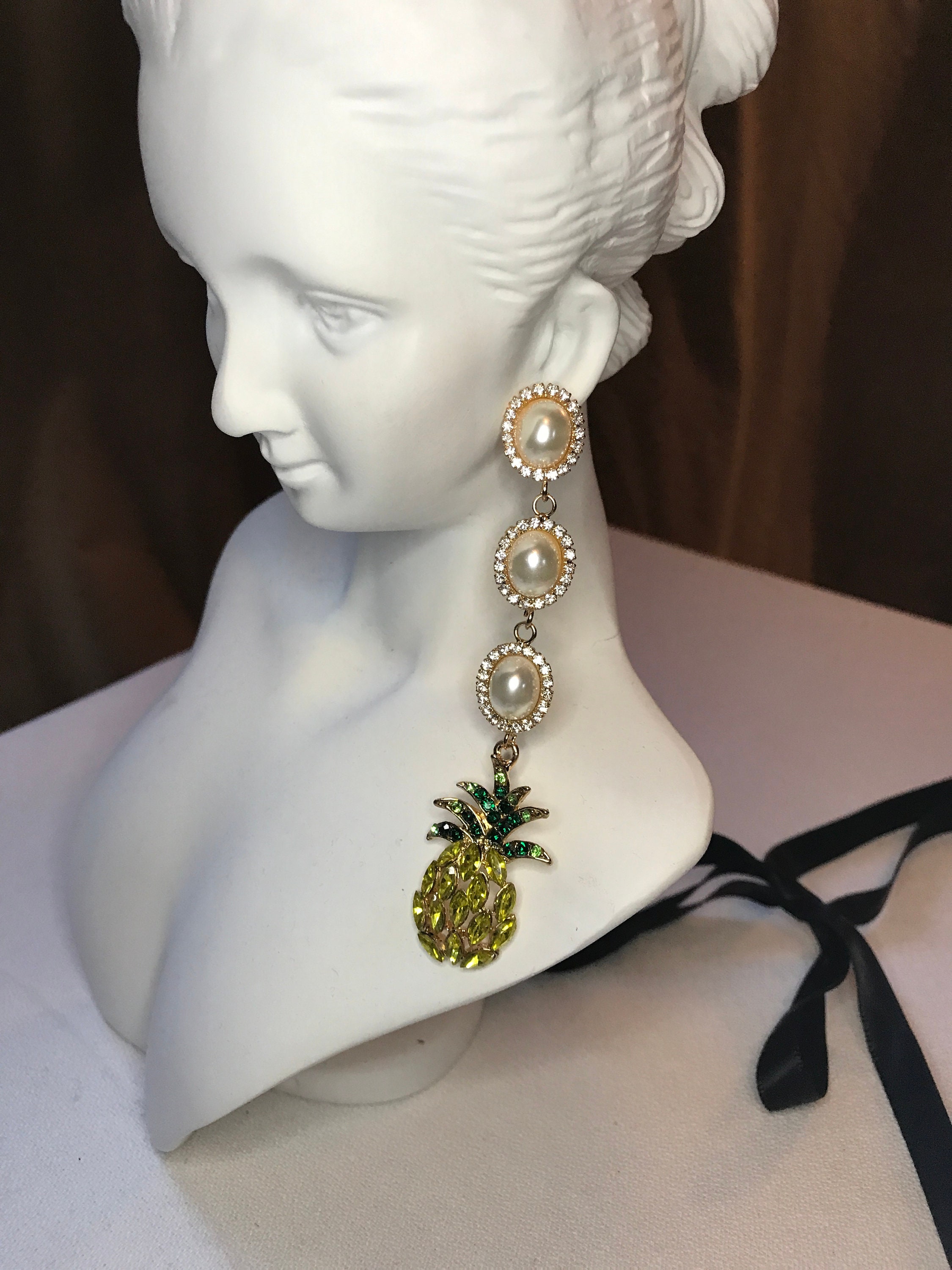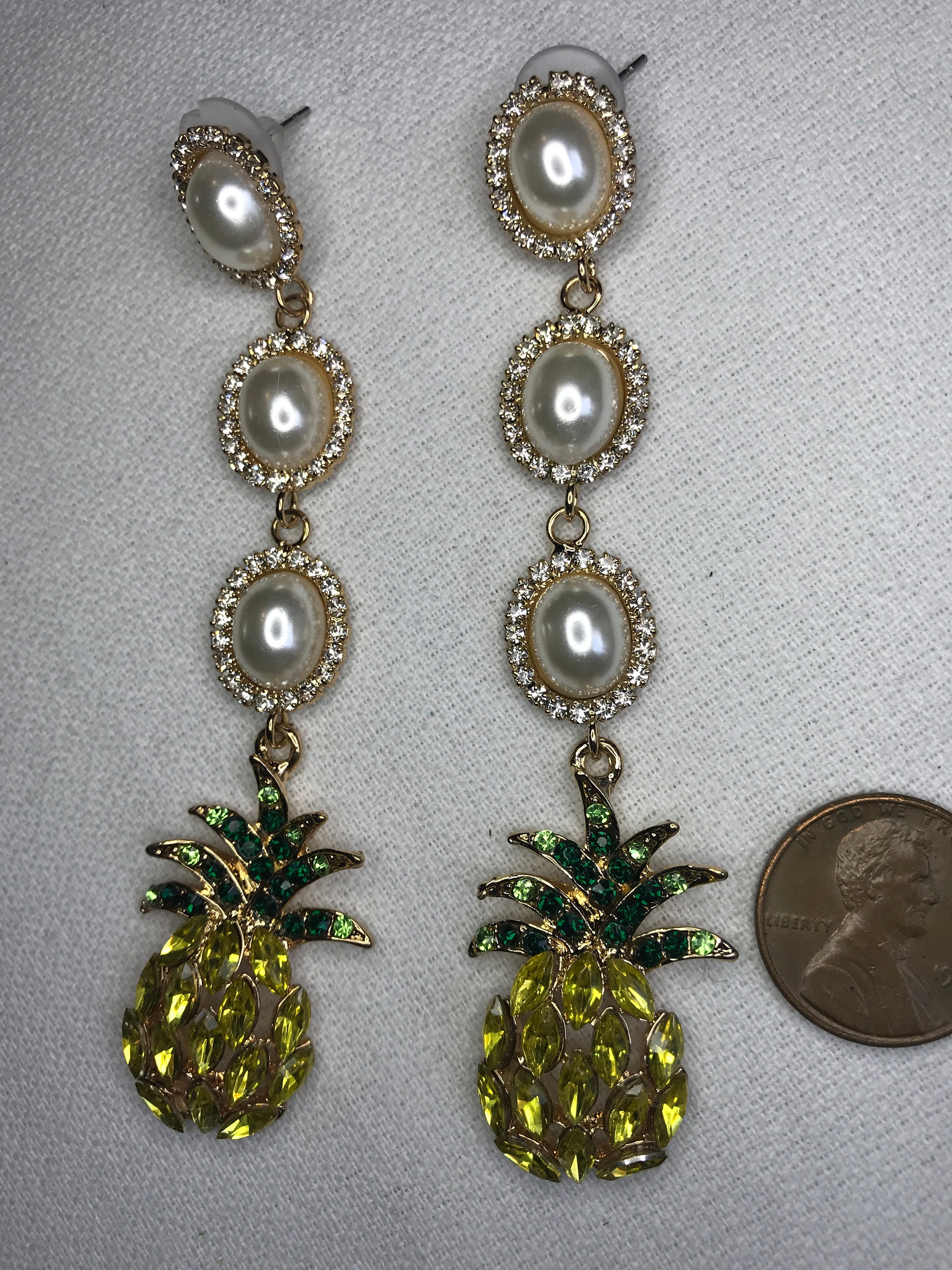 Fantastic Long Dangle Crystal & Pearl Trending Tuti Fruity PINEAPPLE Summery Resort Statement EARRINGS