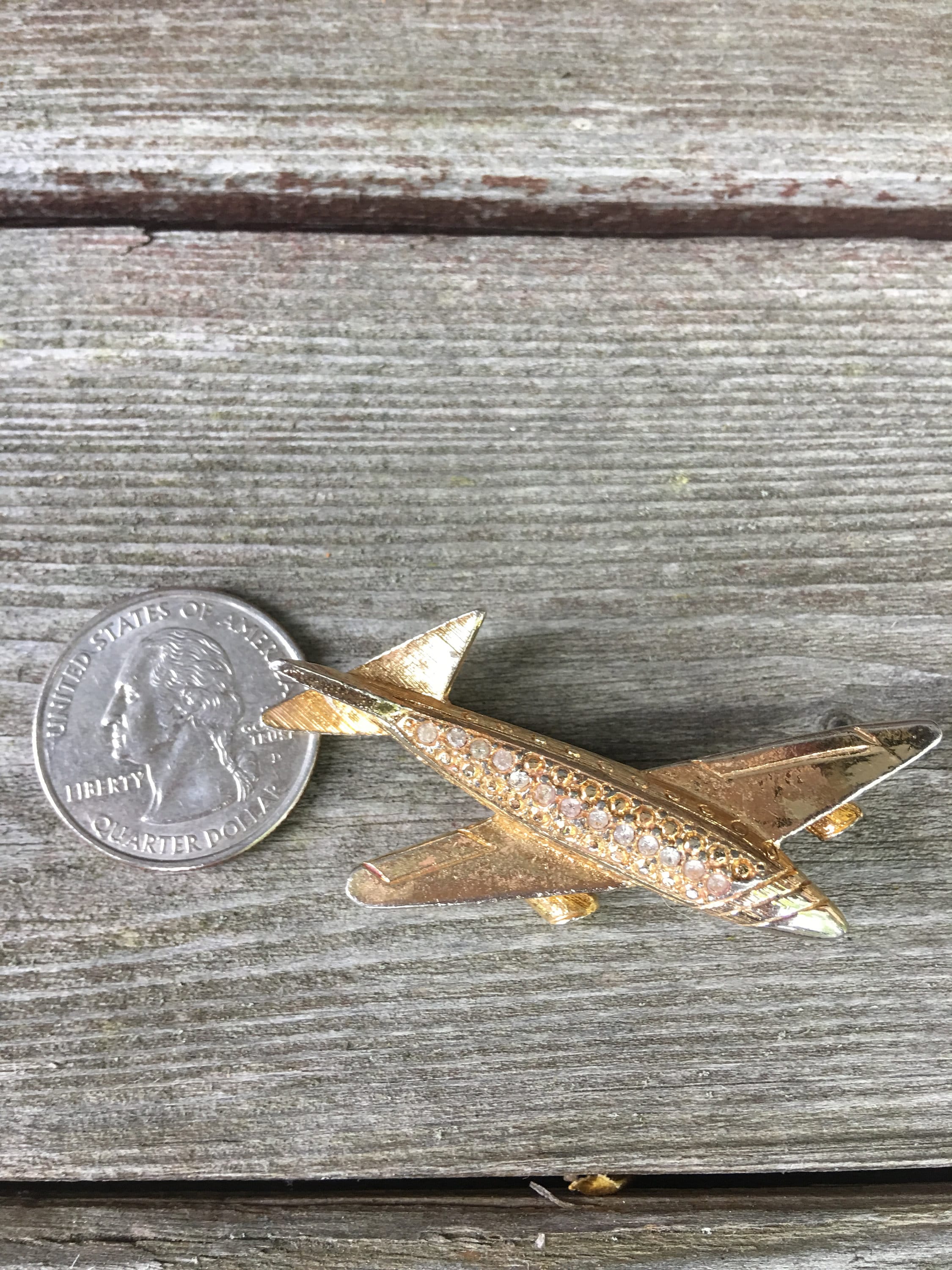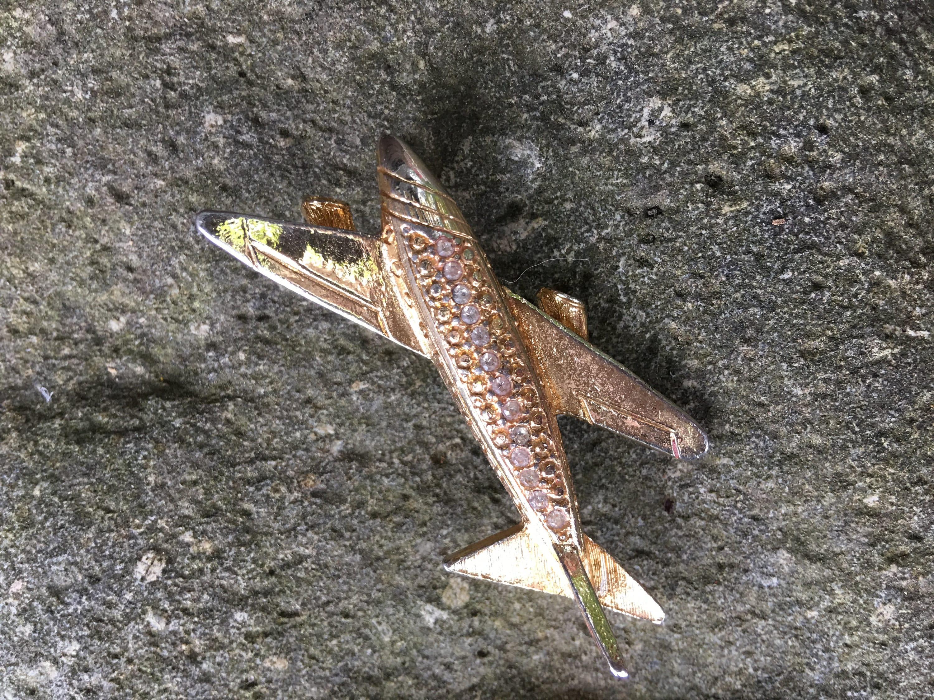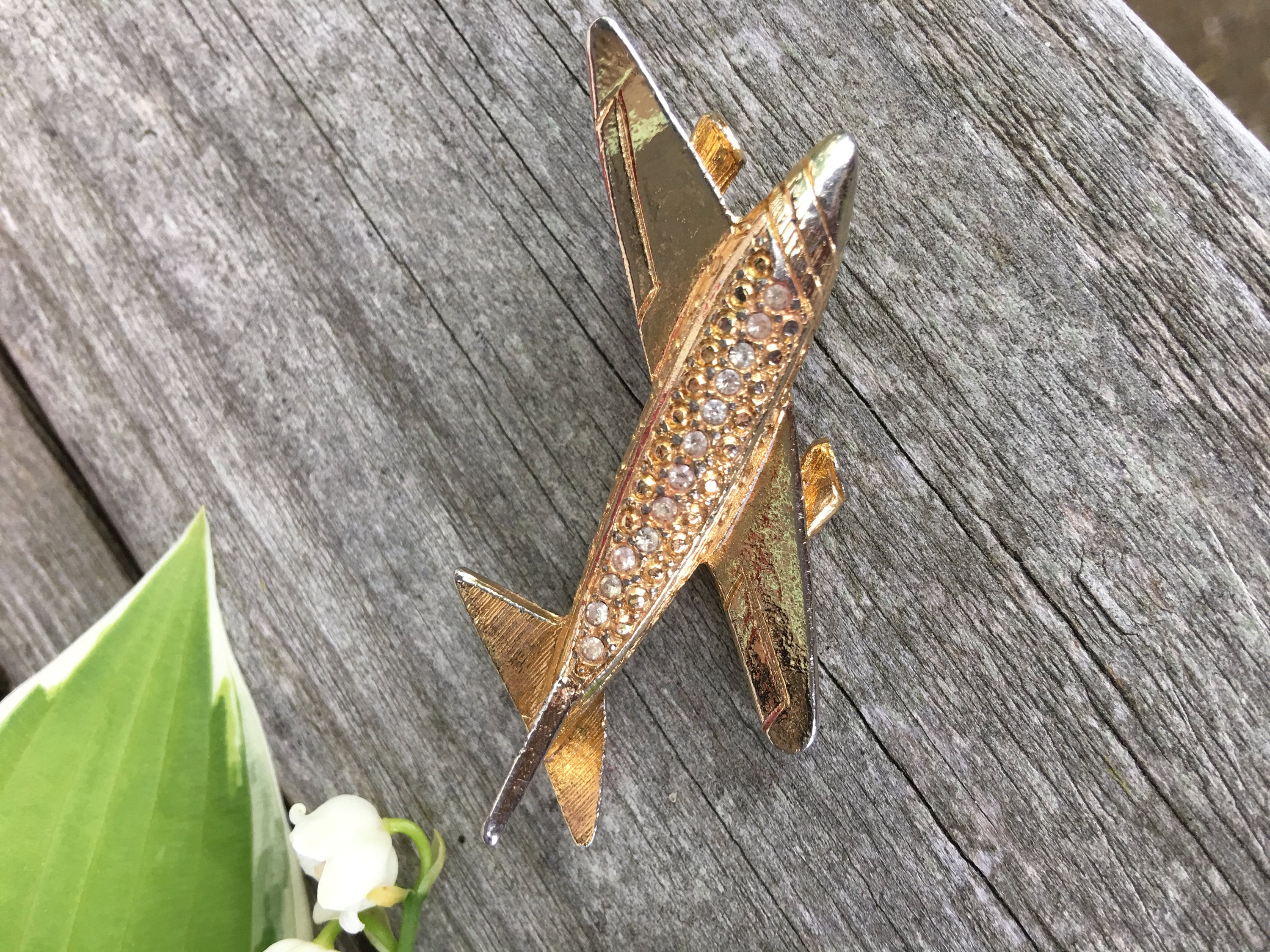 Vintage Goldtone & Rhinestone Jetsetter Airplane Pin