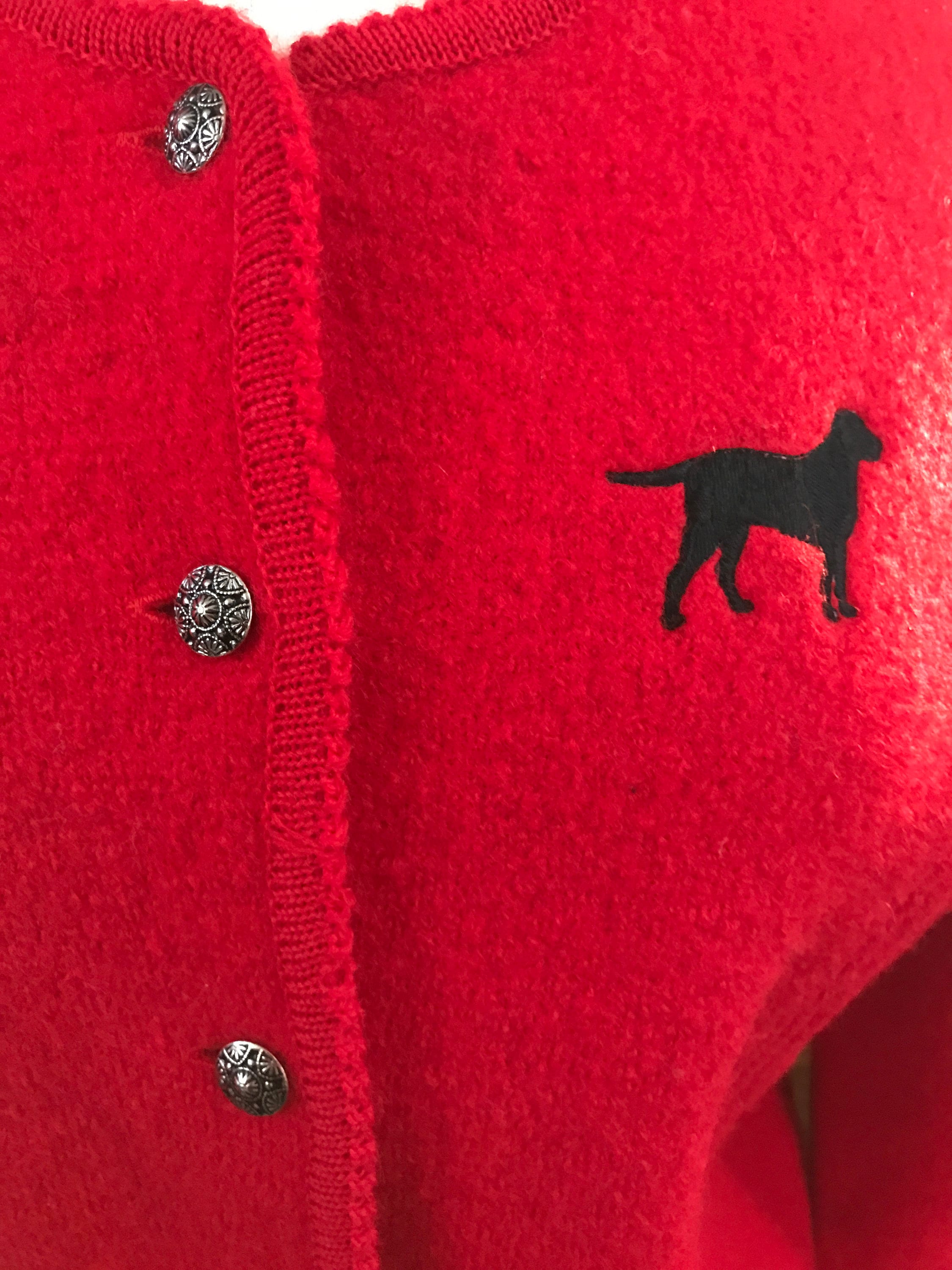 Tally Ho Vintage Preppy Red Wool Cardigan Jacket with Embroidered Dog & Silver Buttons