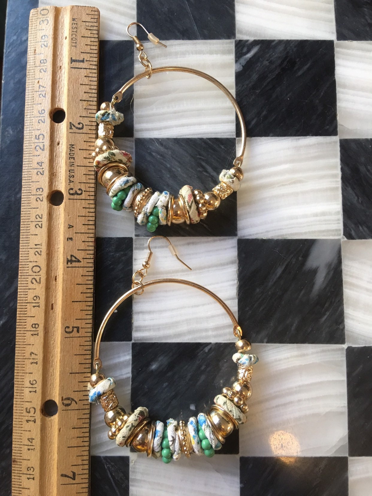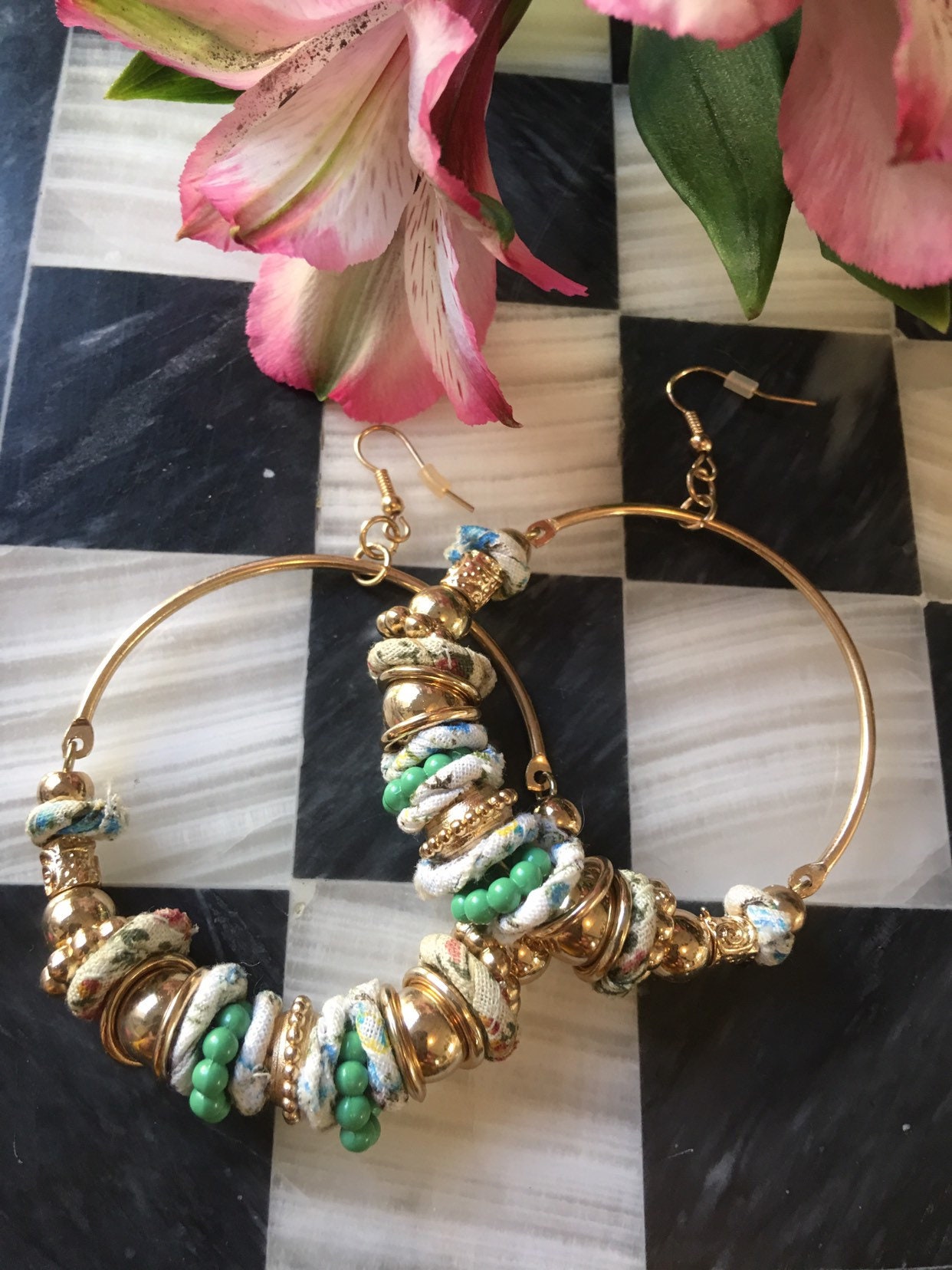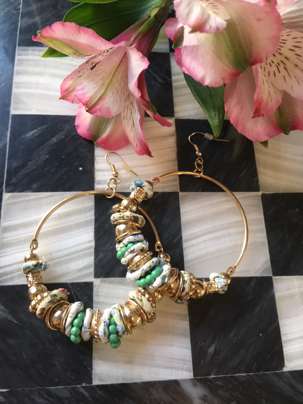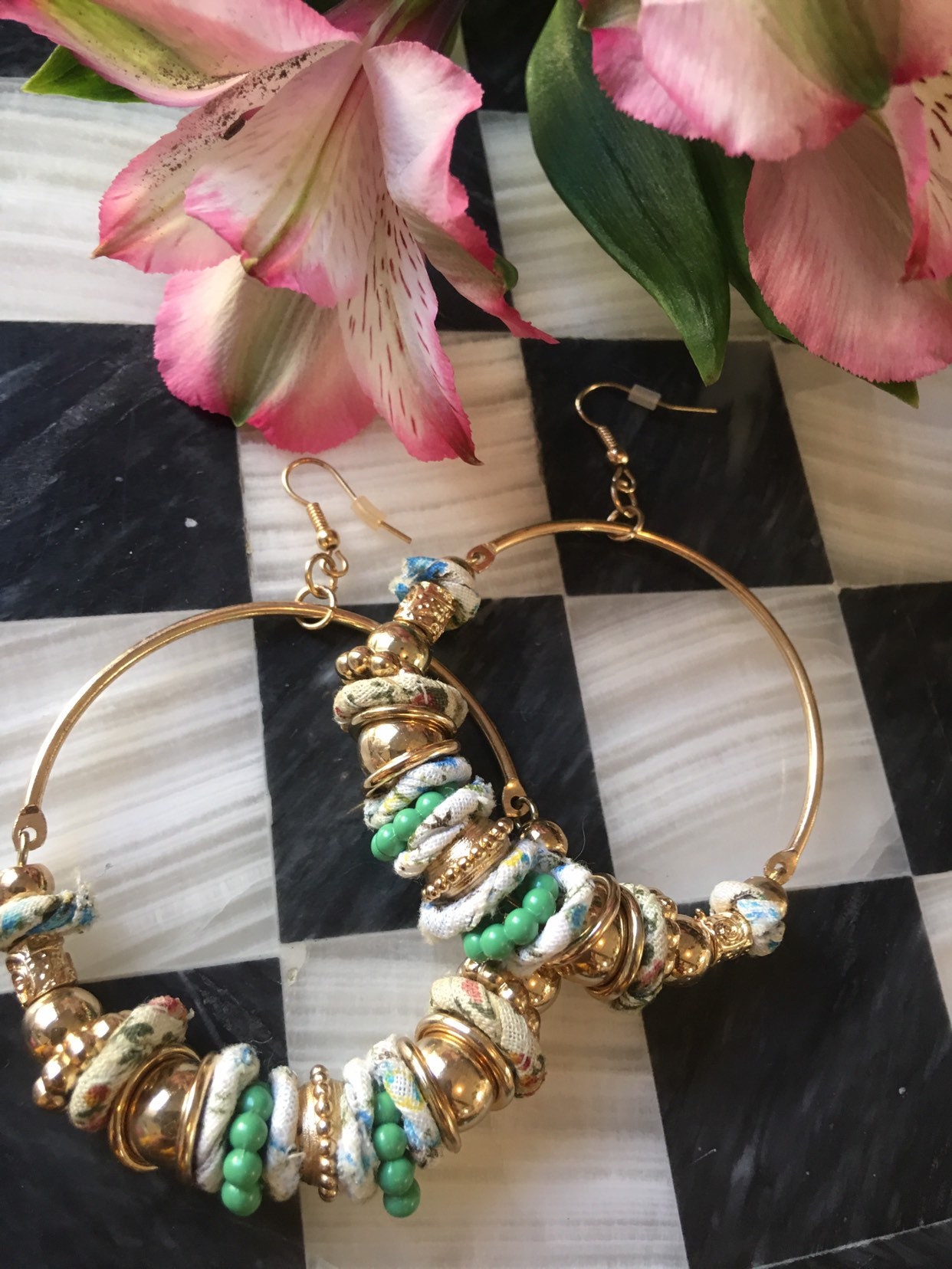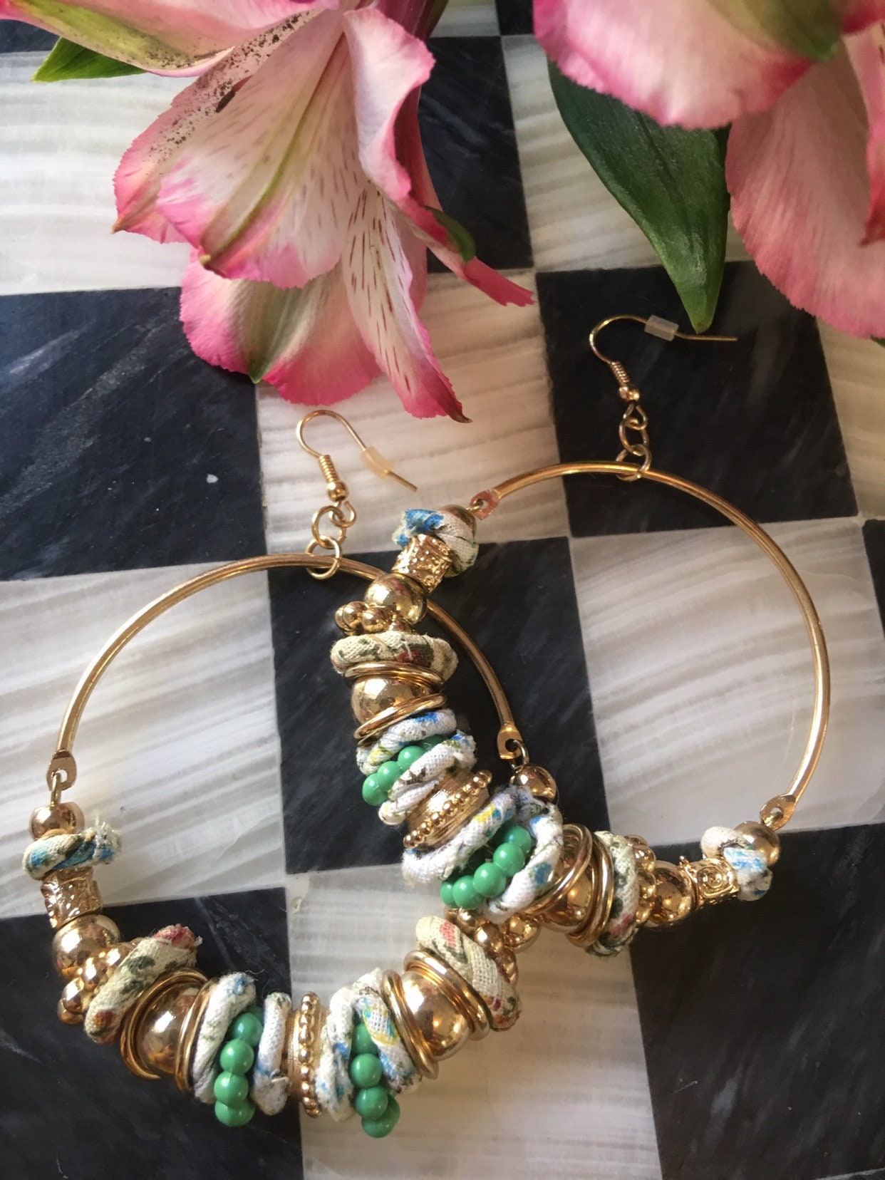 Fun & Funky Mid Century Boho Modernist Large Fashion Statement Hippie Countrygirl Hoop Beaded Earrings