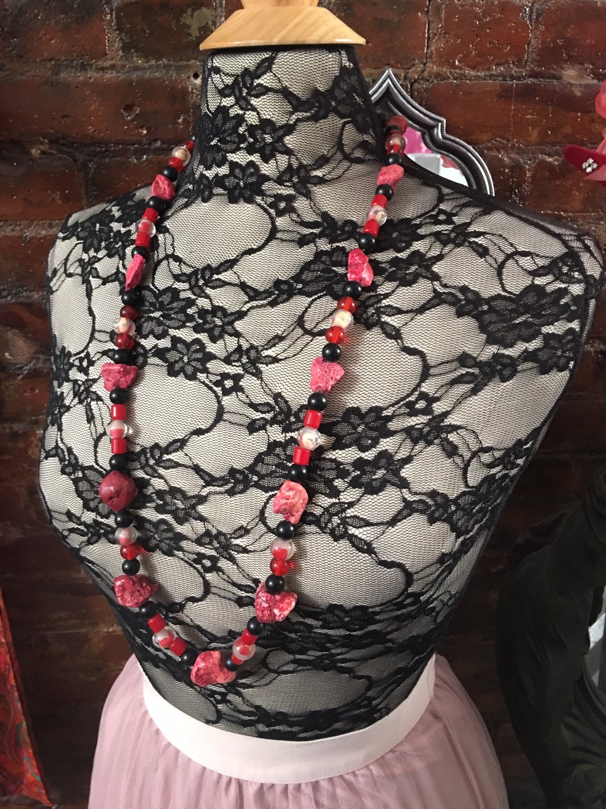 Dyed Red Rock & Cartoon Buddha Vintage Beads, Boho Tribal Spiritual Vintage Necklace